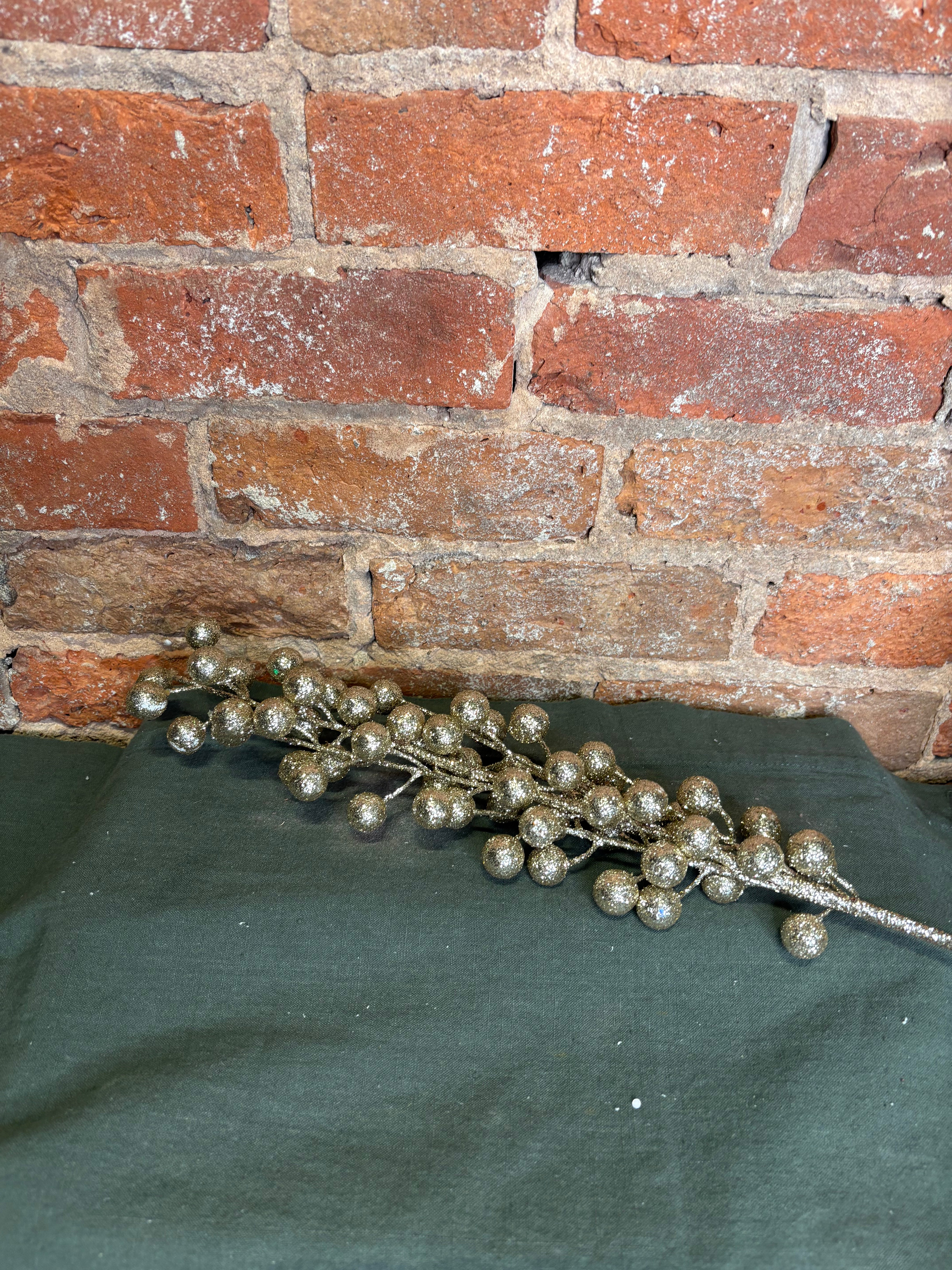 Add a touch of sparkle with this 28” Champagne Gold Glitter Berry Spray. Perfect for adding shimmer and festive charm to your floral arrangements, wreaths, or holiday décor. Its glittery berries catch the light, bringing playful elegance and a pop of glam to any space. Easy to arrange and irresistibly shiny!