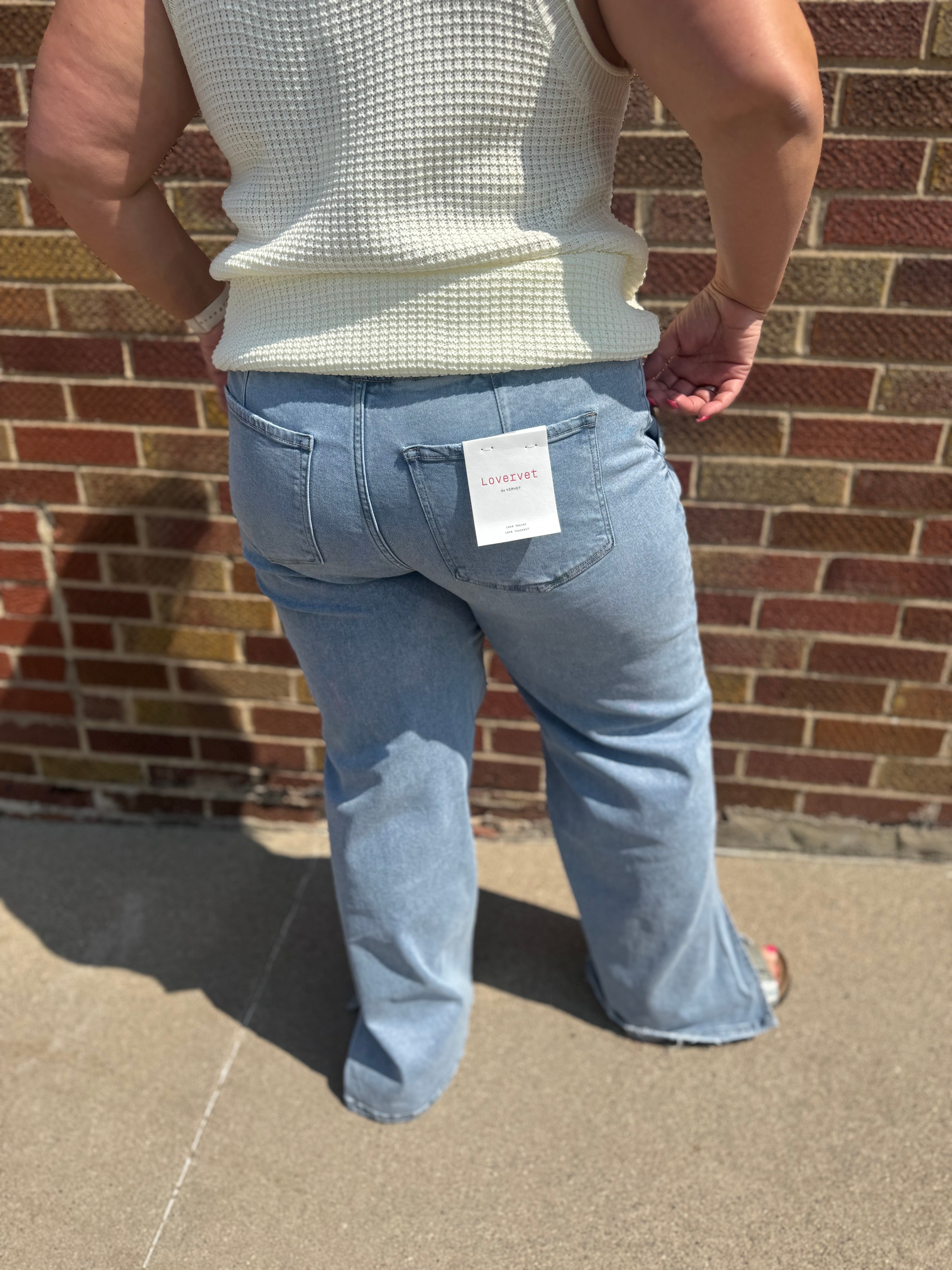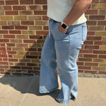 High Rise Drawstring Waistband Side Slit Wide Leg Vervet Jeans