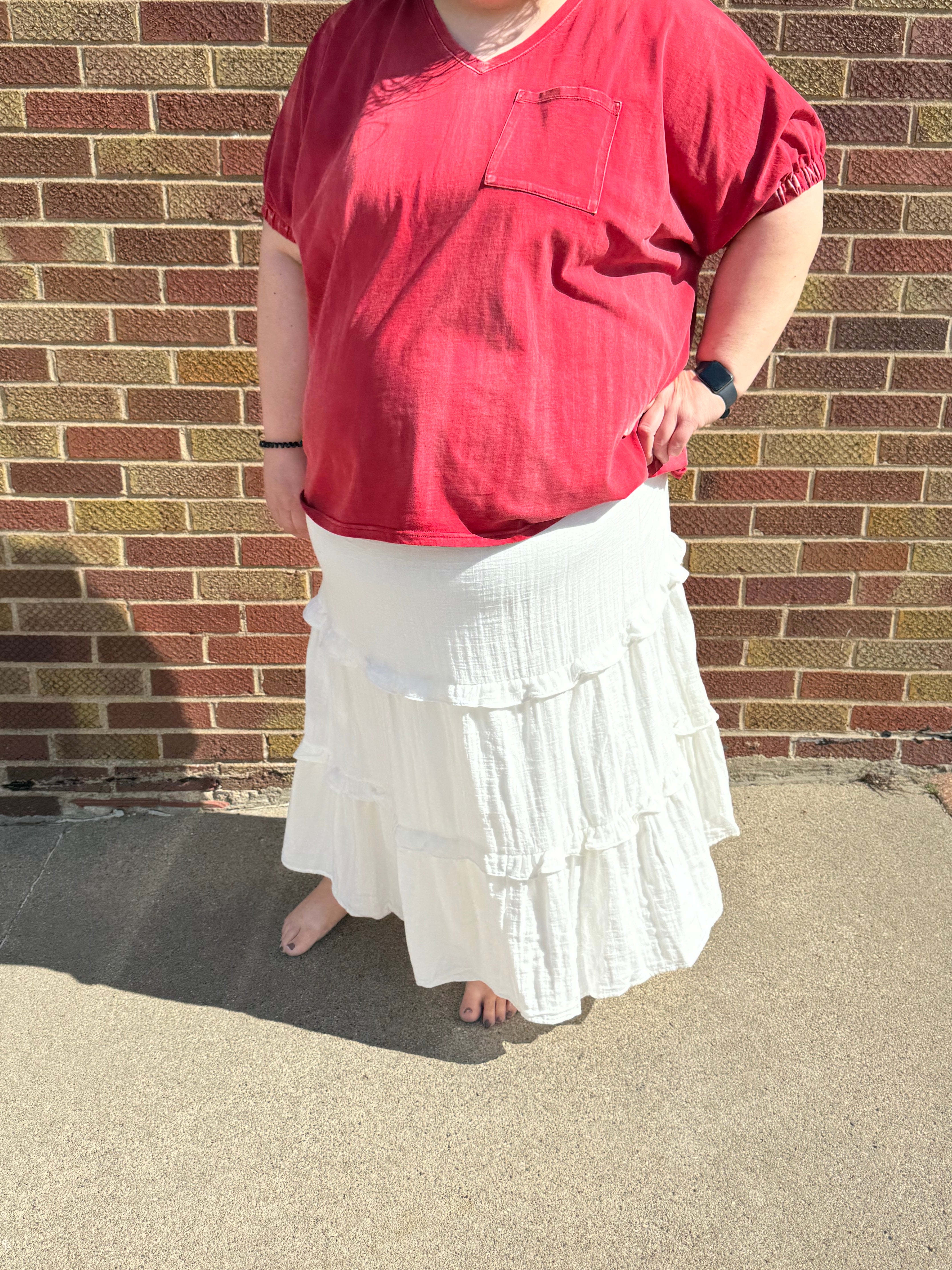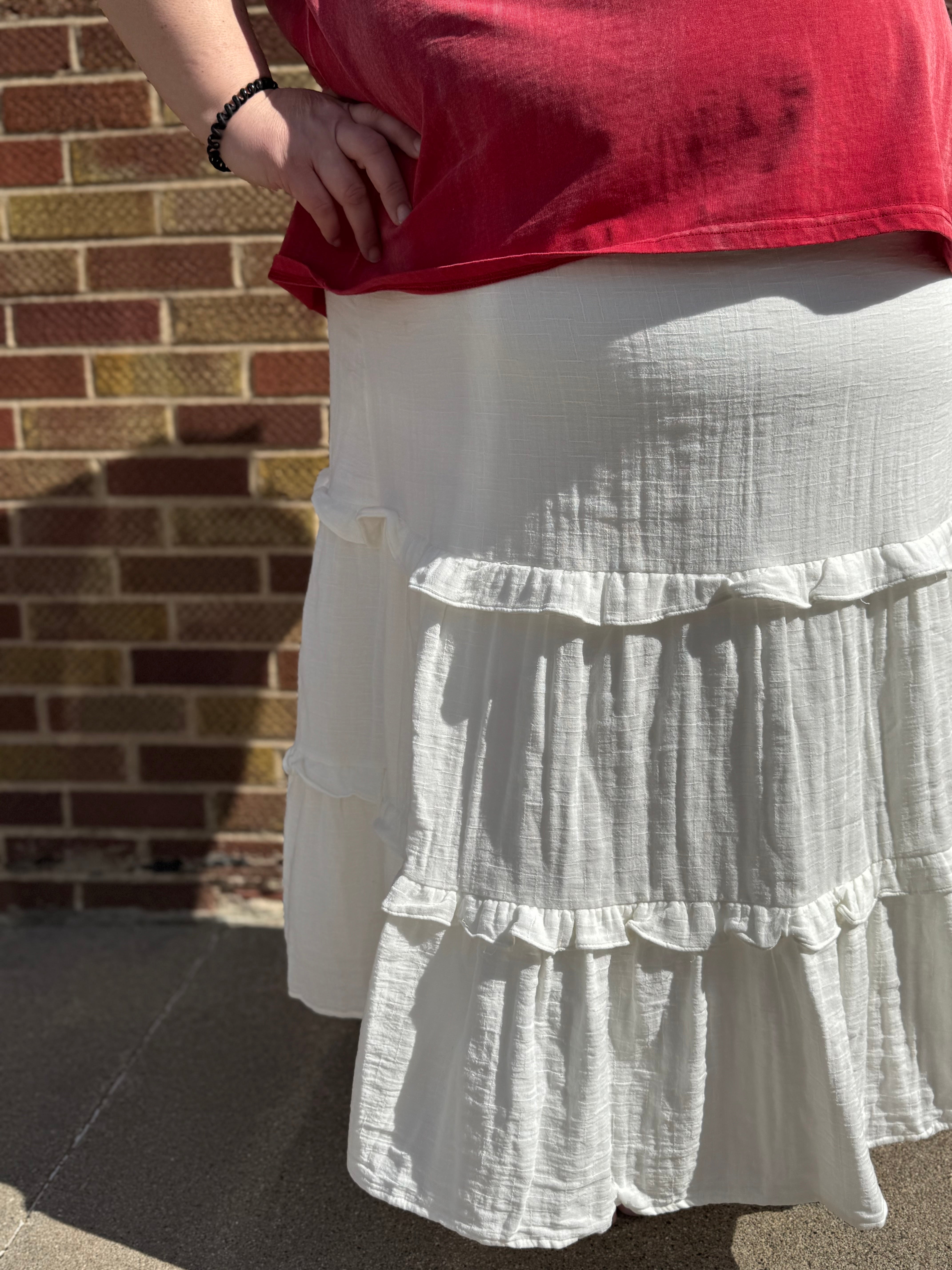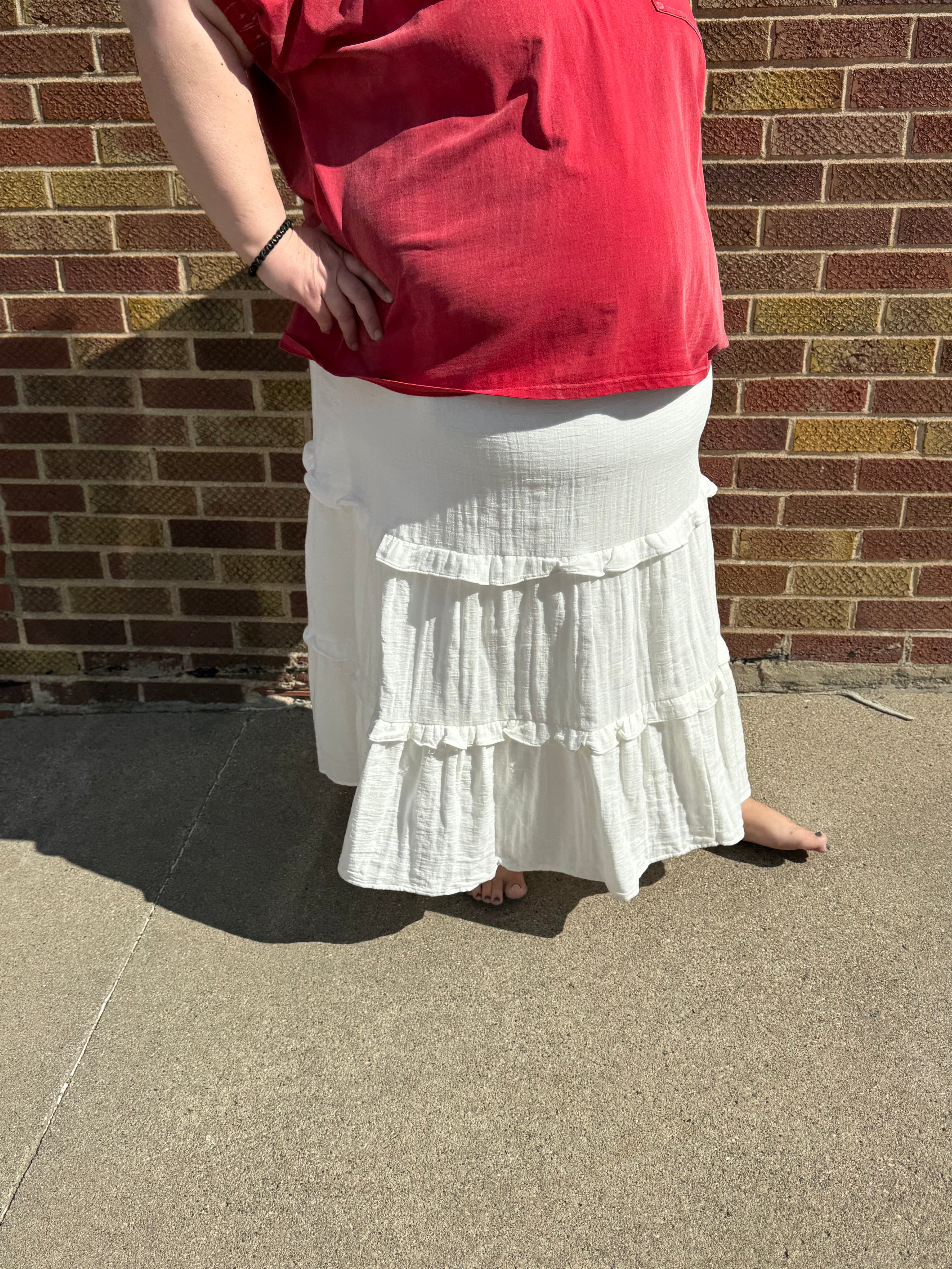 Plus Elastic Waist Ruffle Seamed Textured Skirt