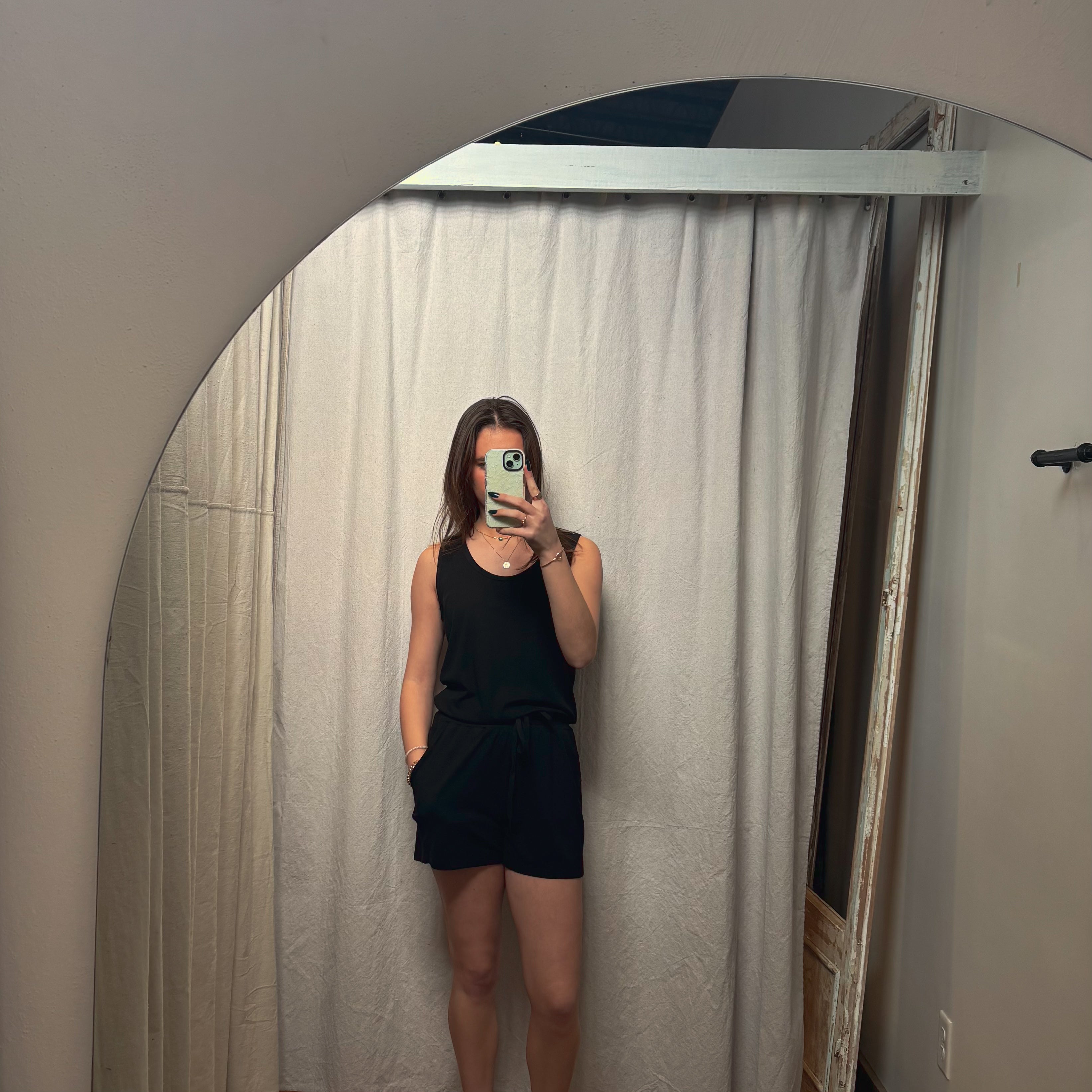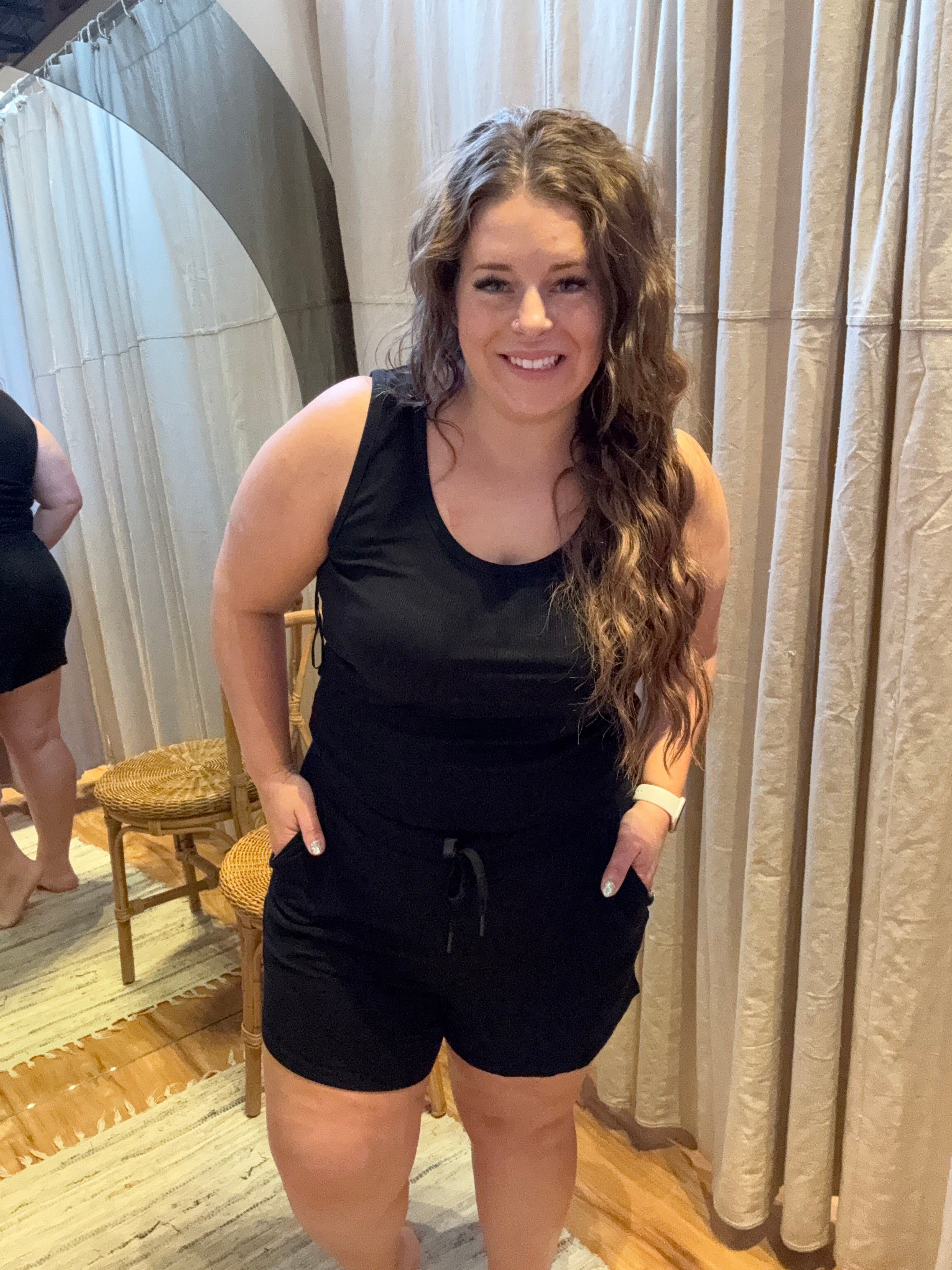 This ribbed knit romper features a comfy and soft design that is perfect for everyday wear. The elastic waistband provides a relaxed and comfortable fit. Stay stylish and comfortable in this versatile romper.