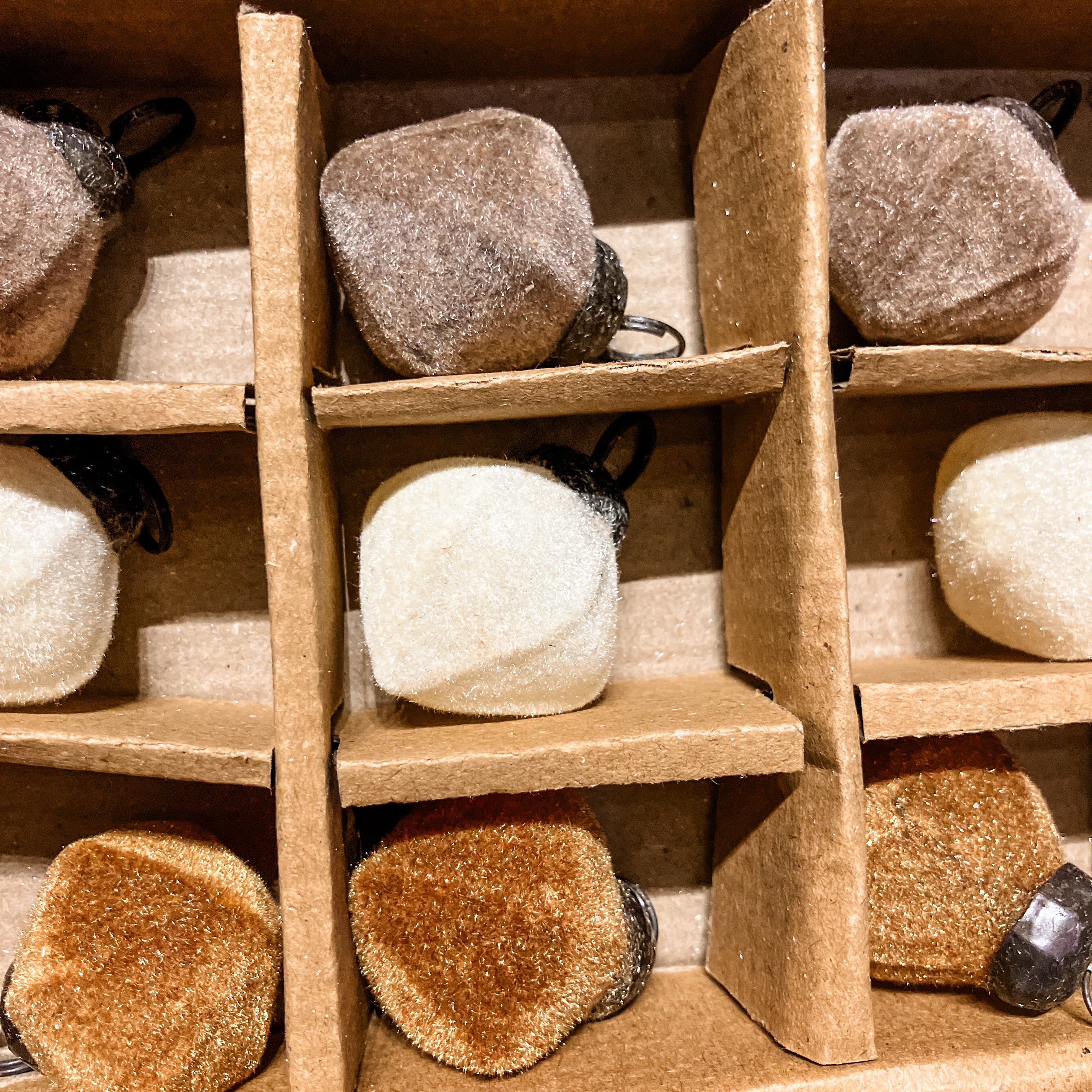 Bring a cozy, wintery vibe to your holiday décor with this box of 12 flocked glass ornaments in soft Orche, Cream, and Greige tones. Each 1” ornament is dusted with a snowy flocked finish, adding texture and charm to your tree. Mix and match these playful colors to create a festive look.