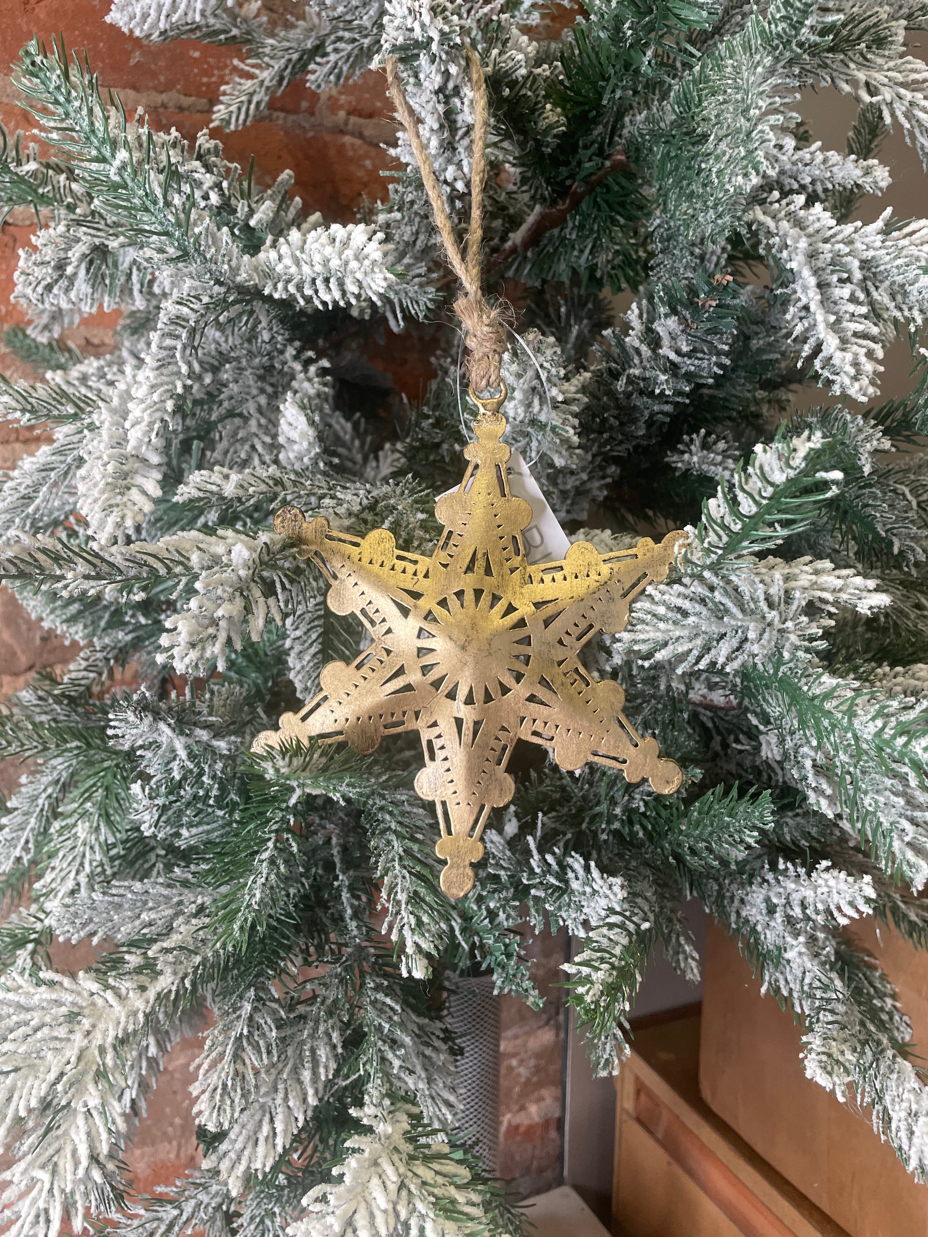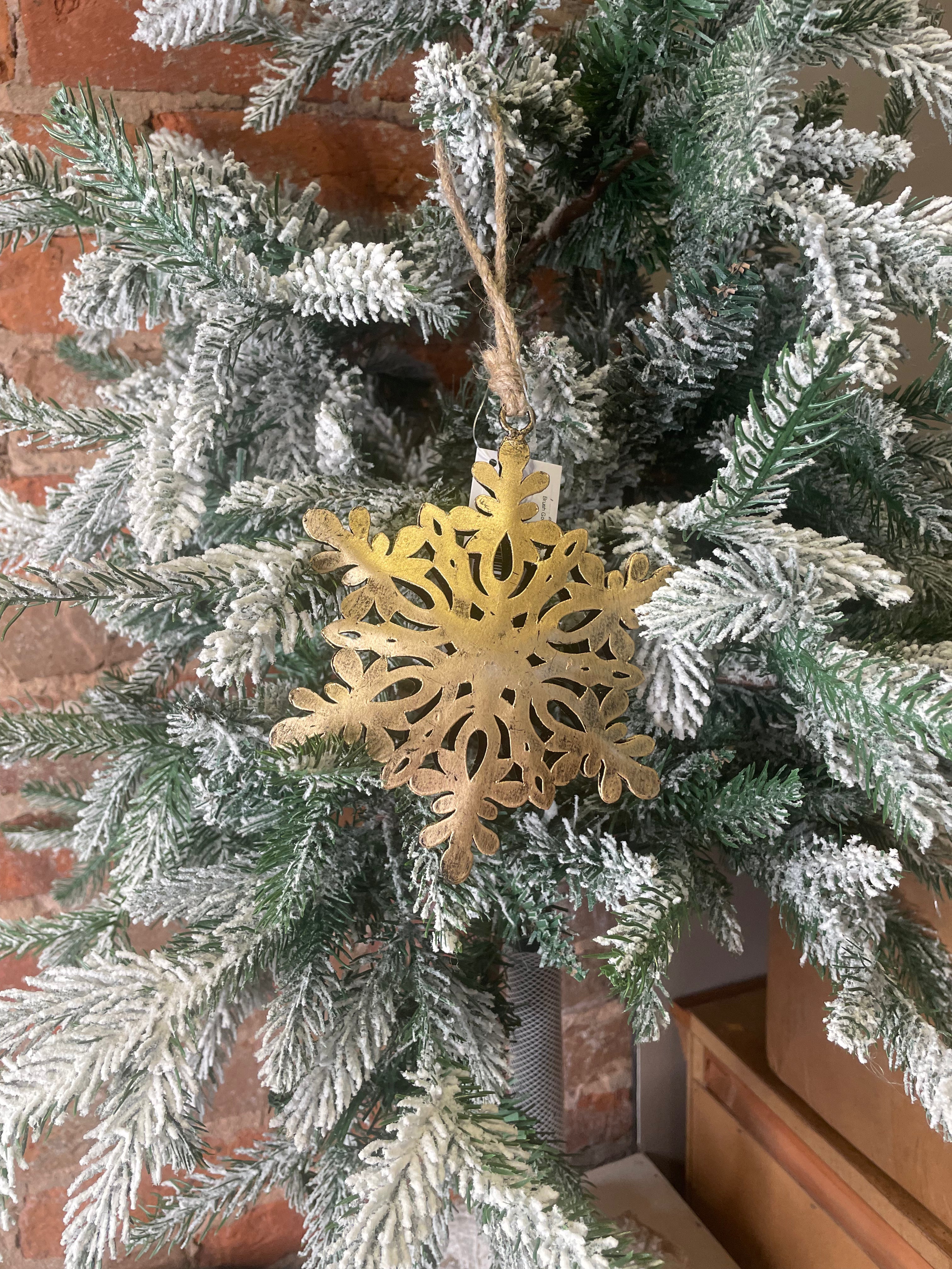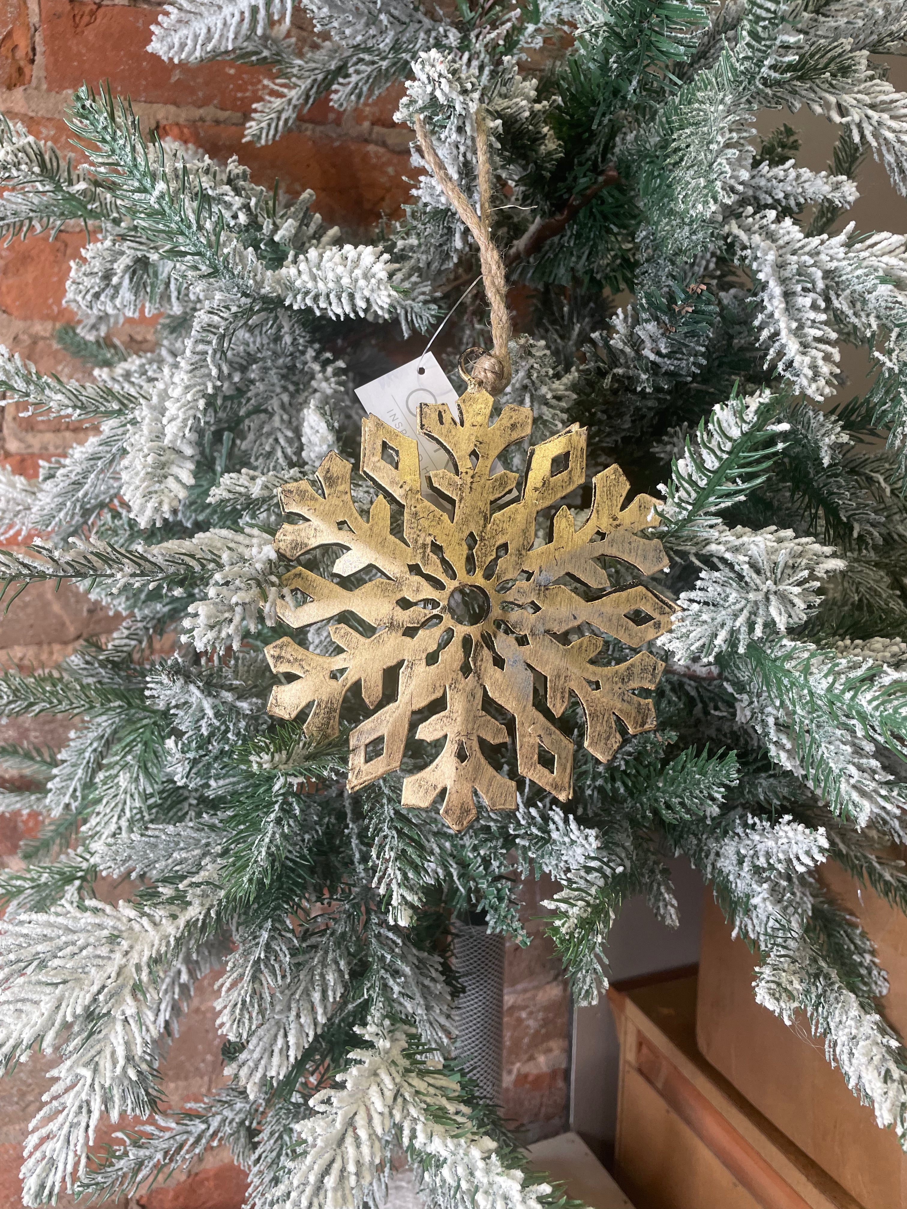 Brush Gold Metal Cutout Snowflake Orn 12”