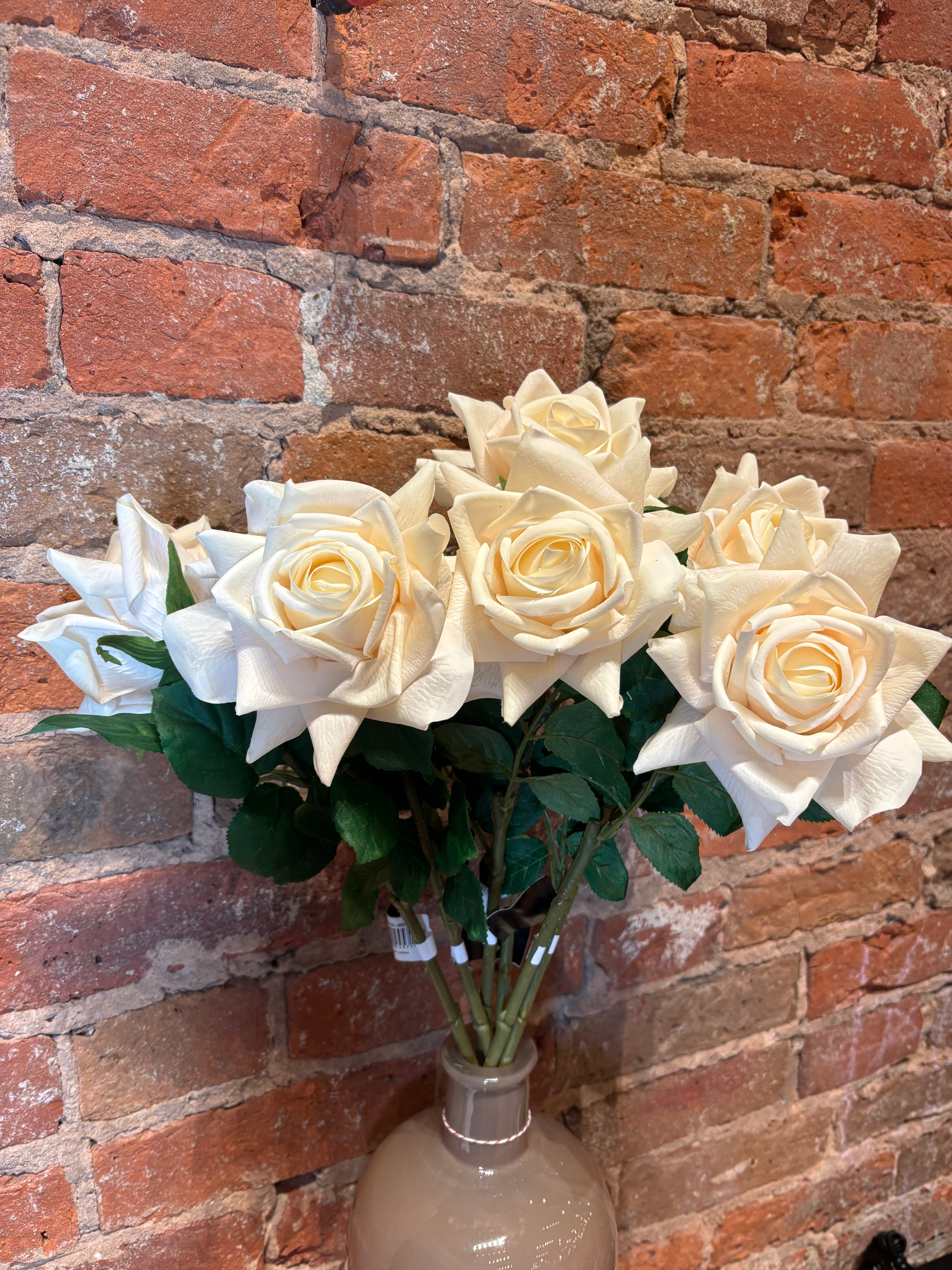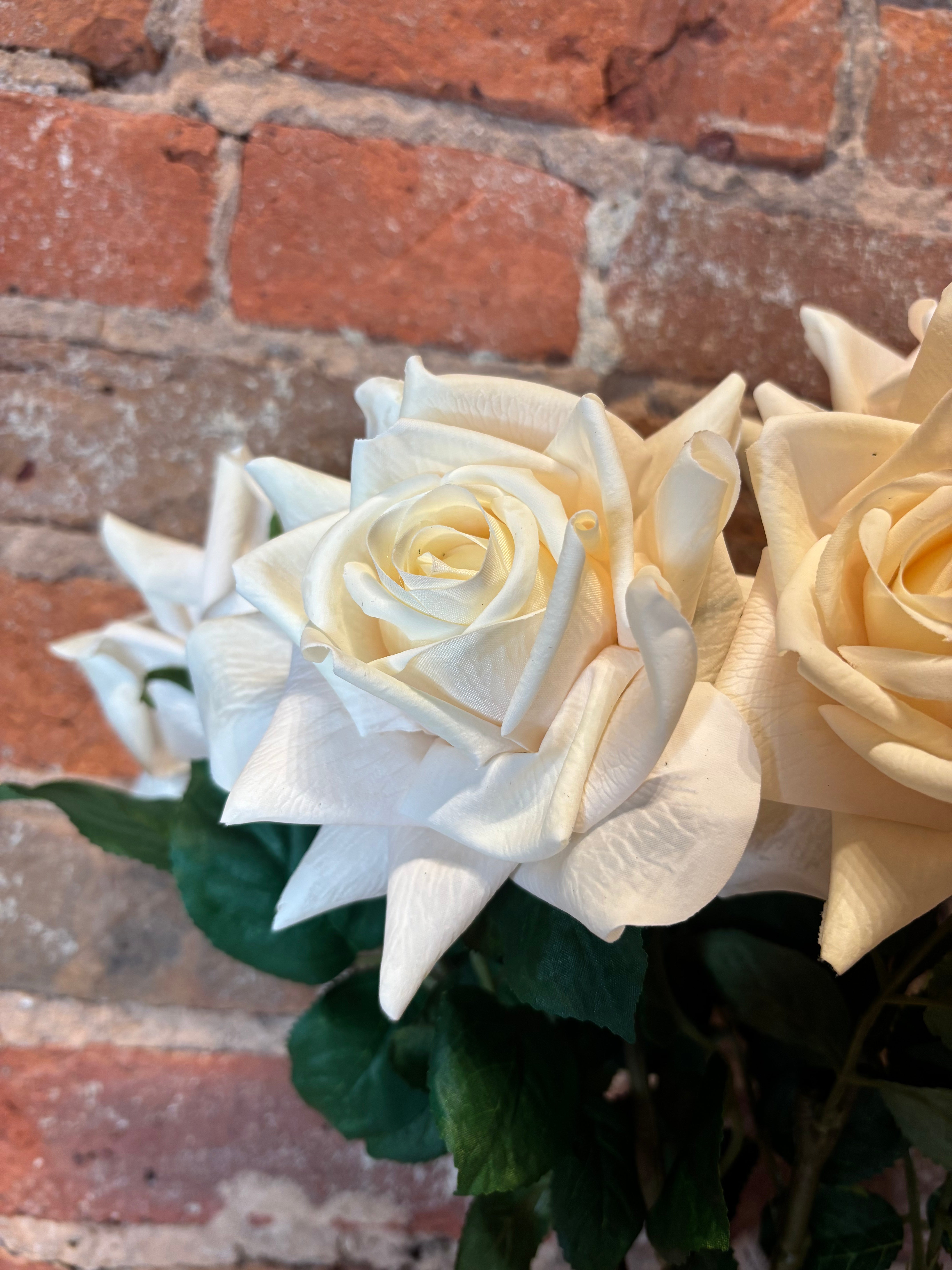 The Real Touch Cream/White Duchess Rose is a stunning 25" flower made with high-quality Real Touch material. With its realistic look and feel, this rose adds a touch of elegance to any space. Perfect for weddings, home decor, or special events.