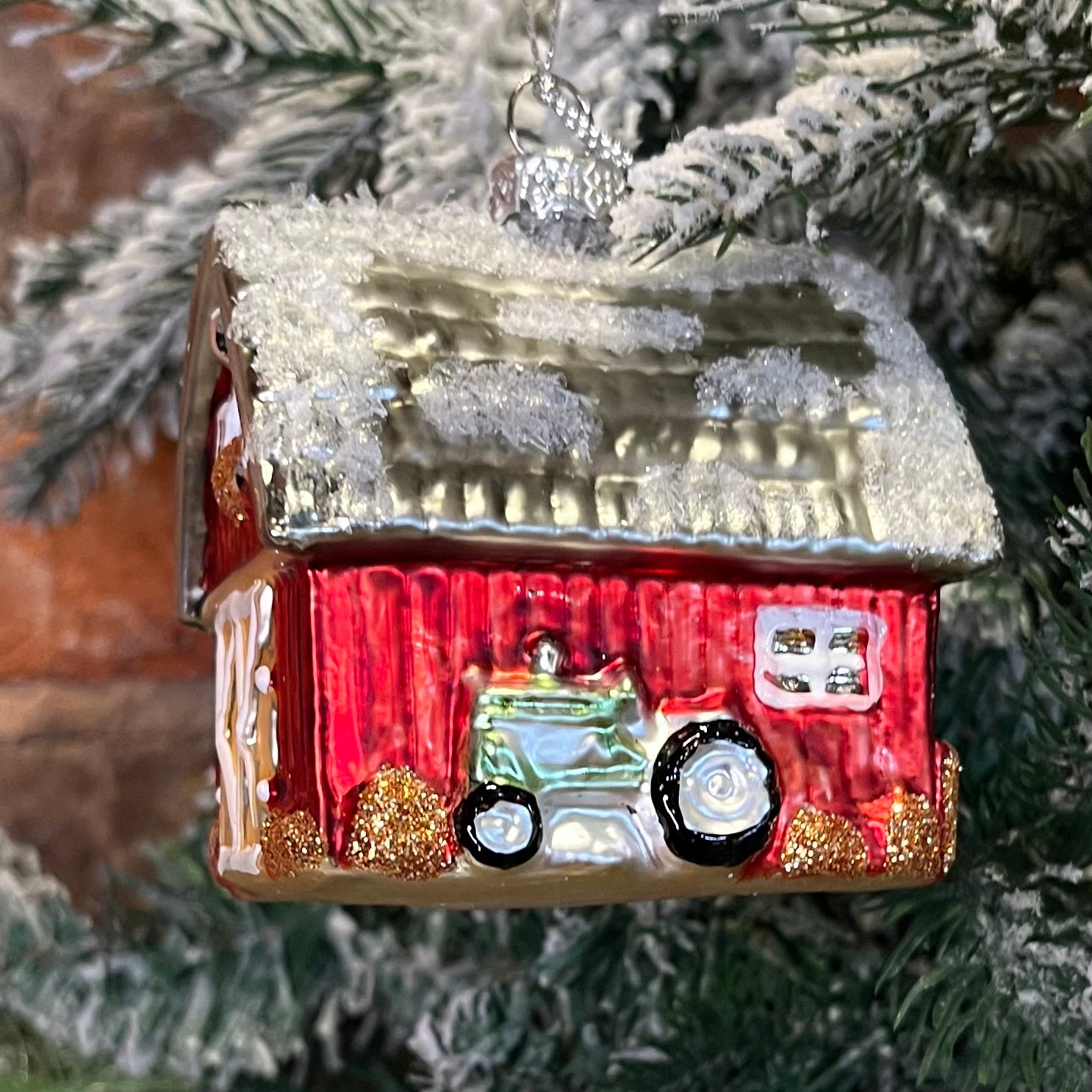 Add a dash of farmyard fun to your holiday decor with the Red Winter Barn with Tractor Ornament. At 3.5 inches, it features a cozy barn scene complete with a tractor and a friendly cow standing alongside, bringing a playful countryside charm to your tree or mantle. Perfect for sparking smiles and rustic cheer all season long!