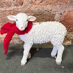 Bring cozy cheer to your holiday decorations with this playful 5” resin sheep ornament, featuring a bright red scarf for a pop of festive color. Its charming design adds warmth and personality to any tree or display.