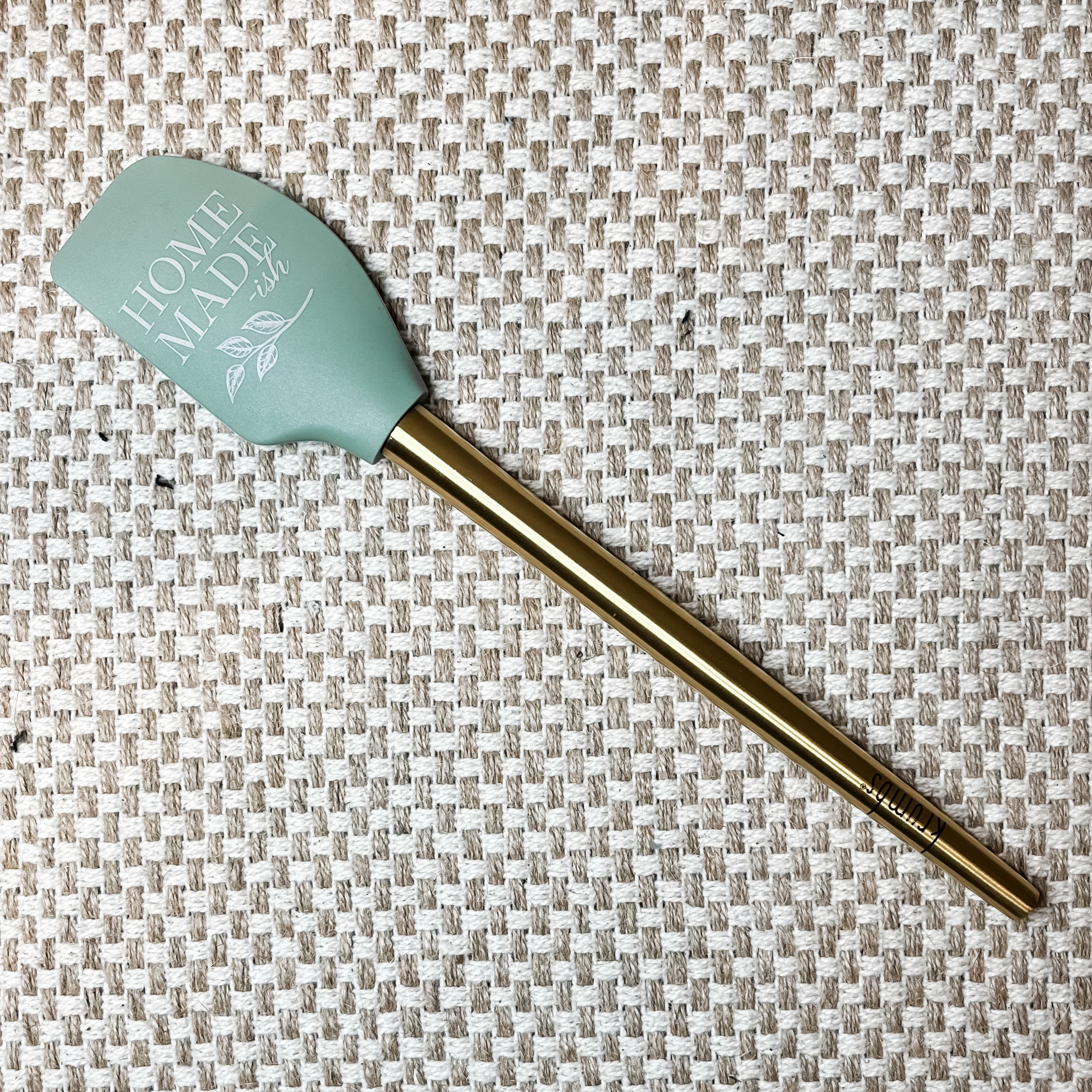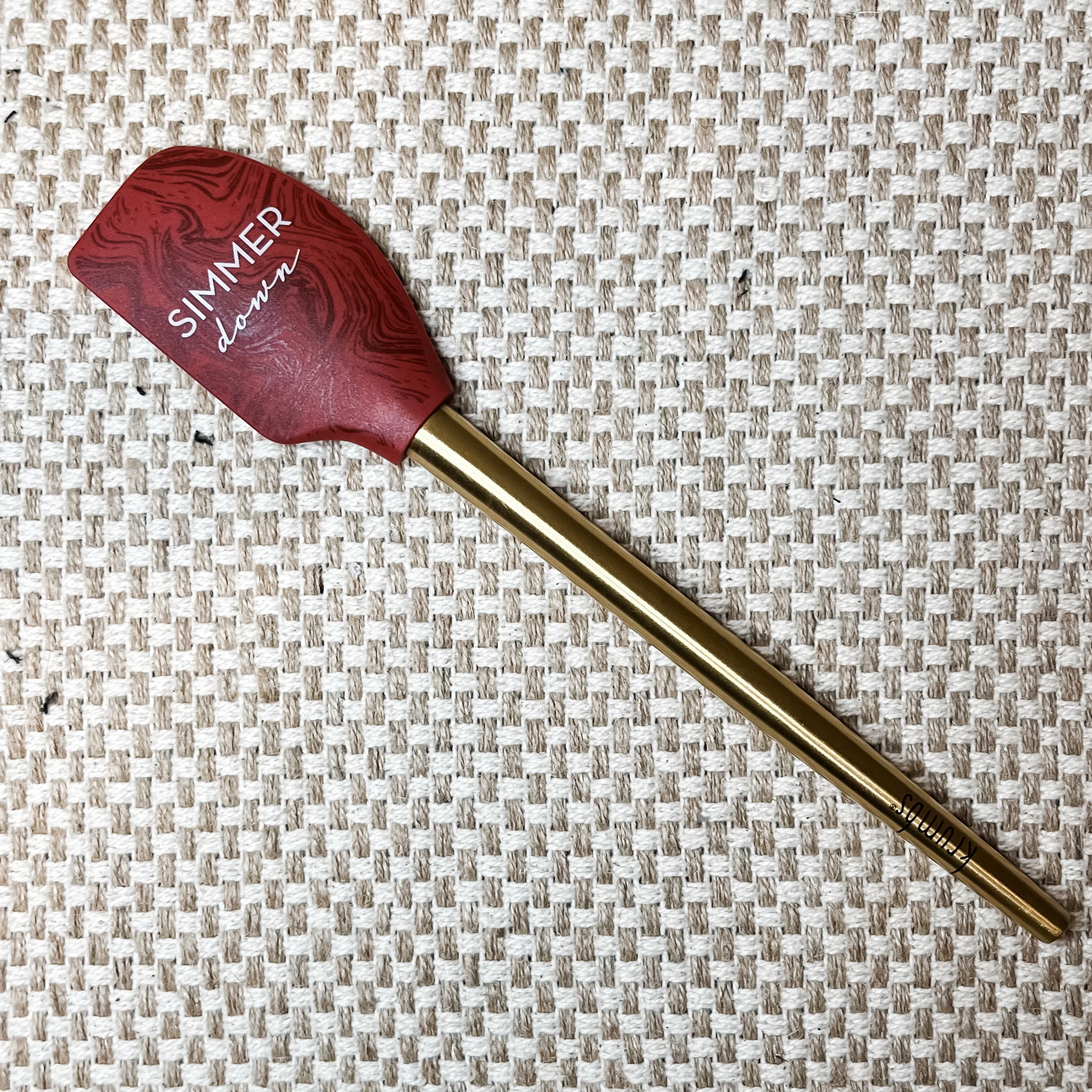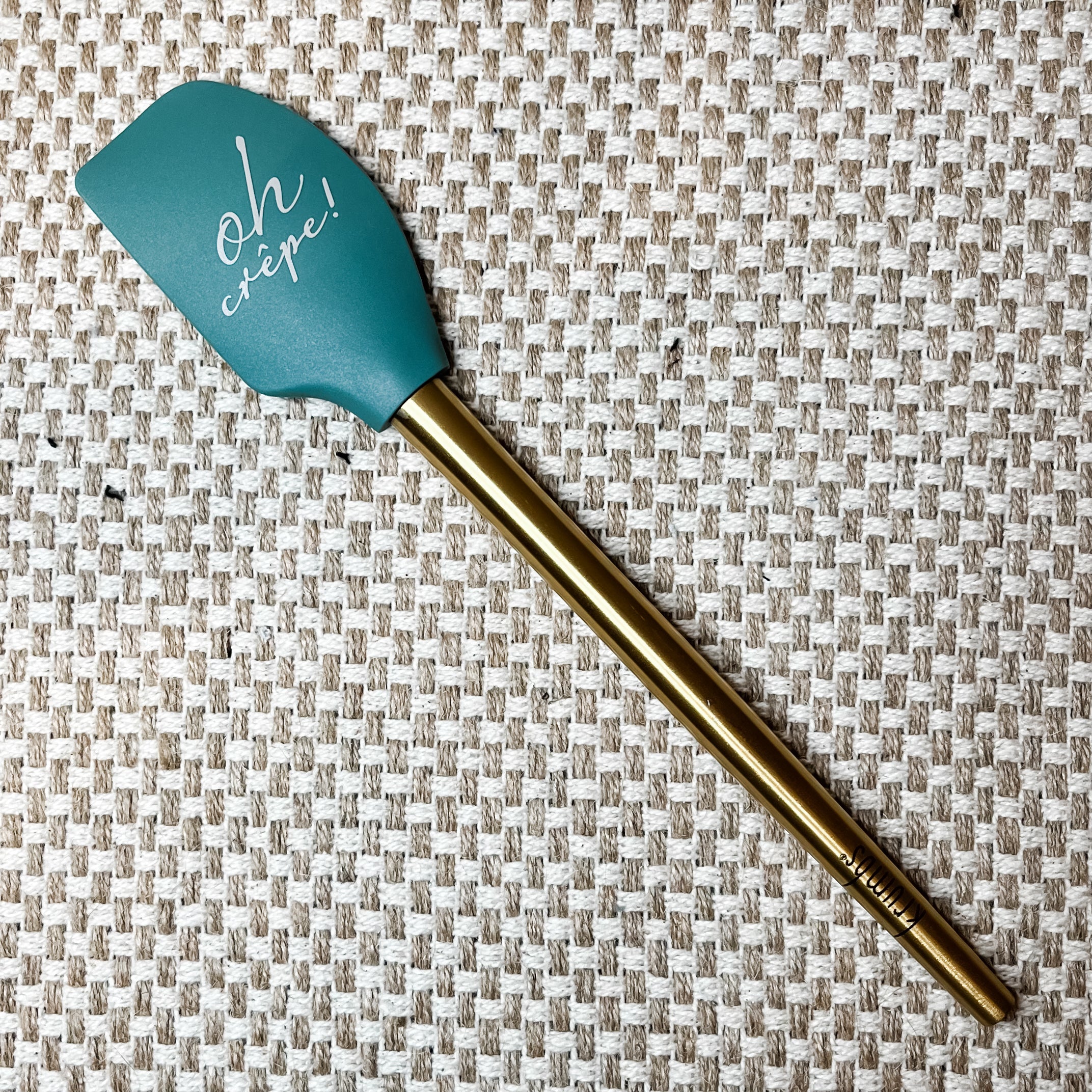 This Kitchen Spatula comes with a shimmering gold-plated handle for a touch of style. The sturdy handle is resistant to heat and wear, ensuring long-term durability. It also features fun graphics on each side to add a decorative touch. Perfect for mixing and stirring!