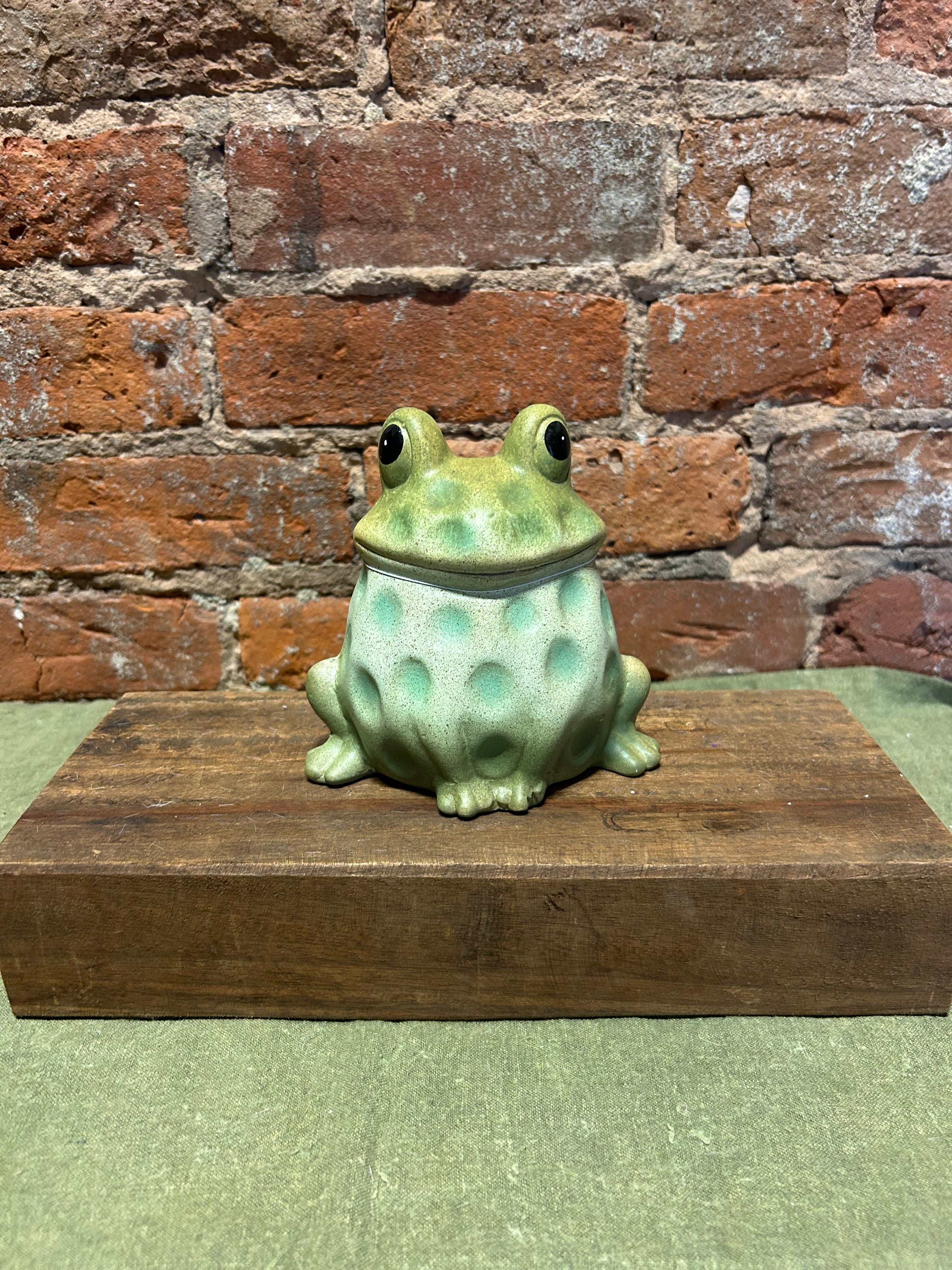 The Green Terracotta Frog adds a charming aesthetic to any garden with its visually appealing design. Constructed from durable terracotta, it resists fading and weathering, ensuring longevity. This decorative piece enhances outdoor spaces while providing a whimsical touch, suitable for various landscaping styles.