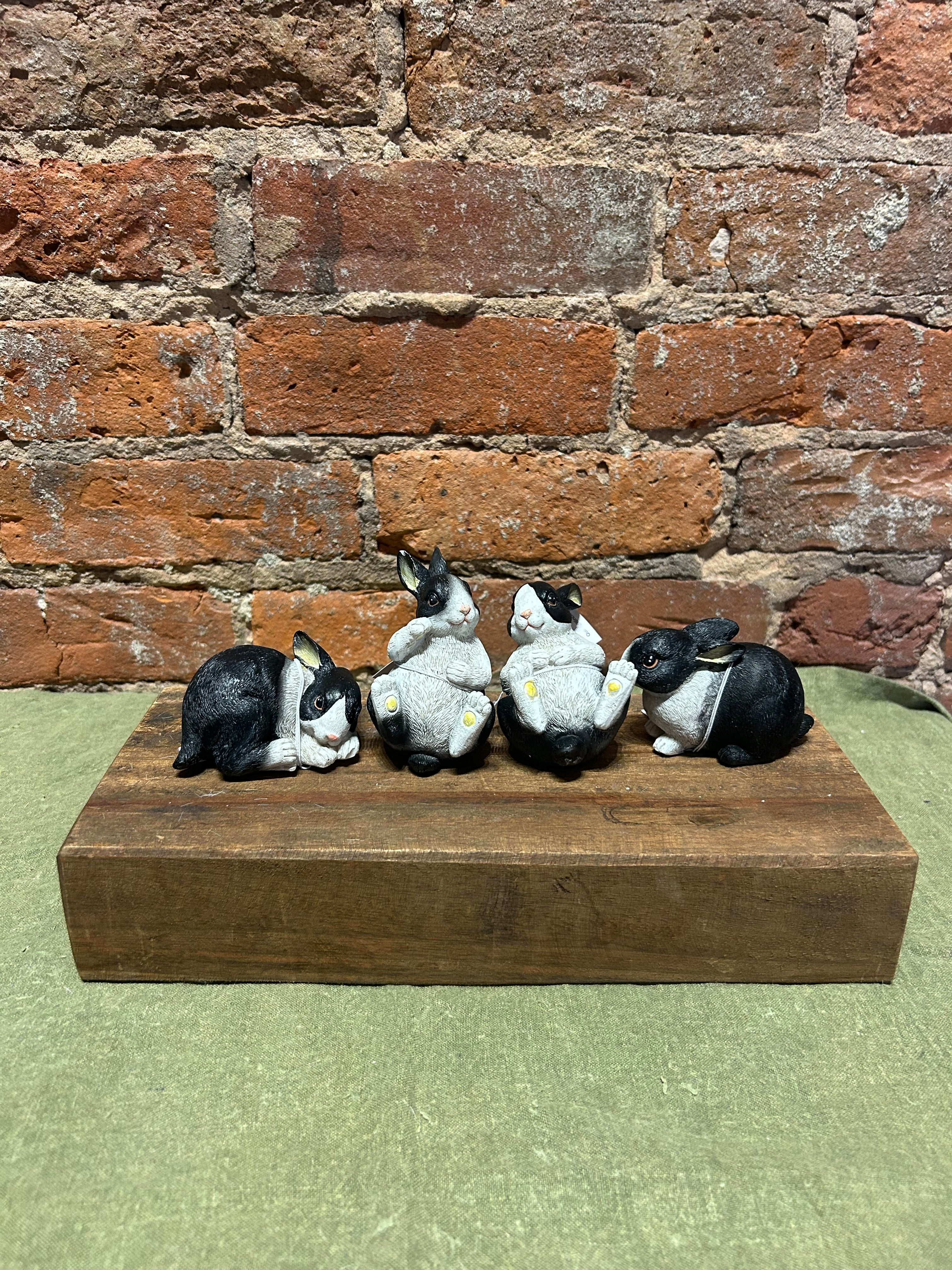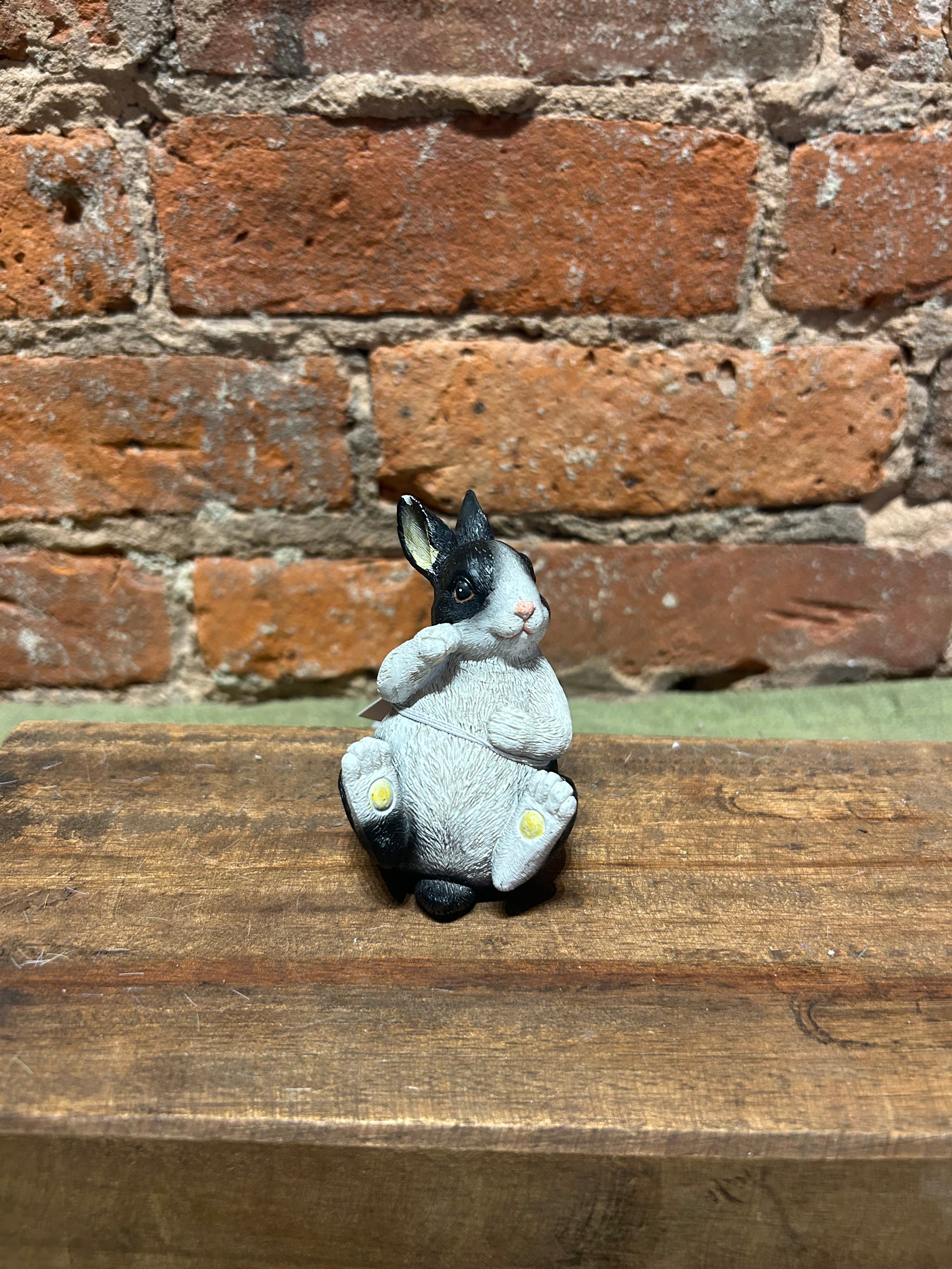 The Resin Black & White Rabbit features a collection of rabbits in various poses, enhancing its decorative appeal. Crafted from durable resin, this product is suitable for both indoor and outdoor use, providing a charming touch to any environment while showcasing meticulous artistry.