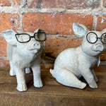 Introducing the smartest swine in town! This delightful 6.5-inch resin pig comes in two fabulous poses, each sporting trendy metal glasses that give serious style credentials. Whether sitting upright or striking a lounging pose, this porcine pal brings personality and pizzazz to any home.