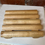 Introducing our Rubberwood Footed Trivet, measuring 7x7.75 inches. Crafted from sturdy rubber wood, this trivet provides excellent heat resistance while protecting your surfaces. Its sleek design adds a touch of style to your kitchen. Hand wash only for long-lasting use.