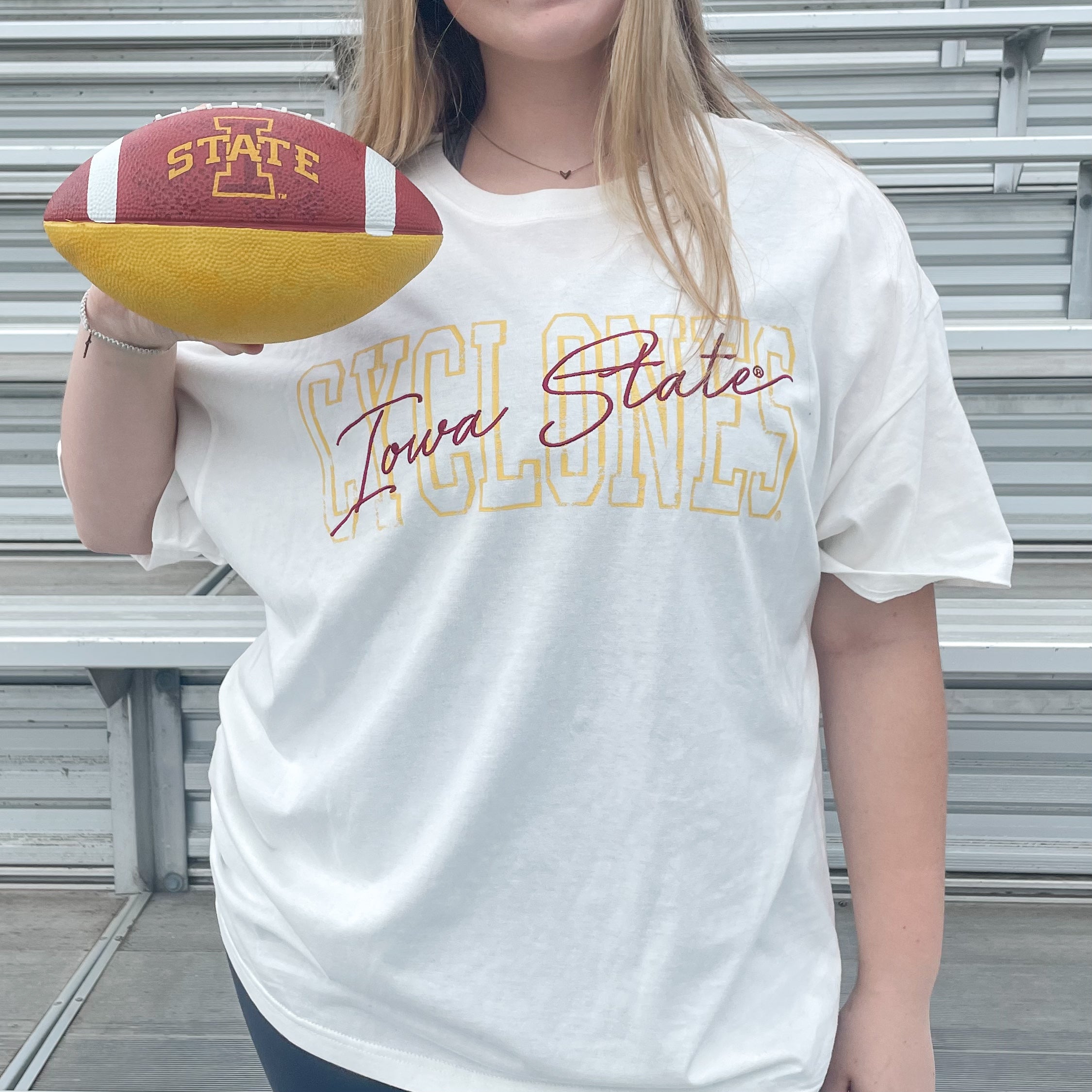 Elevate your game with the ISU Owens Oversized Outline Tee. Featuring lightweight, breathable fabric and a bold oversized outline design, this tee is perfect for showing off your team pride. Made for comfort and style, this tee is a must-have for any Iowa State University fan.