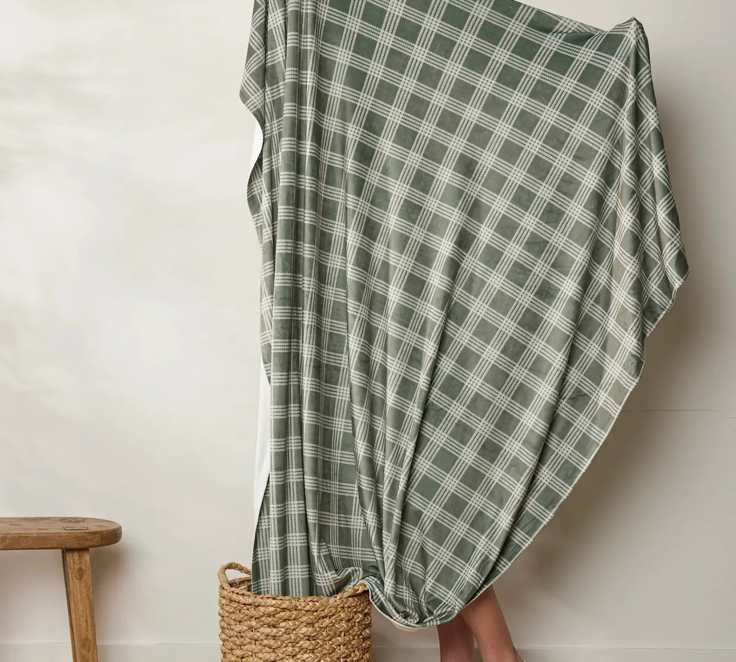 Black, Tan & Natural Plaid Woven Throw 50x60"