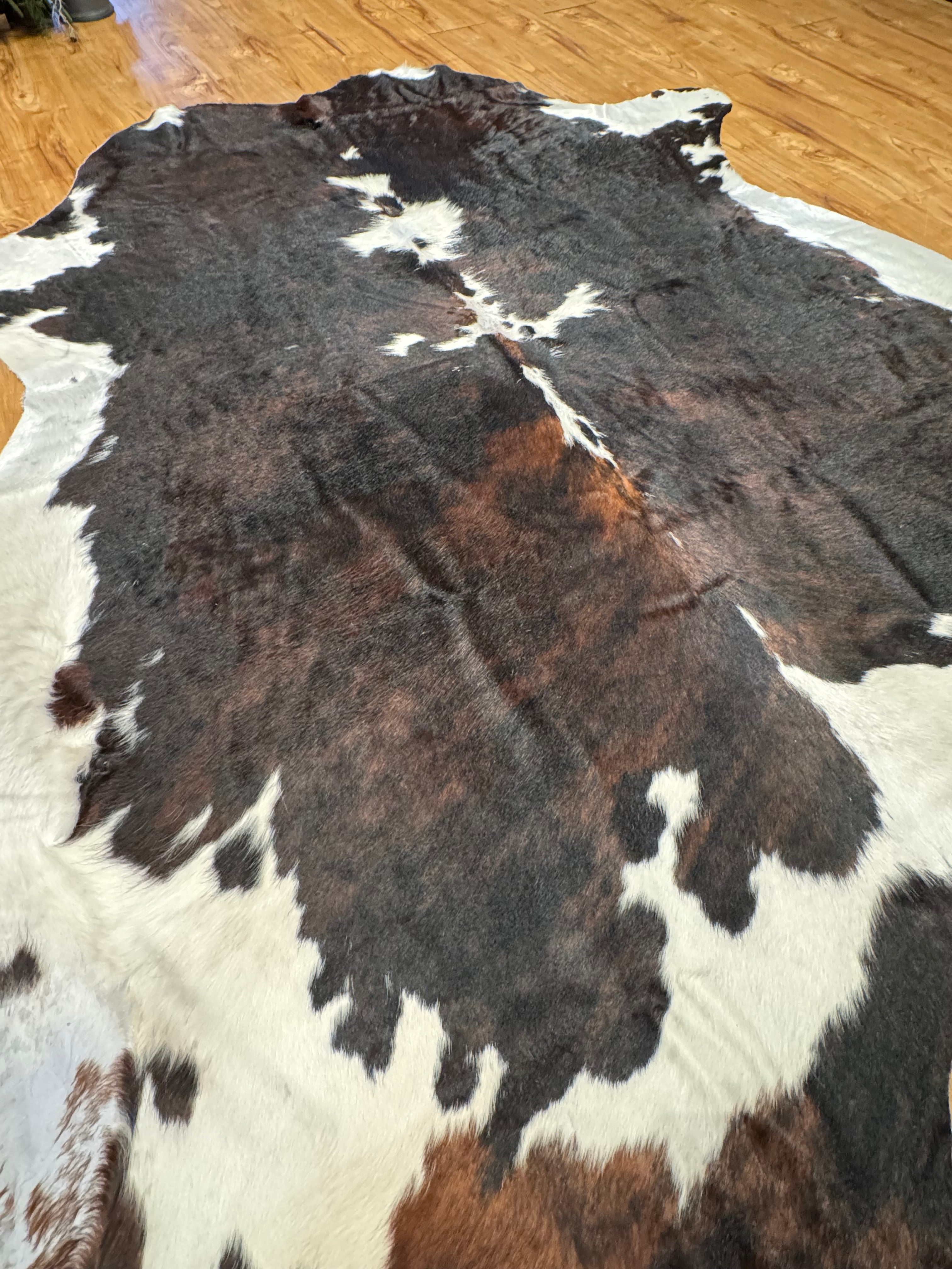 Authentic Brazilian cowhide rugs are super durable and stylish. Can be cleaned easily by sweeping or vacuuming on high carpet setting, or spot washed with dish soap if needed, though liquids typically sit on top of the hair and can easily be wiped off. Each photo is of actual rug, and individual sizing is mentioned for each rug.