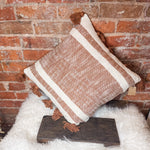 This Brown/Cream Stripe Pillow boasts a timeless design. The pillow is constructed with a classic combination of colors and stripes. The fringe completes the look, adding the perfect finishing touch. Measures 18" in size.