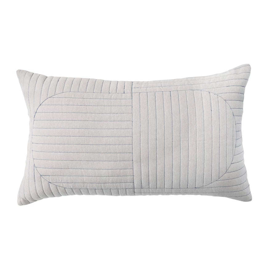 Cotton Chambray Quilted Lumbar Pillow 24X16"