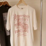 This American Motors Racing Club Graphic Tee combines classic comfort with vintage style. Crafted from soft Comfort Colors fabric in a cream shade, it features subtle pink graphics that add a refined touch. The crew neck and short sleeves ensure a relaxed fit, making it ideal for everyday wear or casual outings. Perfect for enthusiasts seeking both quality and understated design.