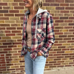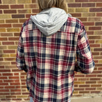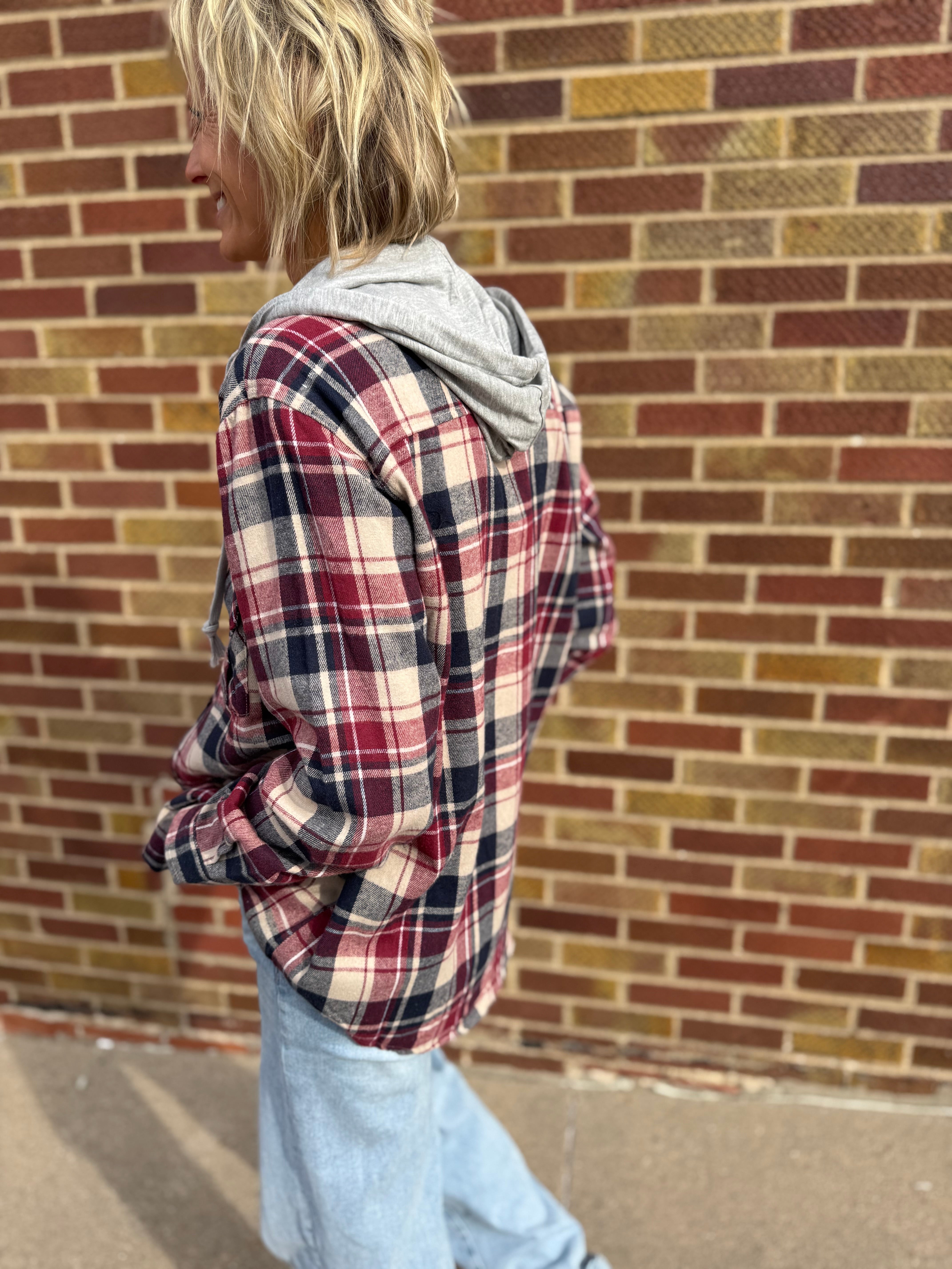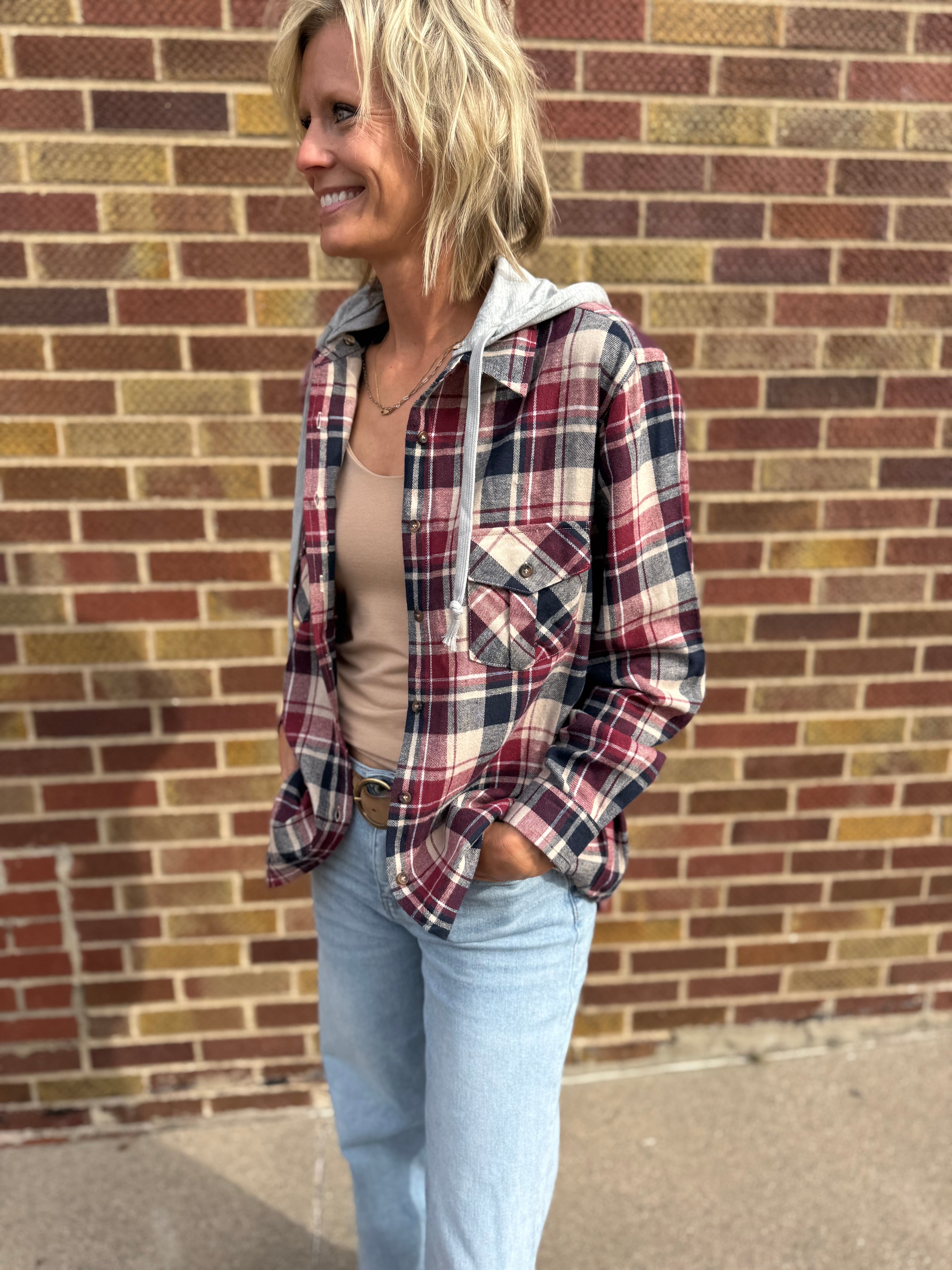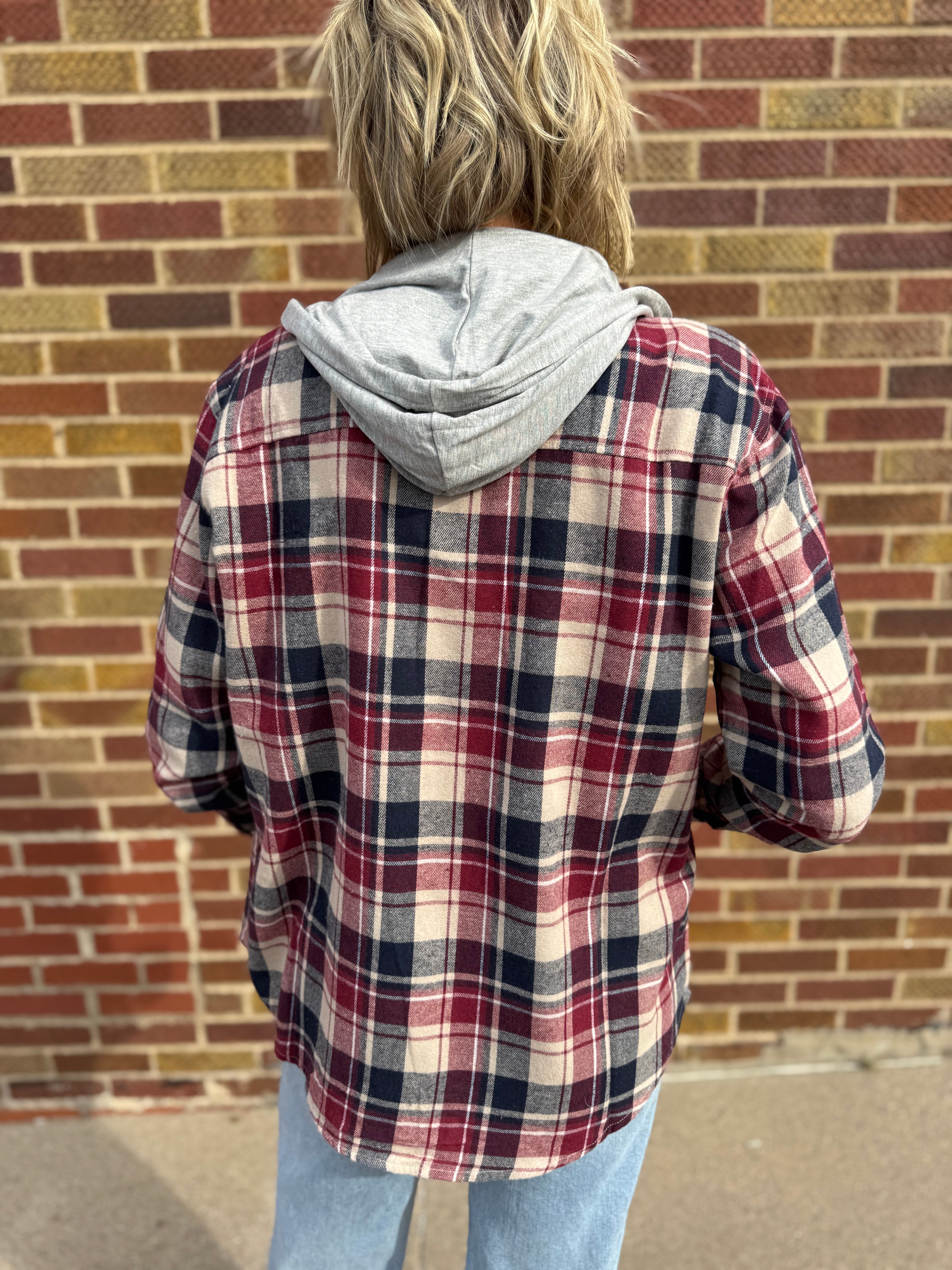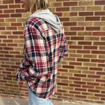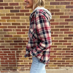 Berry Plaid Shirt w/ Hoodie & Front Pockets