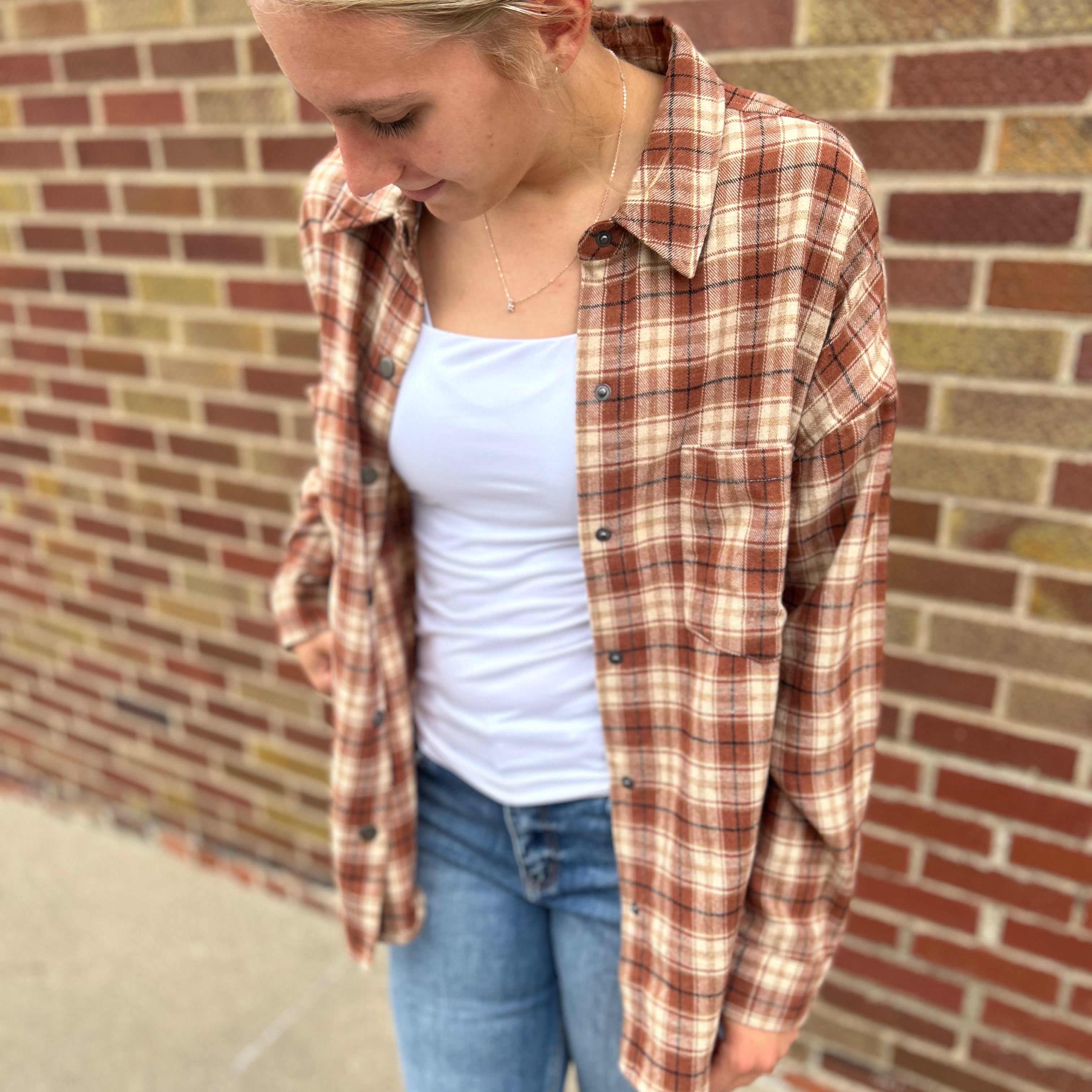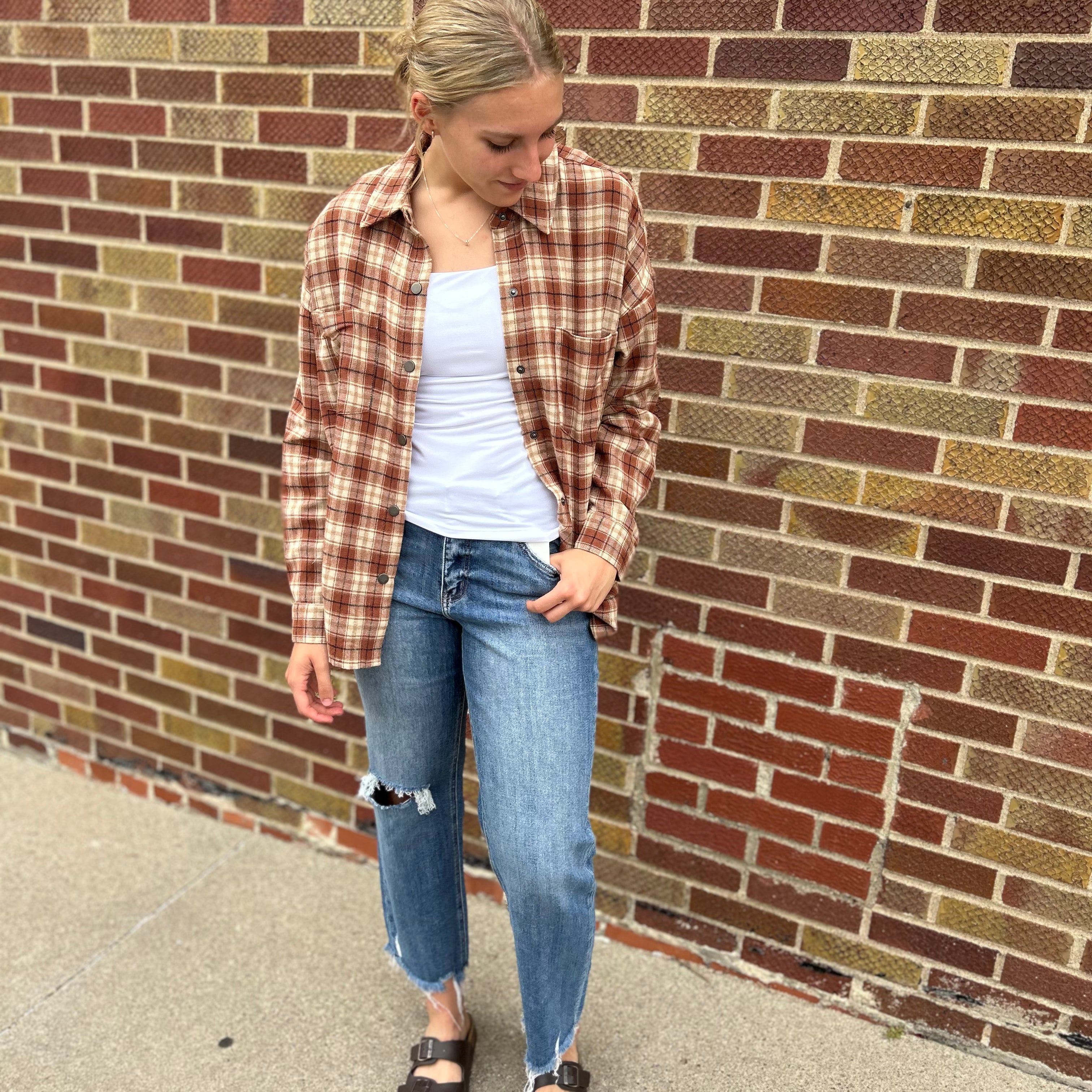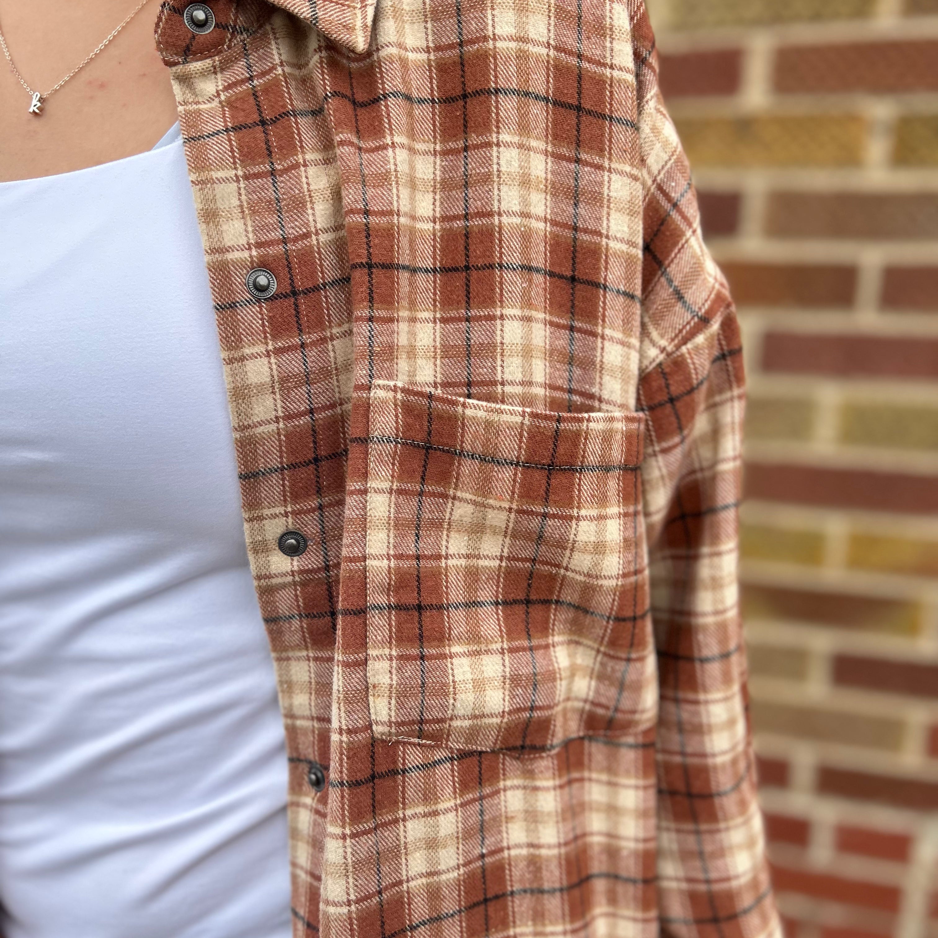 Brushed Mini Plaid Shirt w/ Front Pockets