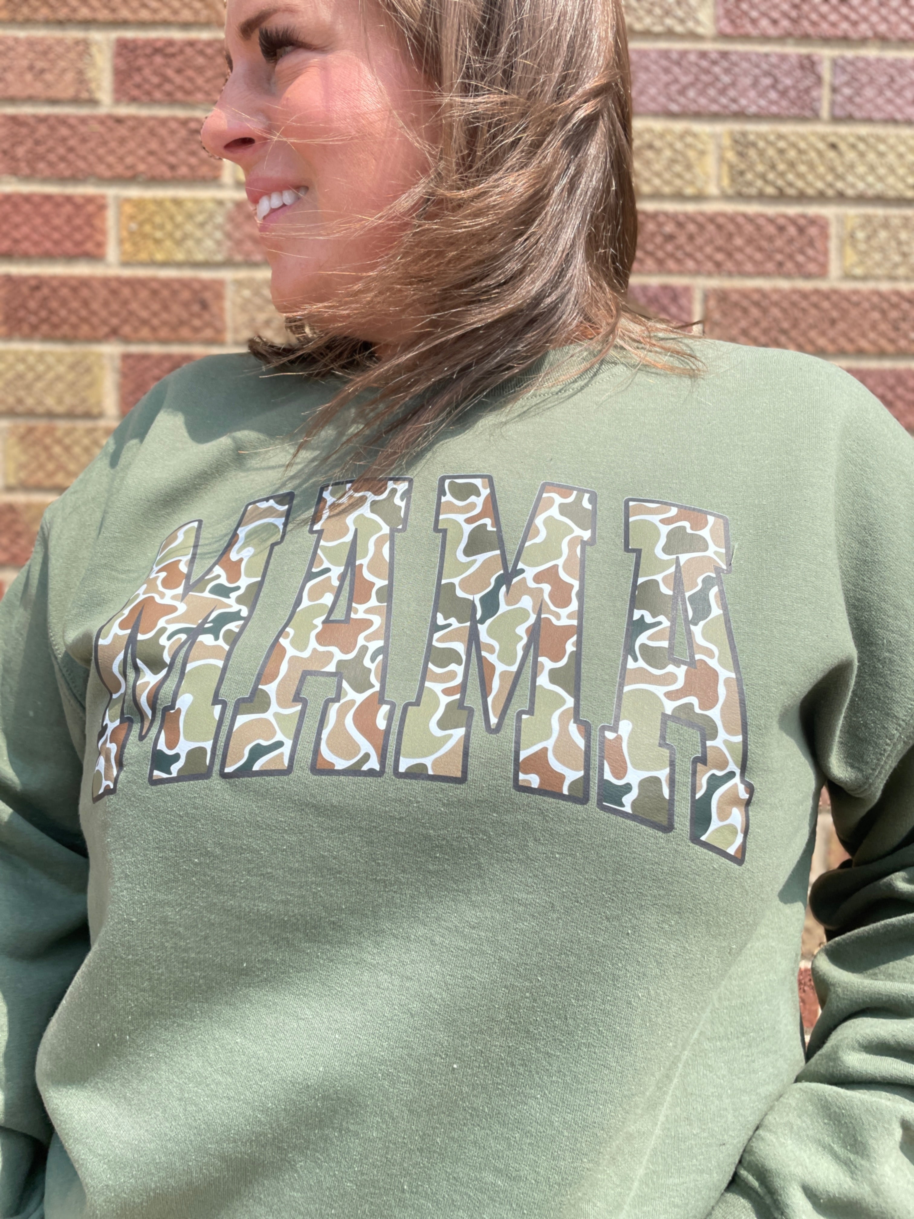 Stay cozy and stylish with this soft crewneck sweater featuring bold camo "Mama" lettering. Perfect for everyday wear, it combines comfort with a trendy look that celebrates your mom pride. Whether lounging at home or out and about, this sweater keeps you warm while making a confident statement.