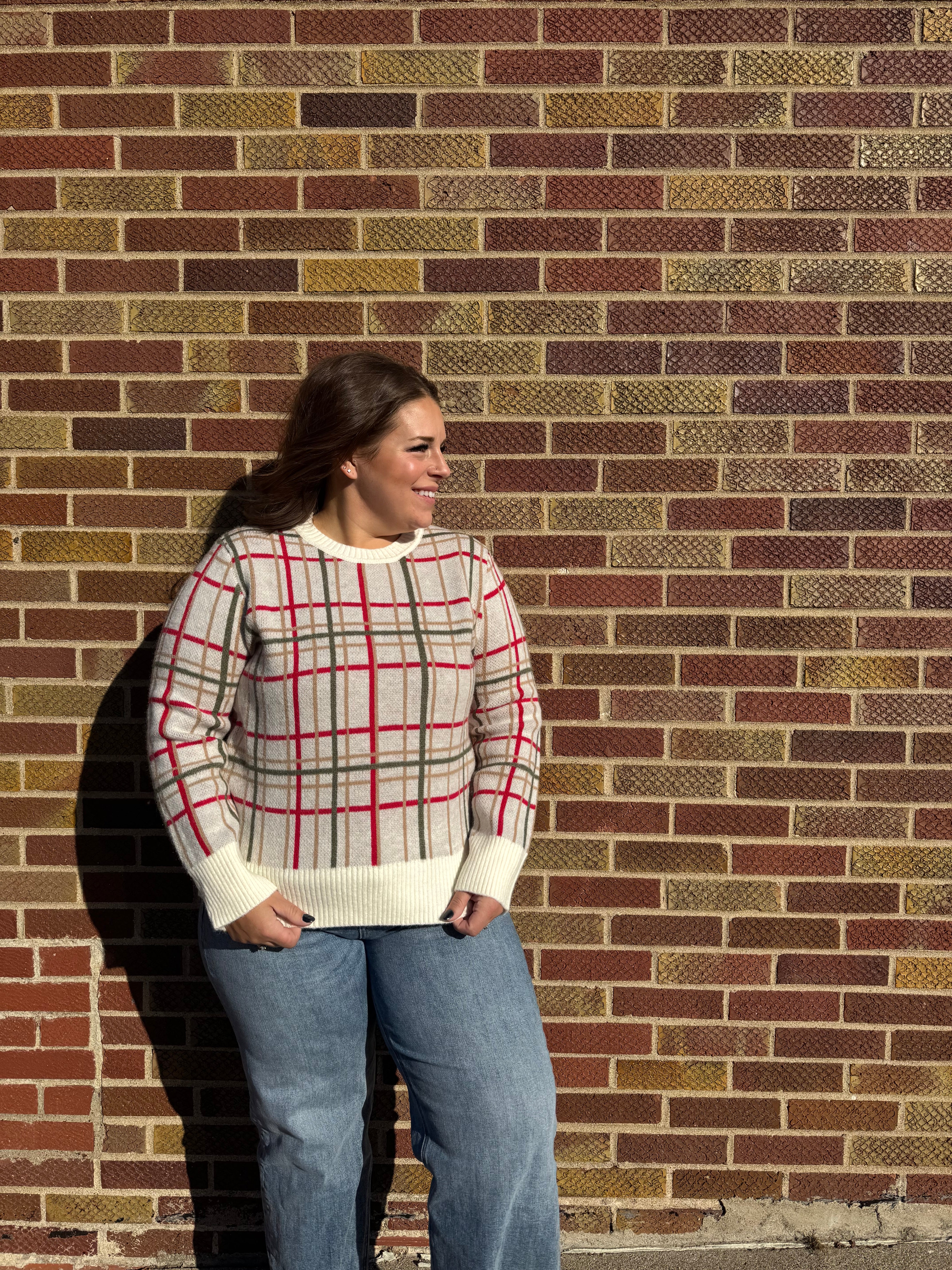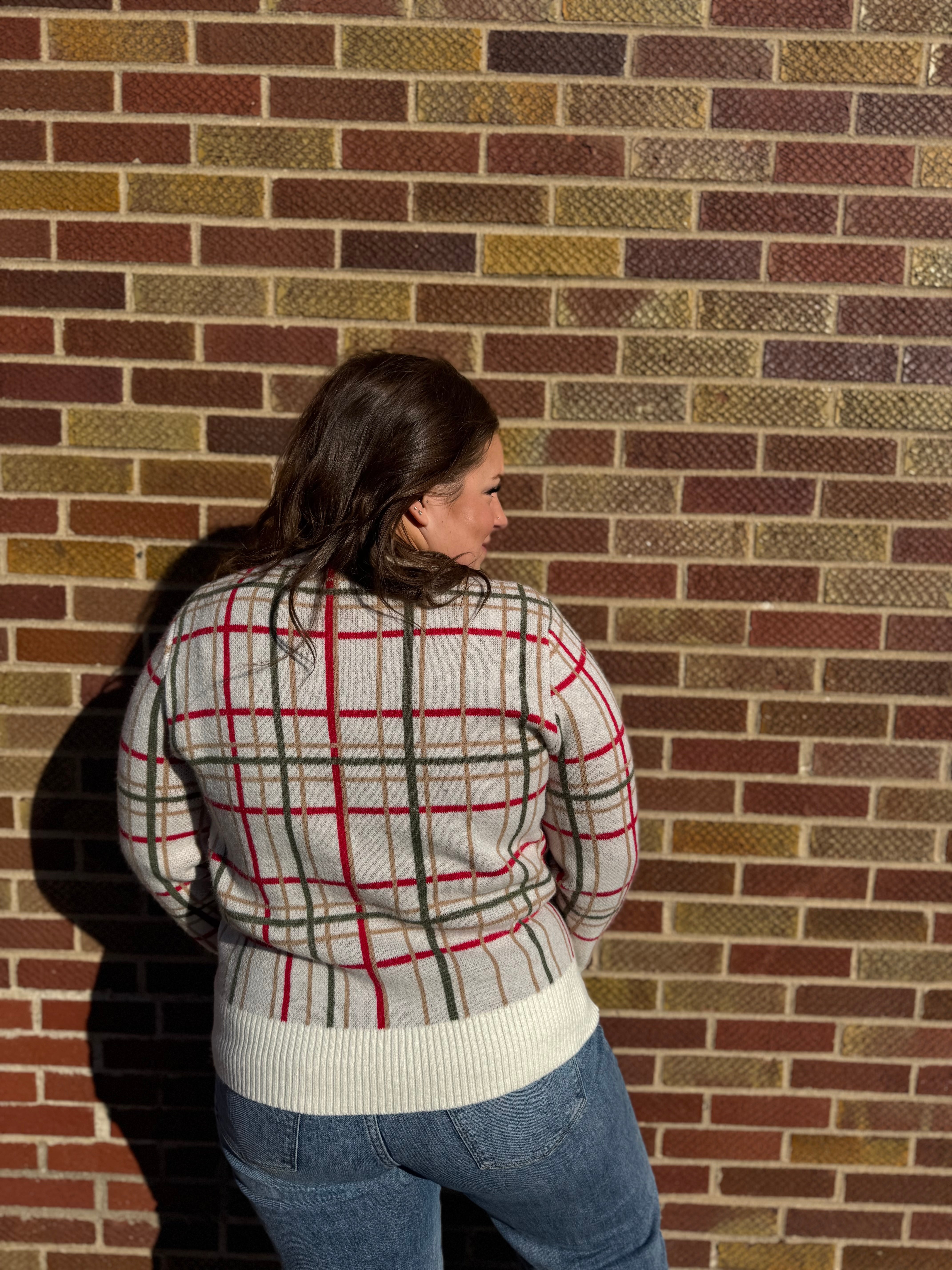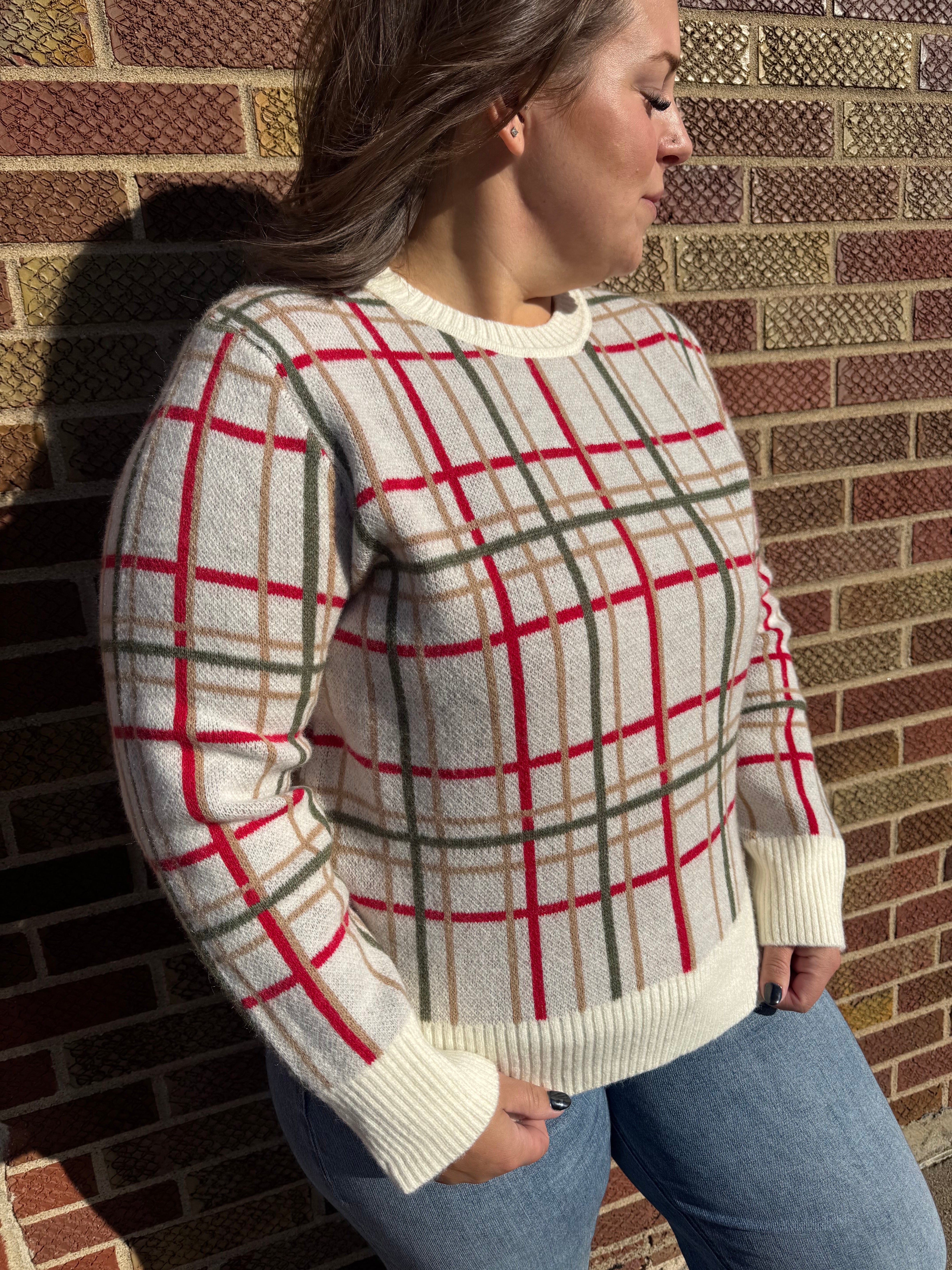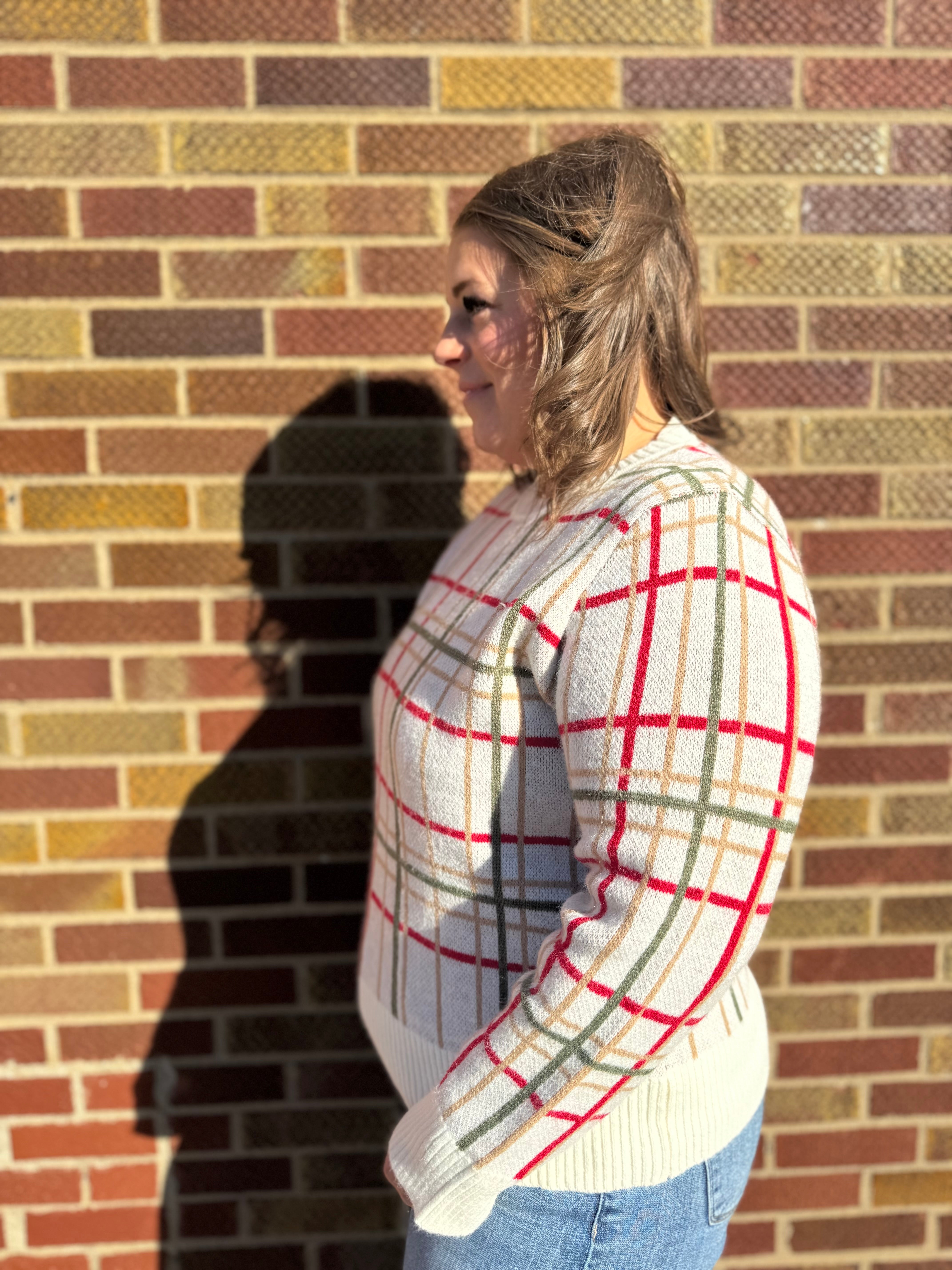 "Stay festive and stylish this holiday season with our Christmas plaid sweater. Made with soft and cozy fabric, this sweater features a classic plaid design that is perfect for adding a touch of holiday cheer to any outfit. With a comfortable fit and timeless pattern, this sweater is a must-have for any Christmas celebration."