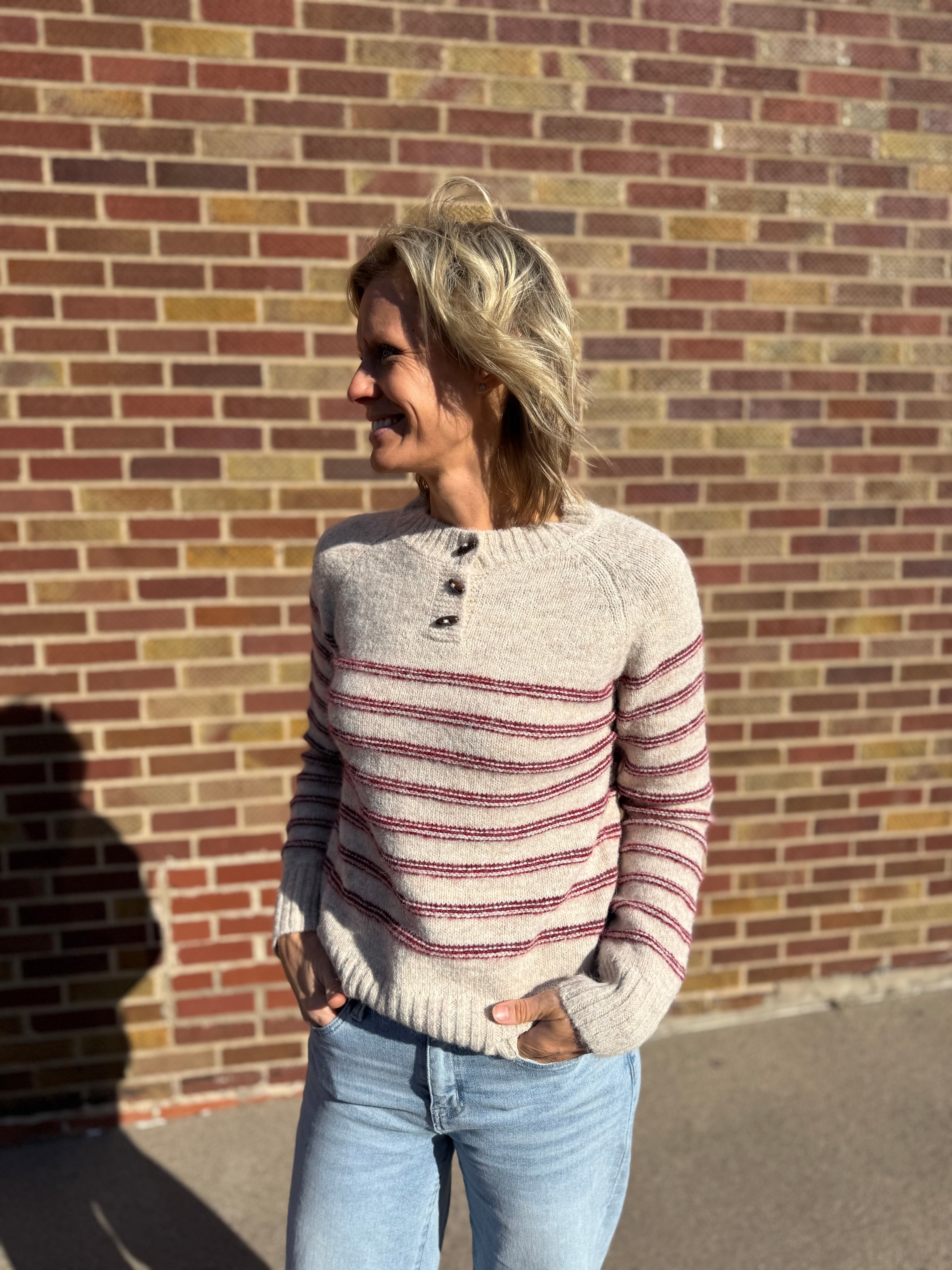 Chunky Striped Half Button Pullover Sweater