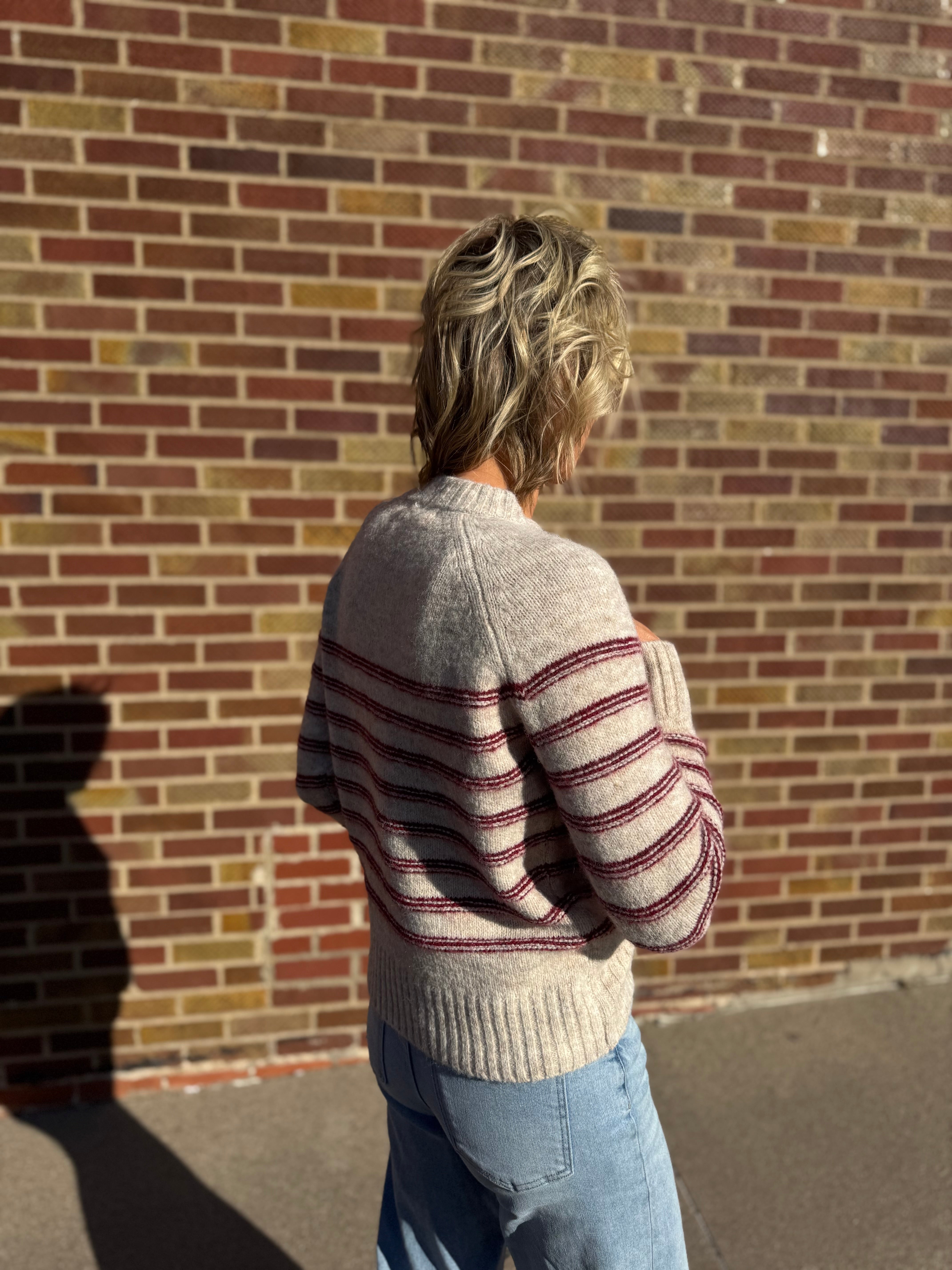 Cozy meets cool with the Chunky Striped Half Button Pullover Sweater! Perfect for layering or wearing solo, this pullover brings warmth and fun to any outfit.