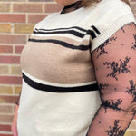 Brighten your look with the Cream Stripe Sweater Vest! Soft and cozy, this playful vest features bold brown and black stripes that add a fun twist to its creamy base. Perfect for layering, it brings warmth and a splash of style to any outfit.