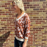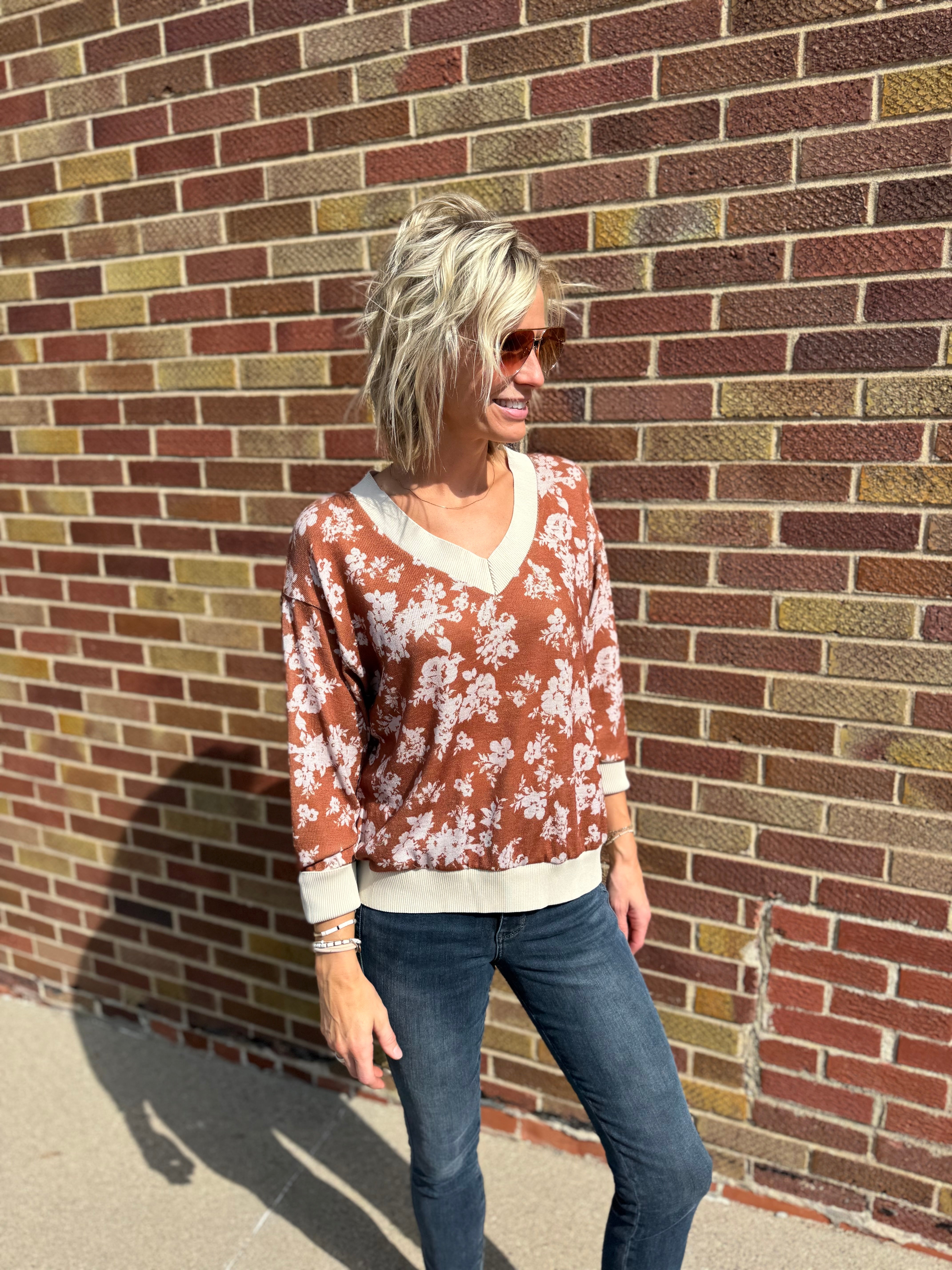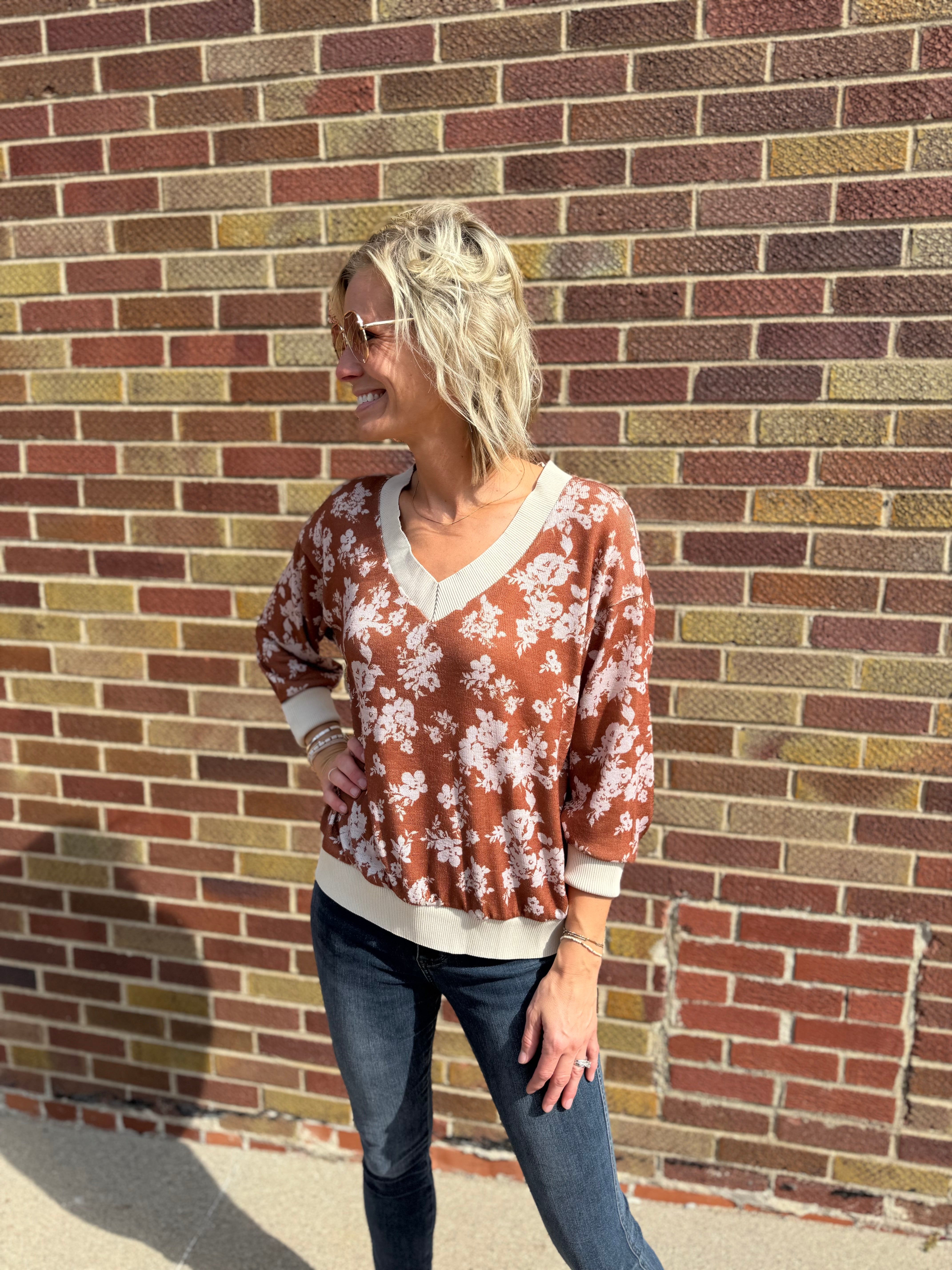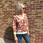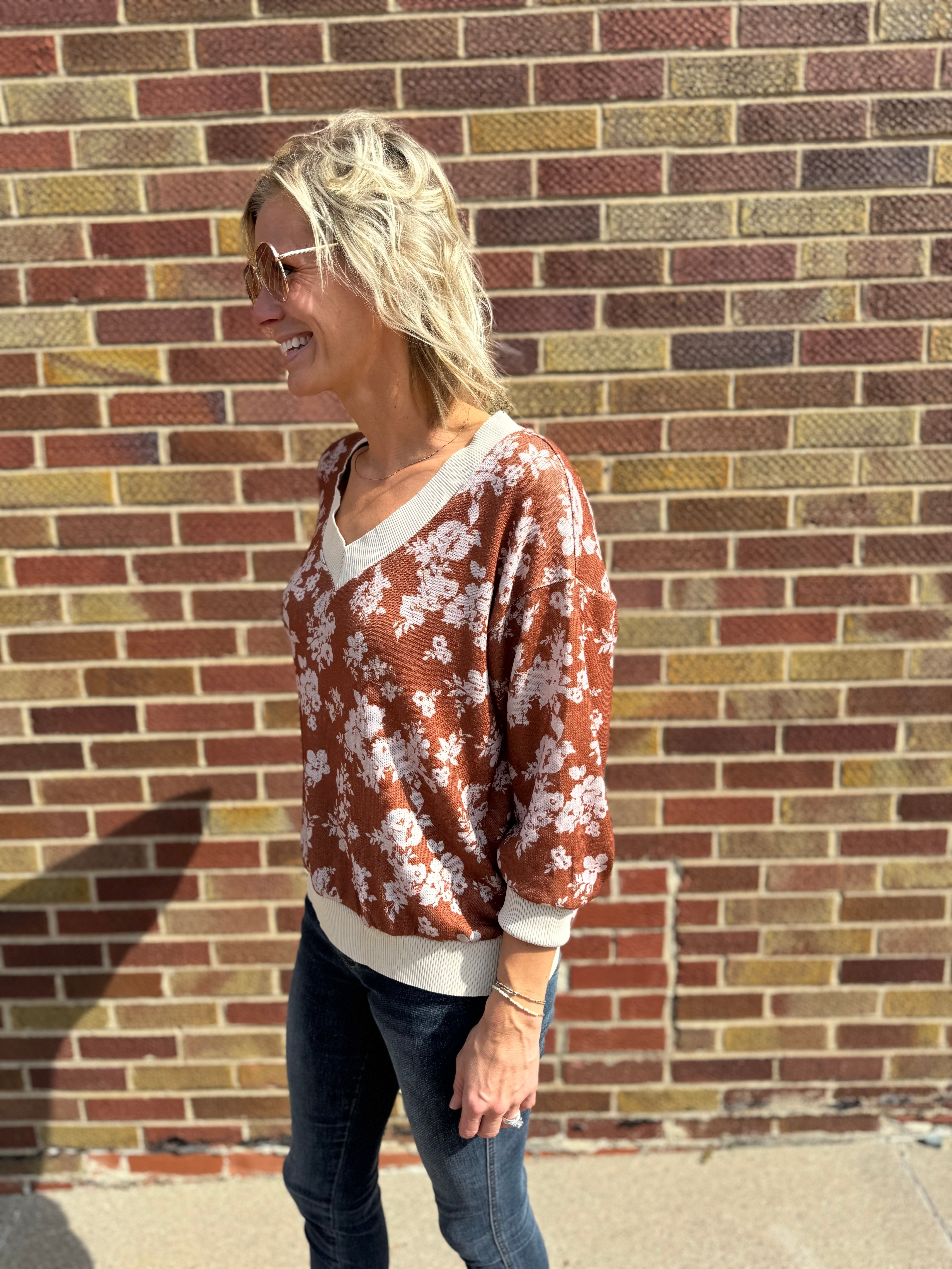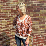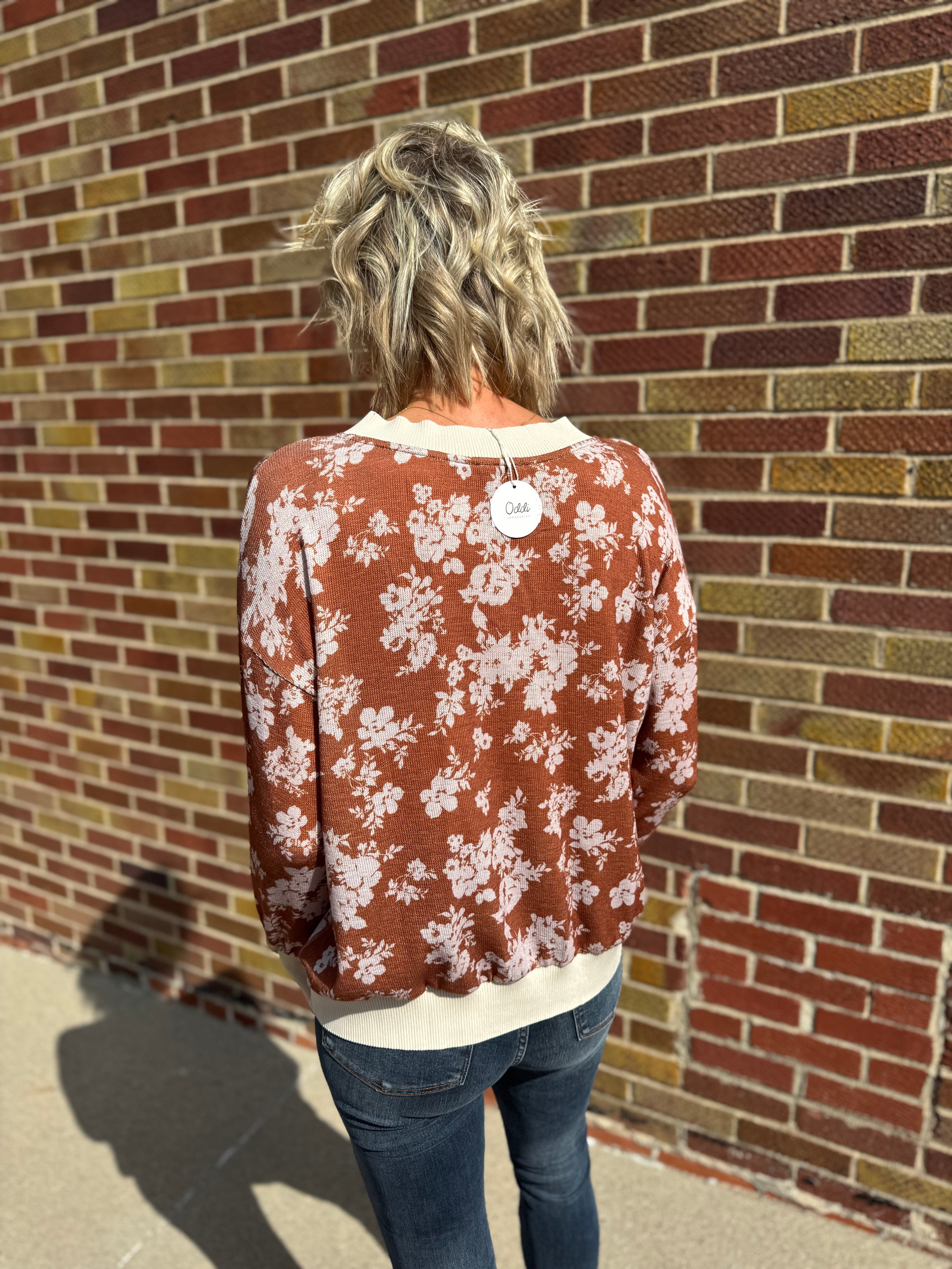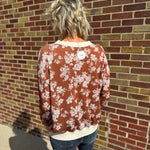 This Floral Jacquard Knit Top combines lightweight with breathable fabric, ensuring all-day wearability. Its soft texture makes it comfortable, while the elegant brown base accented with tan flowers, collar, and cuffs adds a refined touch to your wardrobe. Ideal for layering or wearing alone, this top offers both style and practicality.
