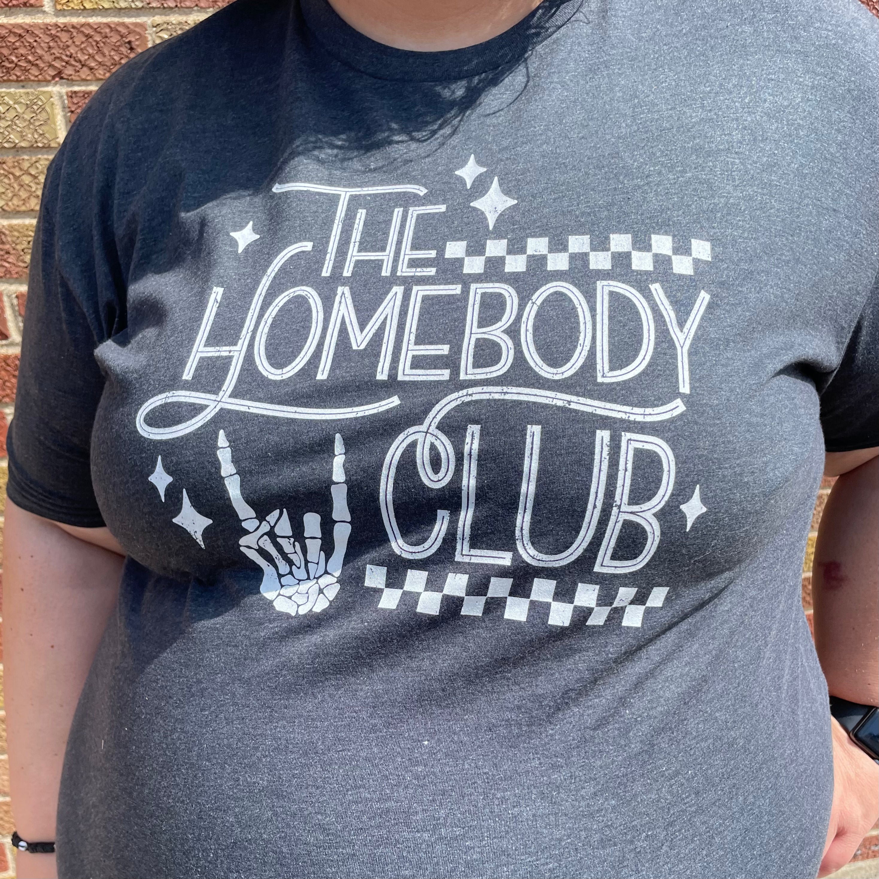 Celebrate your love for cozy days in with the Homebody Club Graphic Tee. Designed for ultimate comfort, this tee features a stylish graphic that proudly declares your membership in the homebody lifestyle. Made from soft, breathable fabric, it’s perfect for lounging, casual outings, or relaxing at home. Show off your laid-back vibe with this must-have addition to your wardrobe.