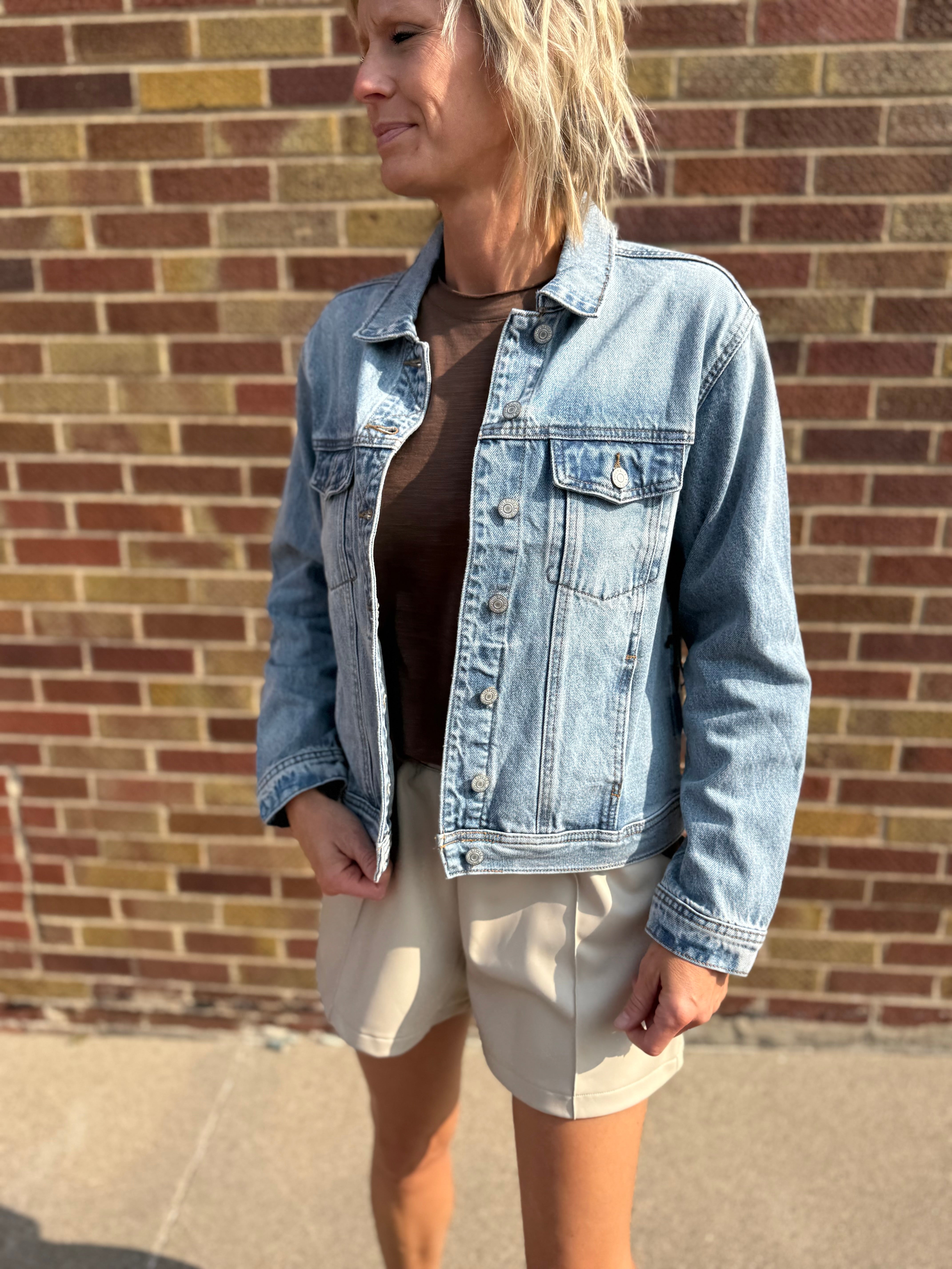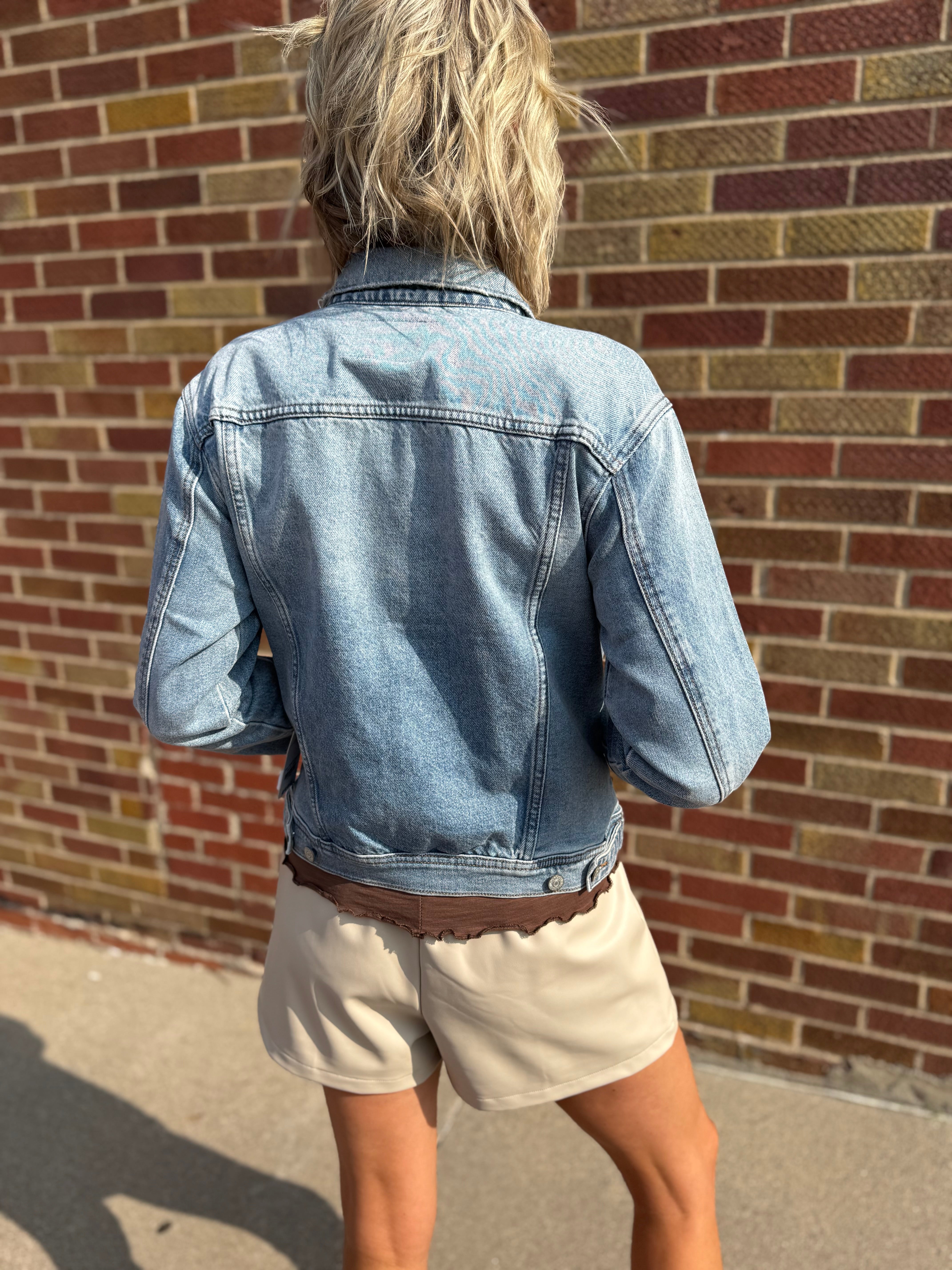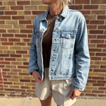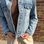 The Judy Blue BF Jacket has a light blue denim fabric with a relaxed fit and long sleeves, offering both comfort and style. Also has two front pockets, this provides casual, and versatile look. Ideal for layering, this jacket combines classic denim appeal with functional details for everyday wear.