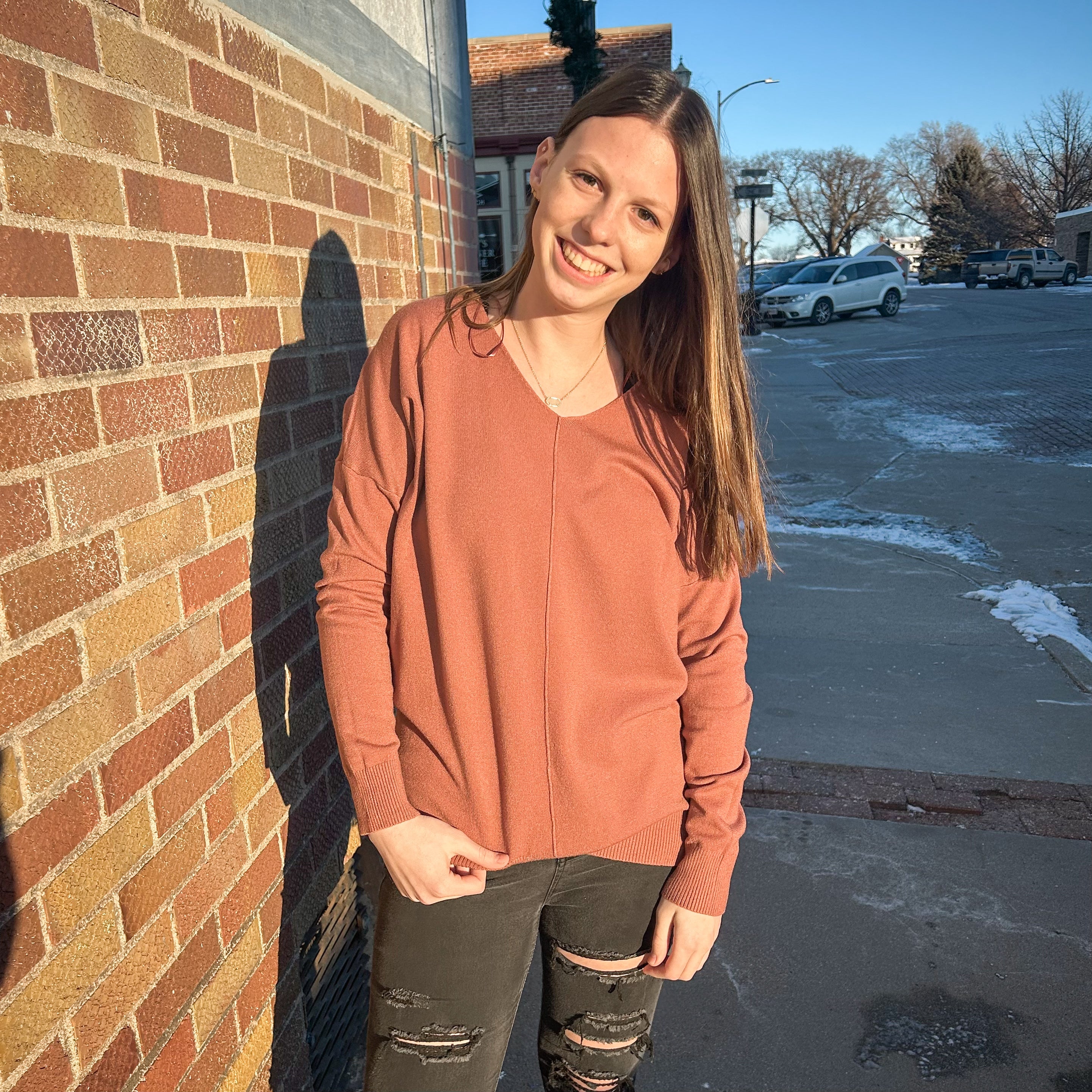 This Long V-Neck Sweater features a front seam and comes in three different colors-Marsala, Heather Soft Pink, and Heather Latte. Its loose fit, soft fabric, and thin design provide a simple and cute look.