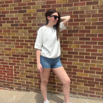 A short sleeve top crafted from luxurious, silky smooth fabric with oversized sleeve details. Effortlessly chic and ultra-soft, it brings a touch of elegance to everyday wear.