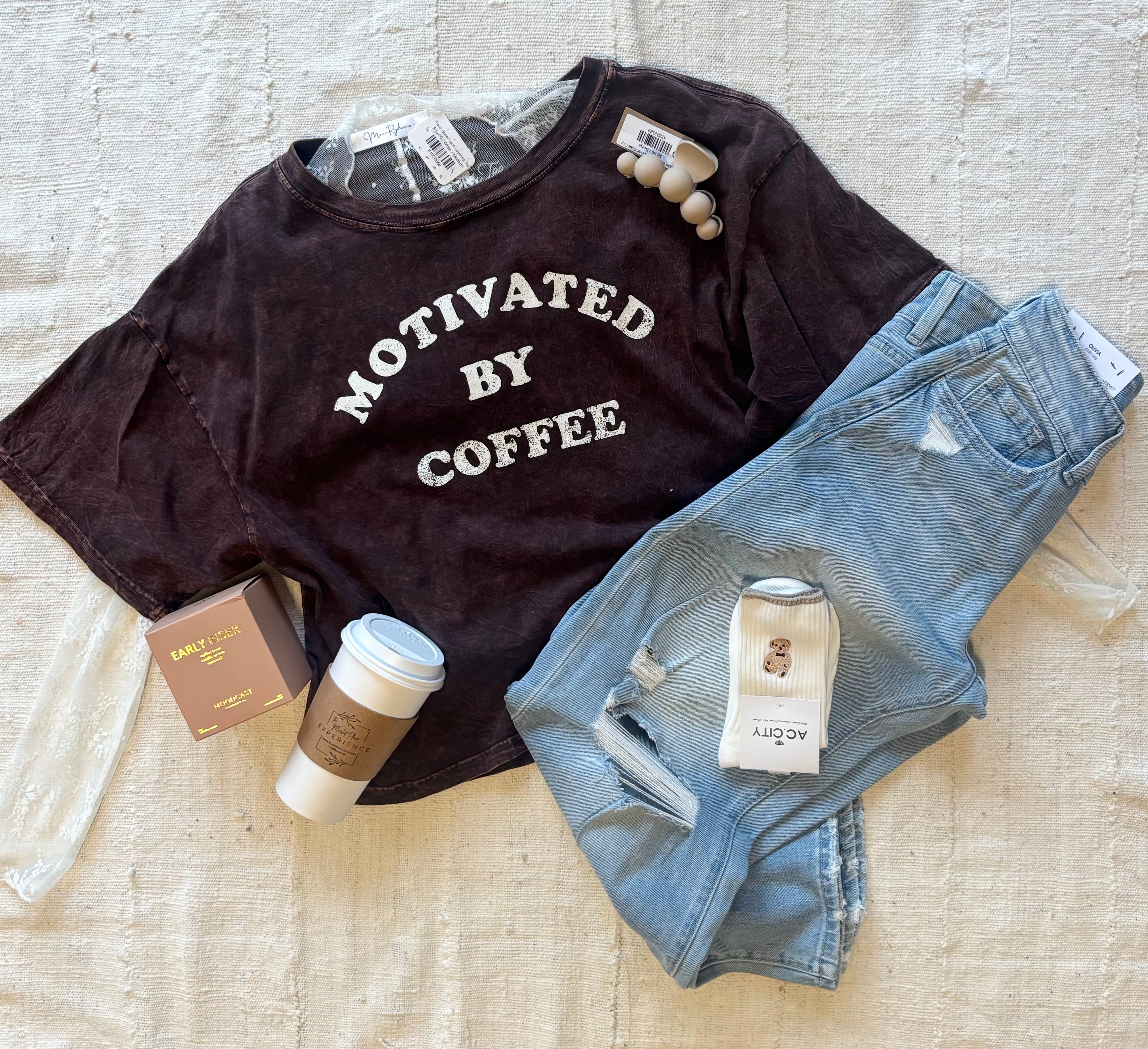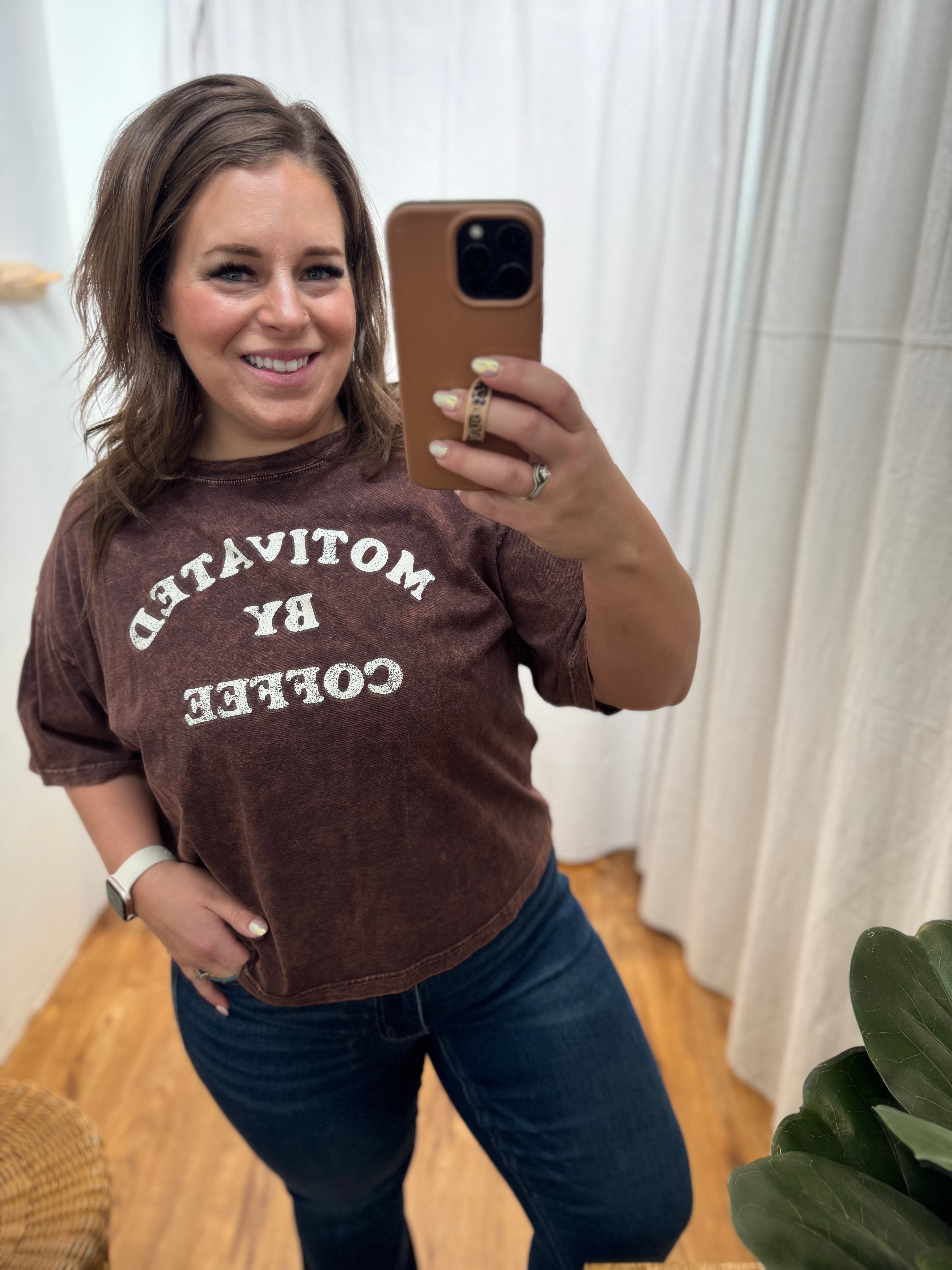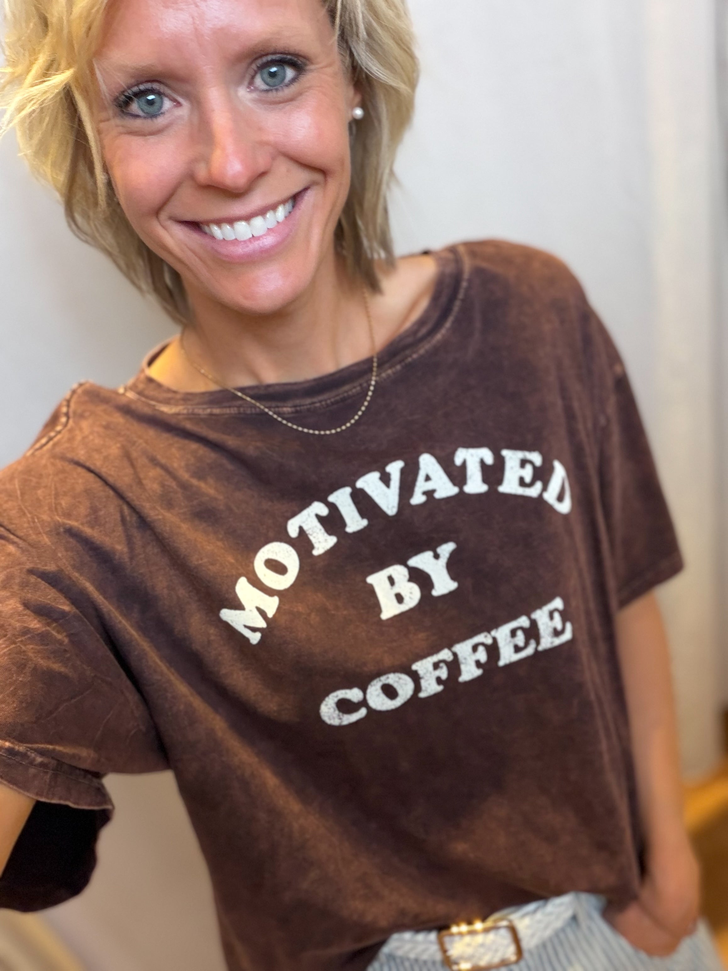 Motivated By Coffee Long Crop Top