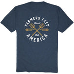 Celebrate the unyielding spirit of American agriculture with our "Pitchfork Tee." This striking design features two crossed pitchforks at its center, representing the dedication and hard work of farmers who toil day in and day out to put food on our tables. Encircling the pitchforks in a bold and proud circle are the words "Farmers Feed America."