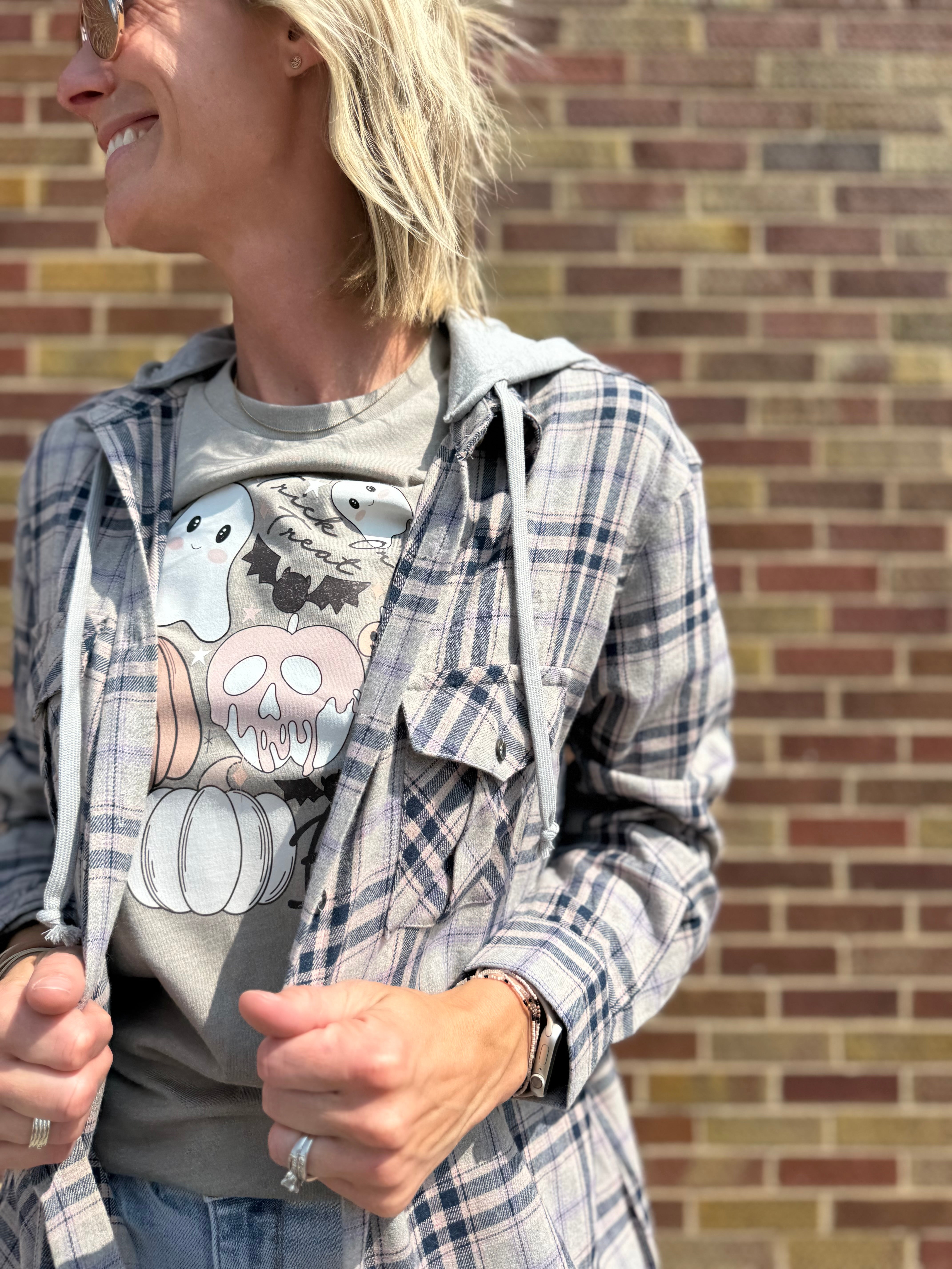 This versatile shirt combines classic plaid design with practical details, making it perfect for layering on cooler days or adding a casual edge to your outfit. Embrace both function and fashion effortlessly.