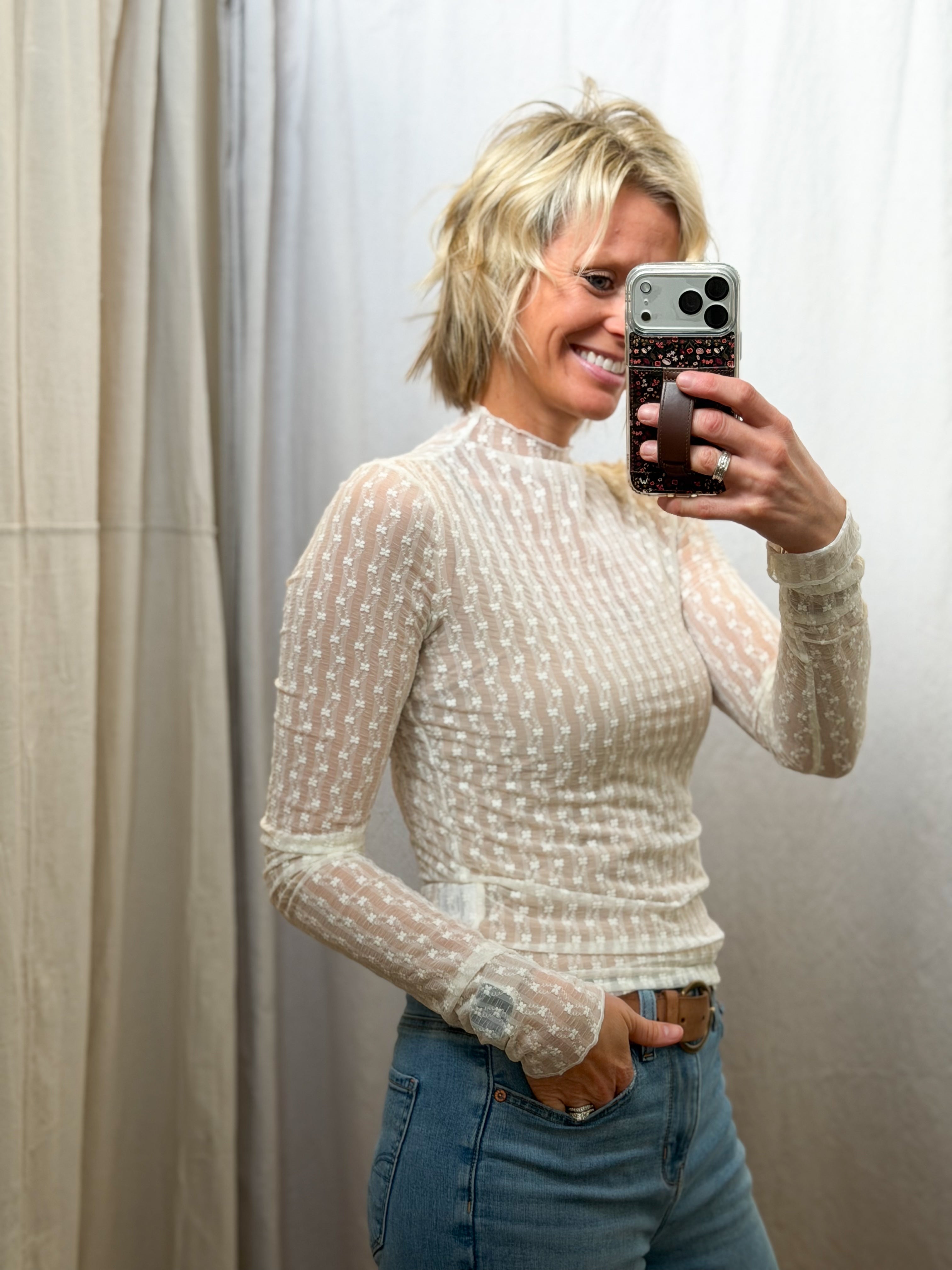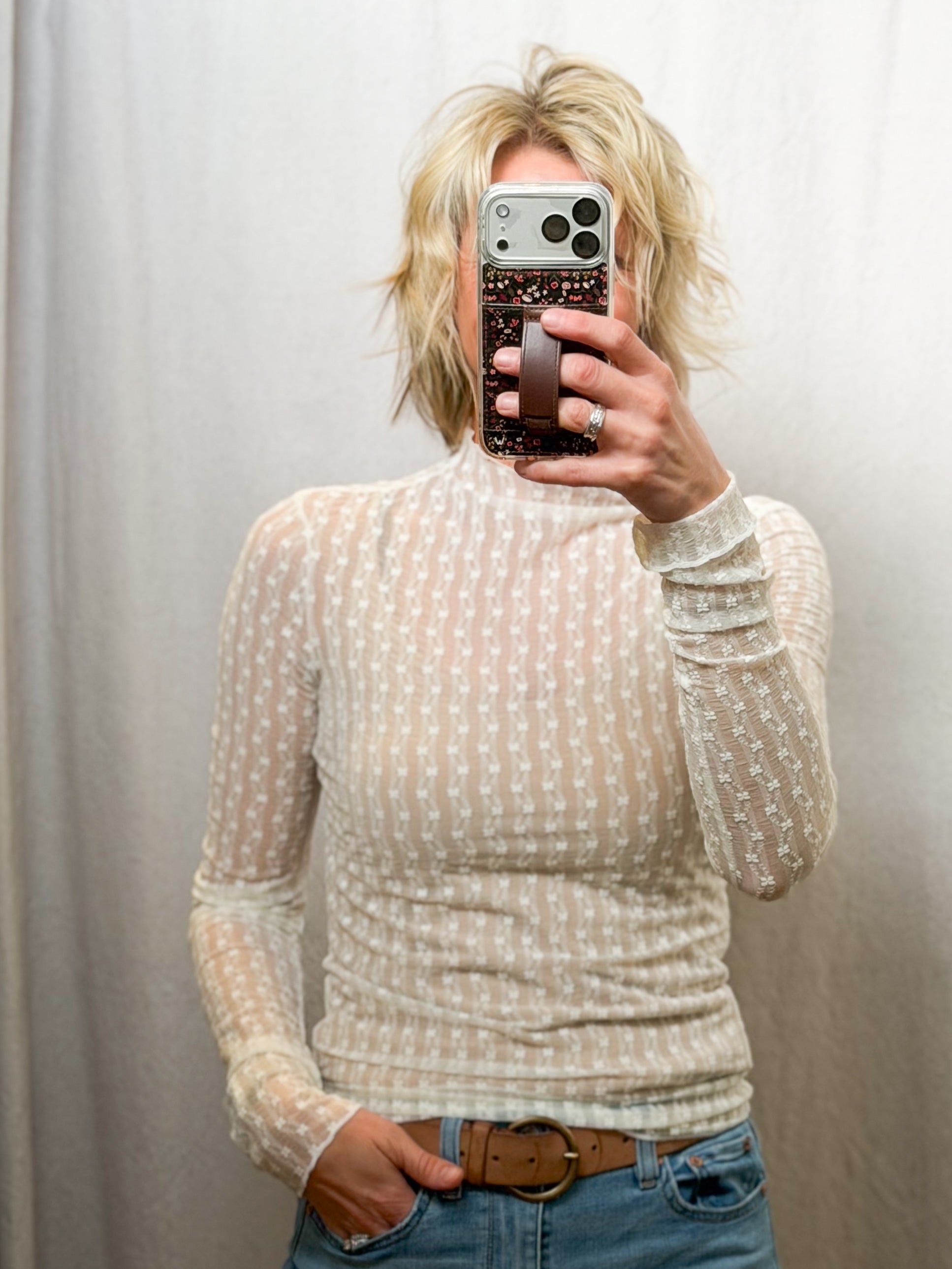 Semi Sheer Lace Long Sleeve Top