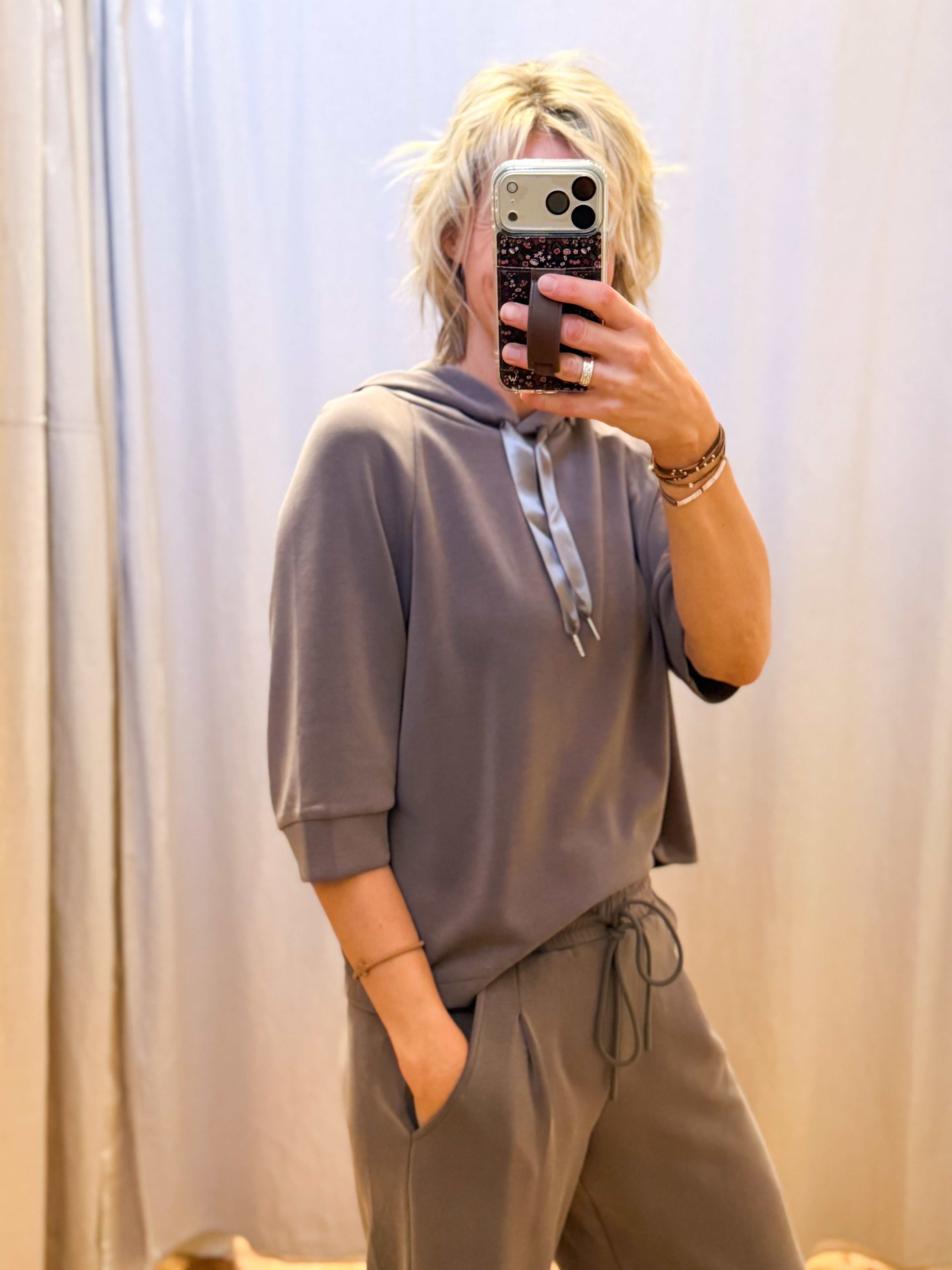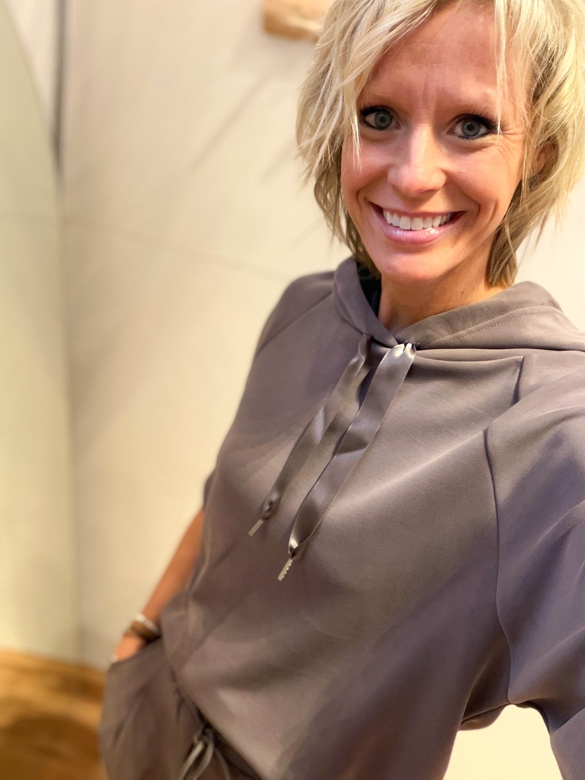 Elevate your casual game with this cozy hooded top featuring a silky satin tie that adds just the right amount of polish. The straight hem keeps things sleek and streamlined, while the soft fabric feels like a warm hug. Perfect for those days when you want comfort without sacrificing style—throw it on with your favorite jeans and you're ready to take on the world.