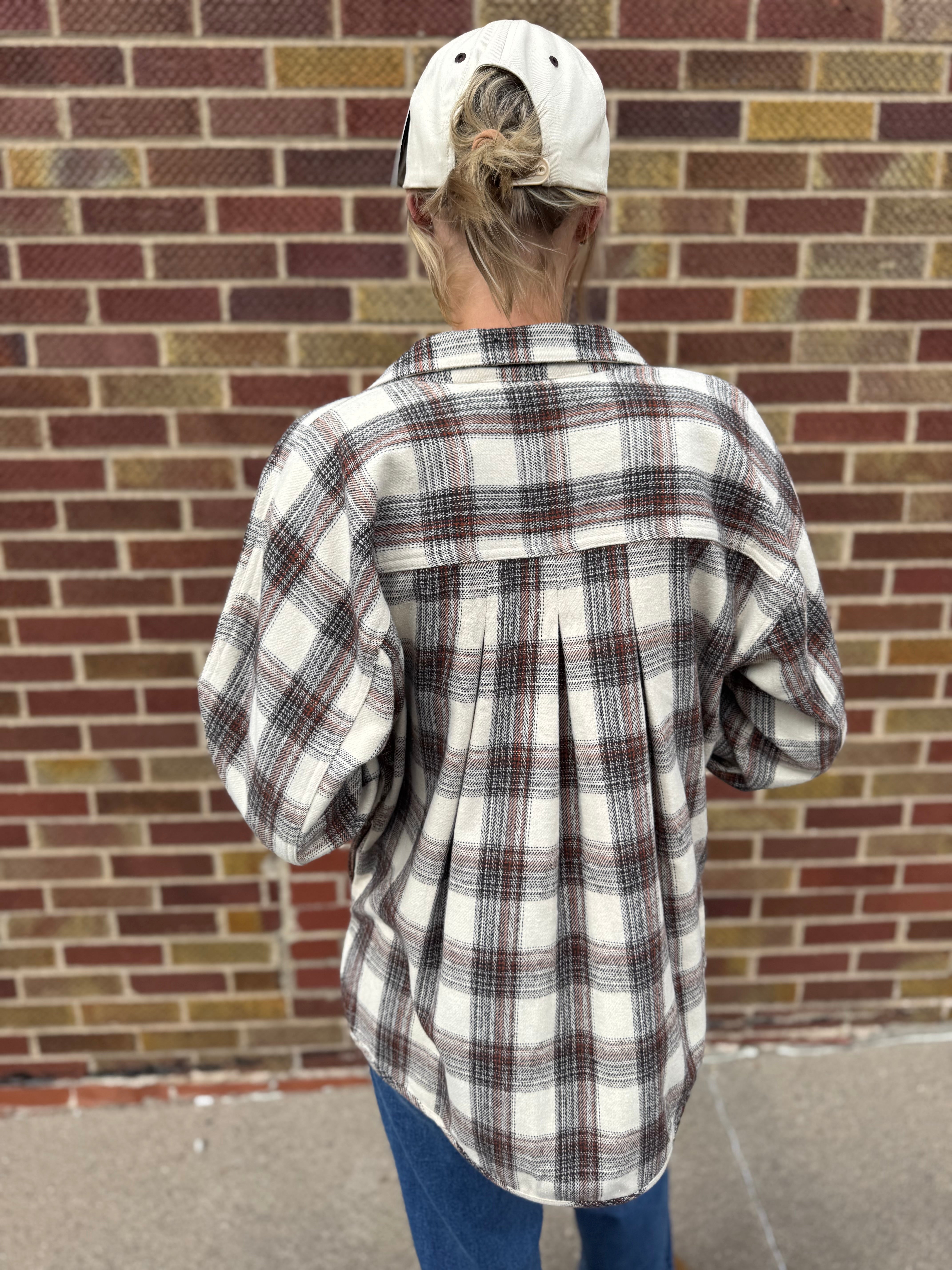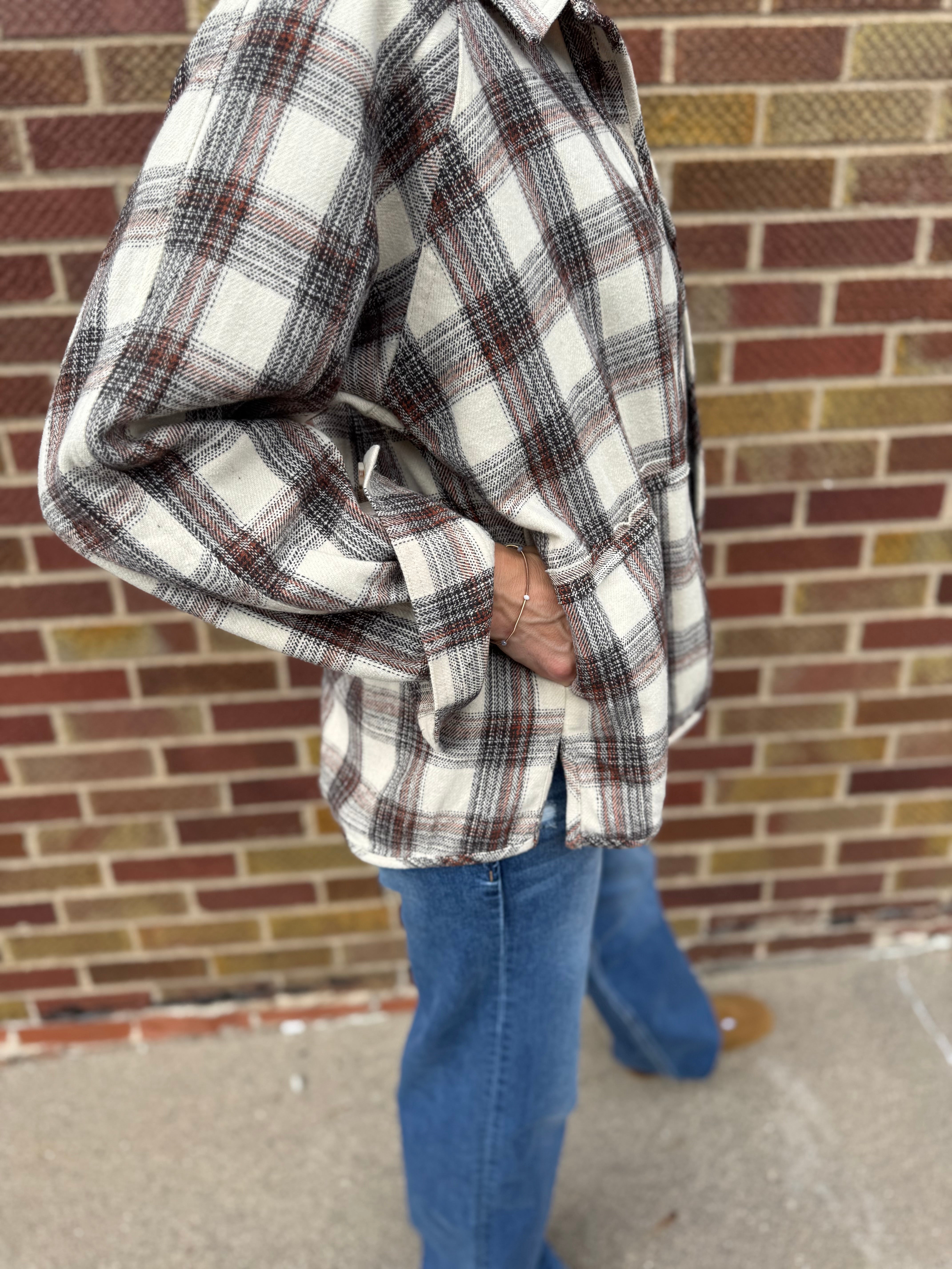 Its cozy, soft fabric and warm hues make it your go-to layer for cool days. Whether you wear it buttoned up or open, this shacket brings playful style and comfy warmth to every adventure.
