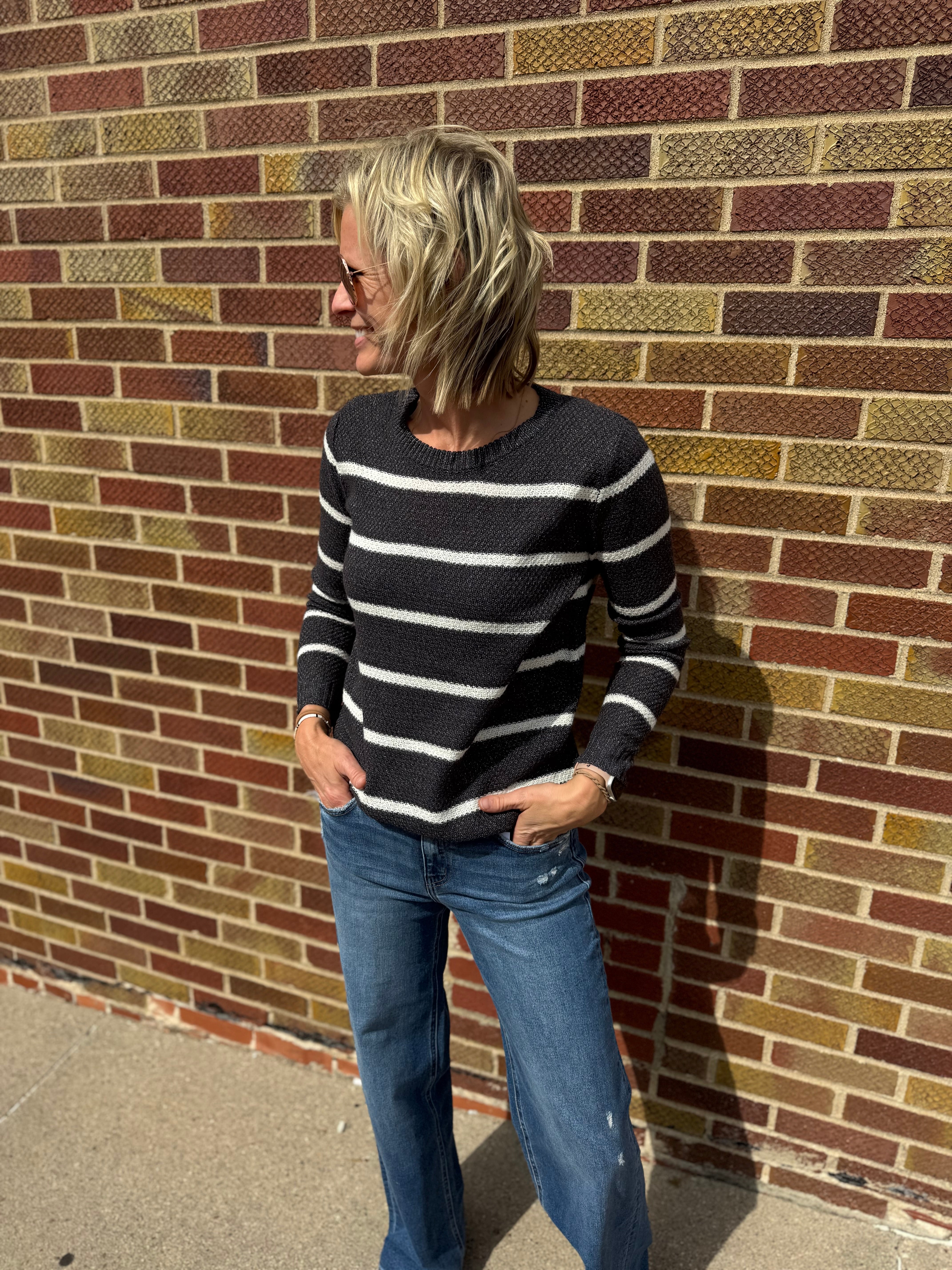 Add a dash of fun to your wardrobe with the Waffle Stripe Pullover Sweater! Its unique waffle texture combined with bold stripes brings a playful vibe to your everyday look. Cozy and comfy, this sweater is perfect for layering or wearing on its own when you want to stand out with effortless style.