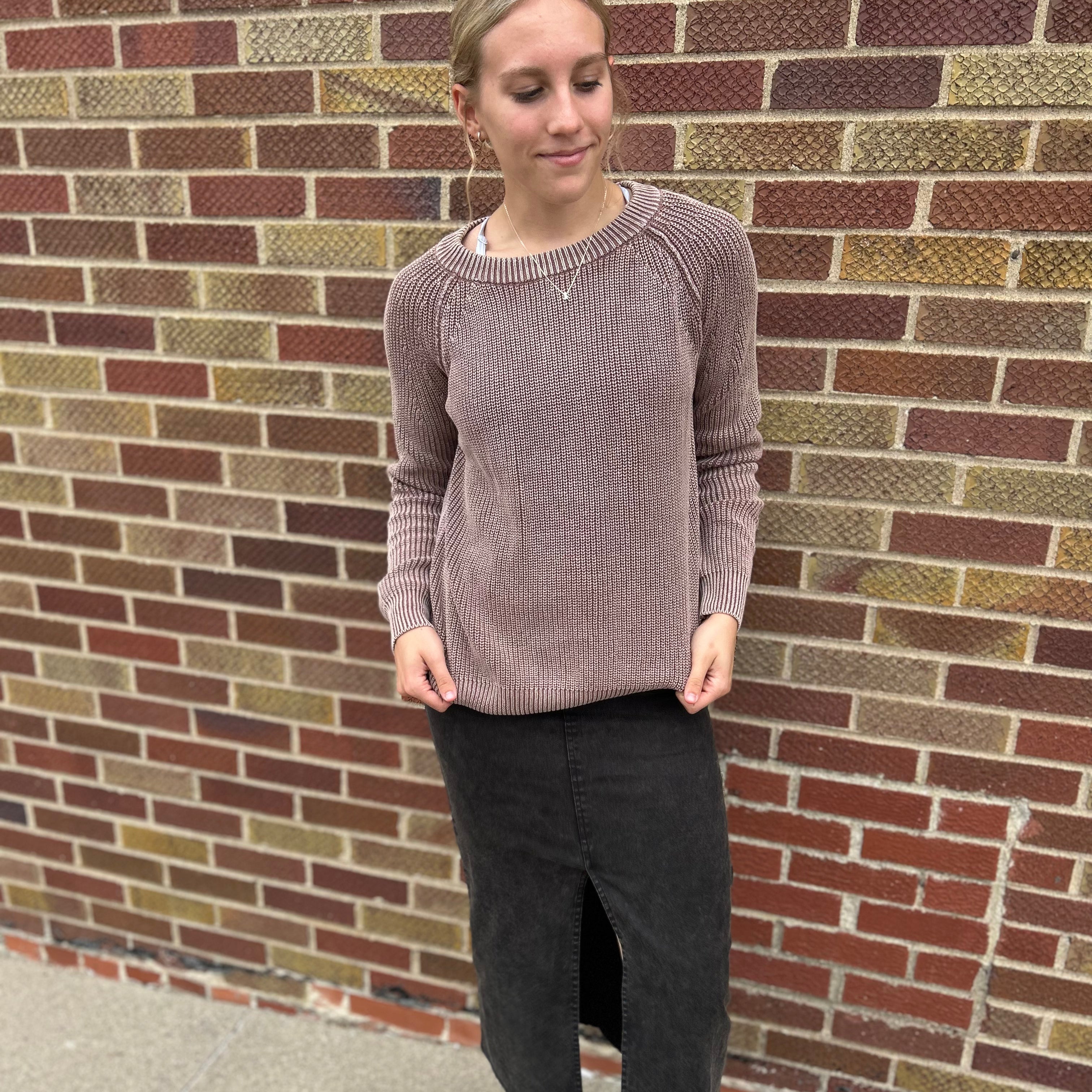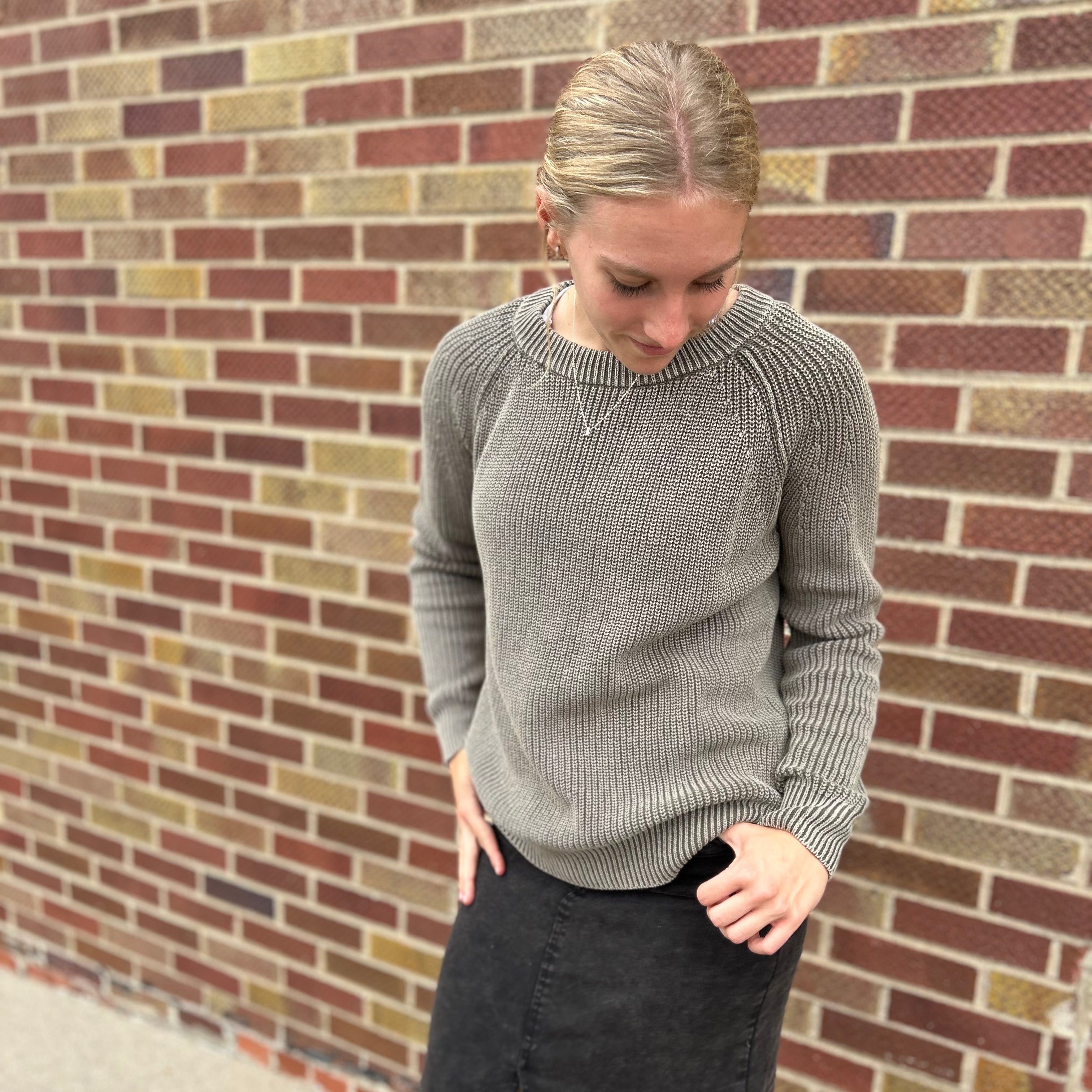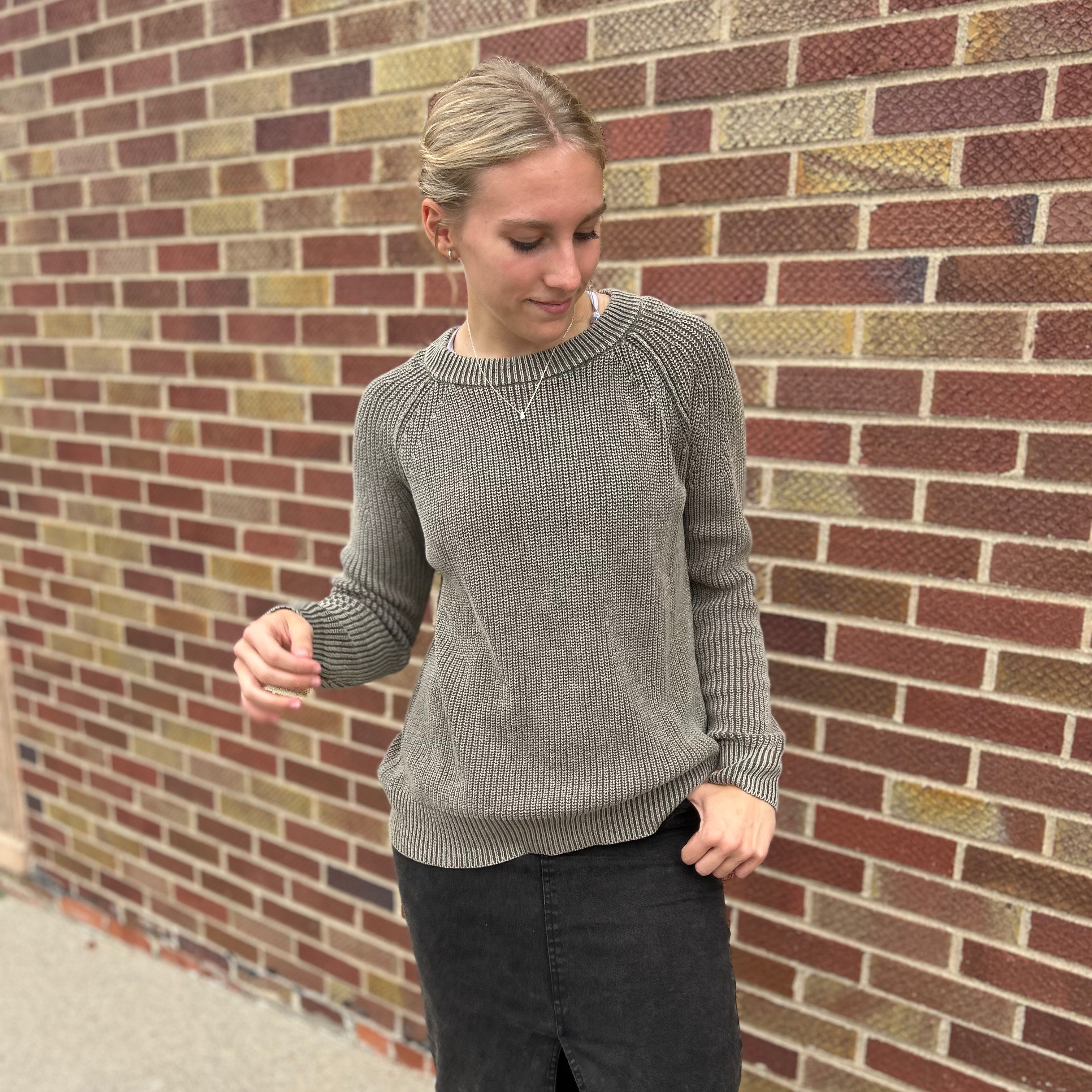 Washed Yarn Raglan Sleeve Pullover Sweater