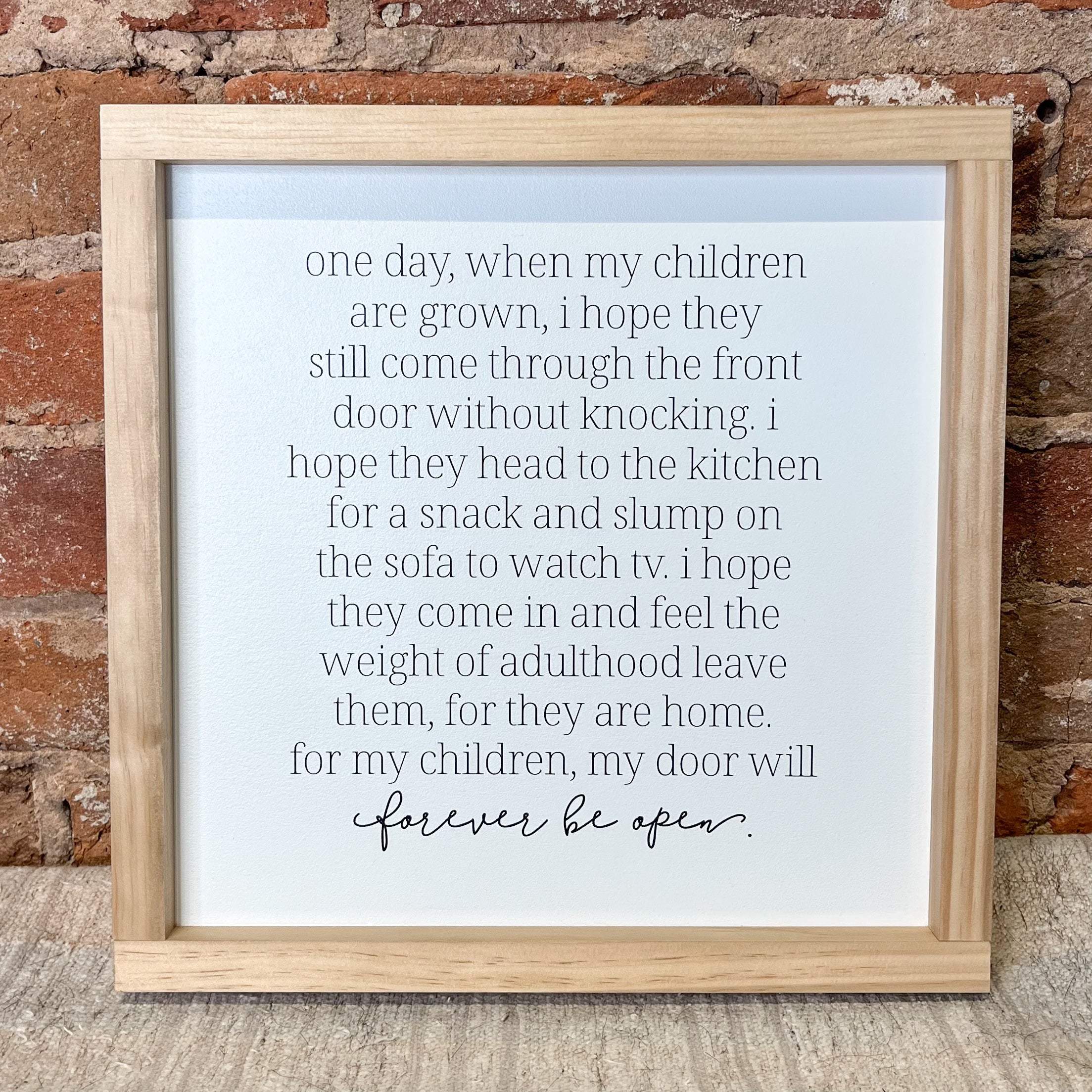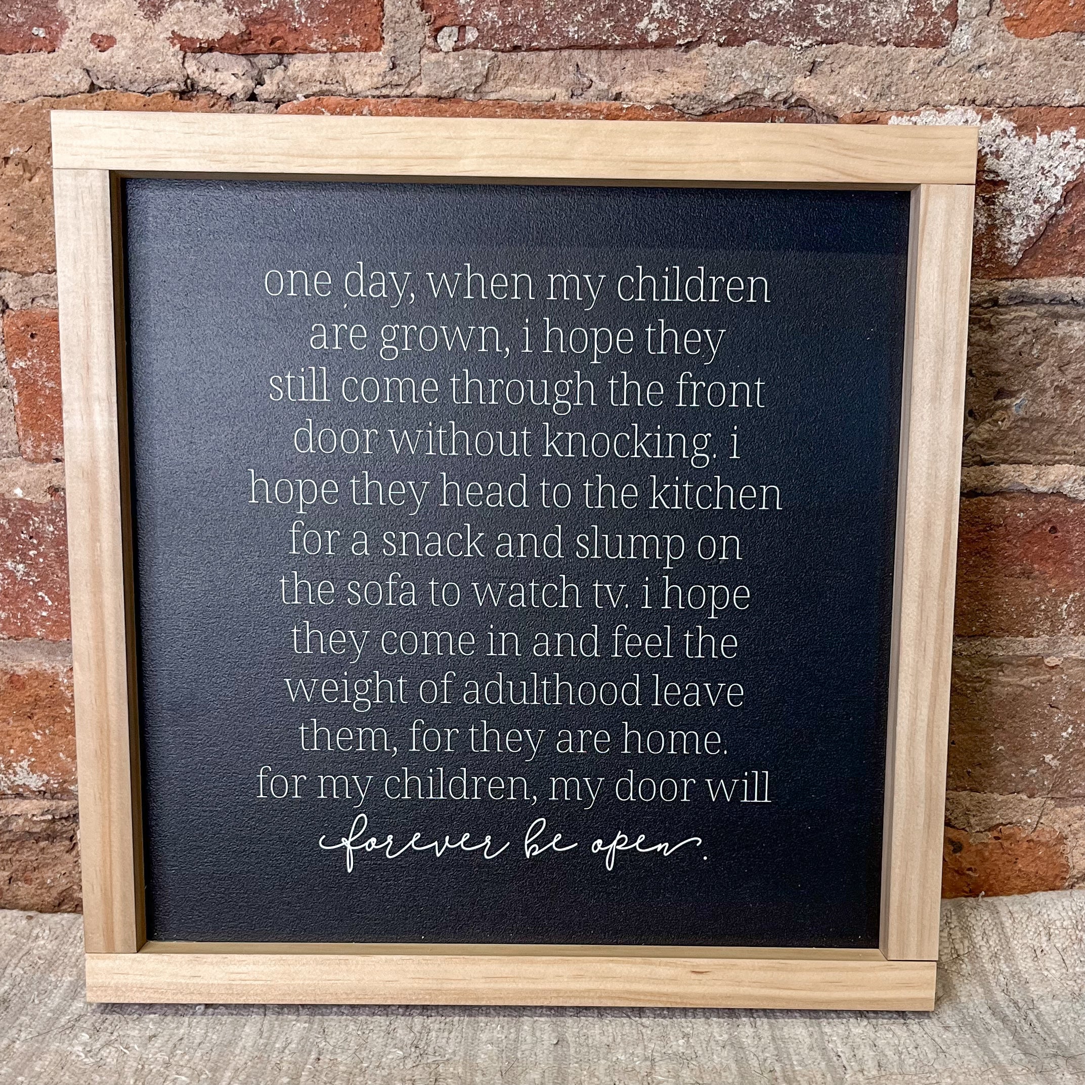 Express your love to your grown children with "One Day When my Children”Sign. This heartfelt message, displayed against a natural wood frame, is available on a black or white background. Show your children how much they mean to you in a beautiful and meaningful way.