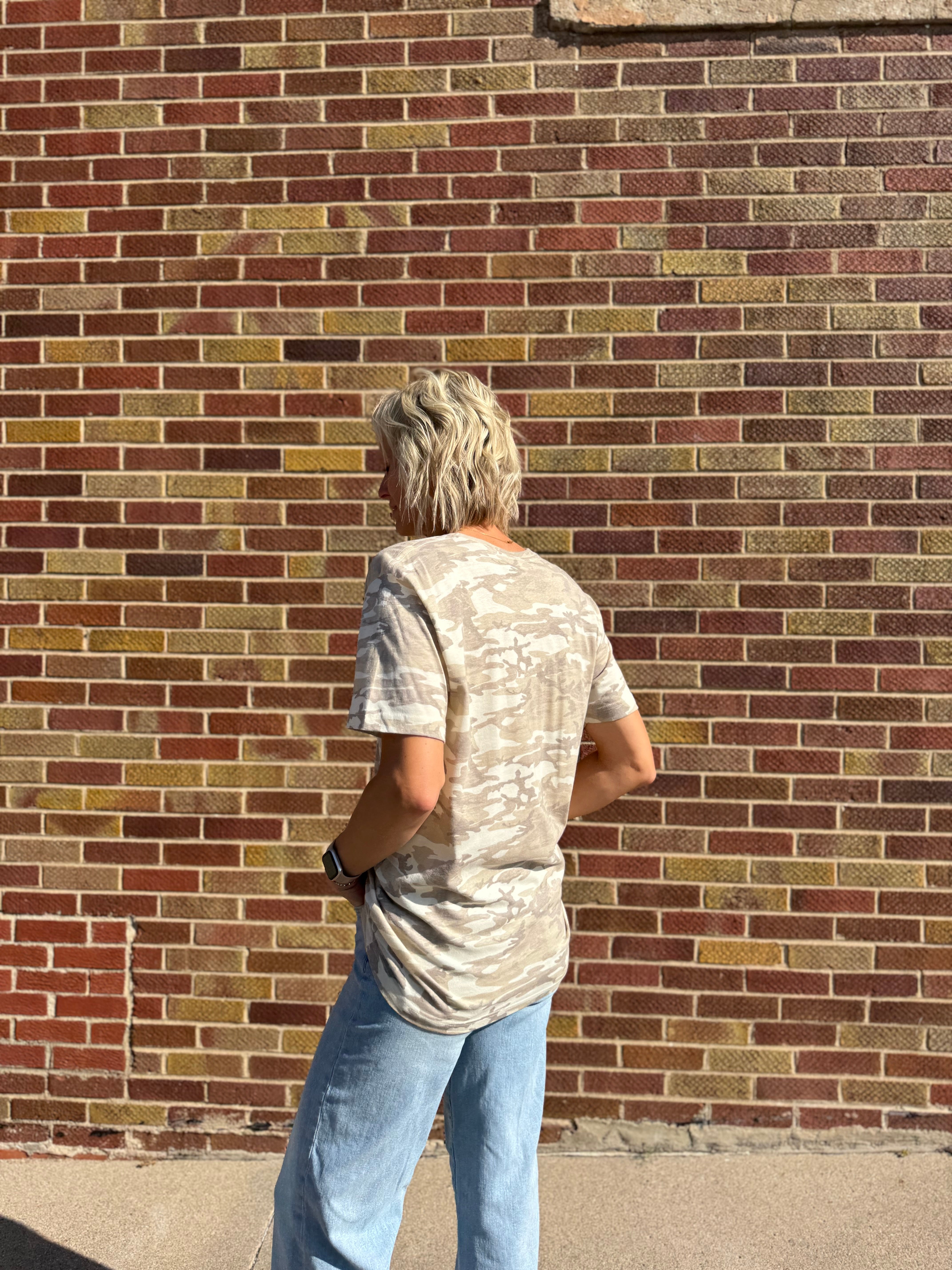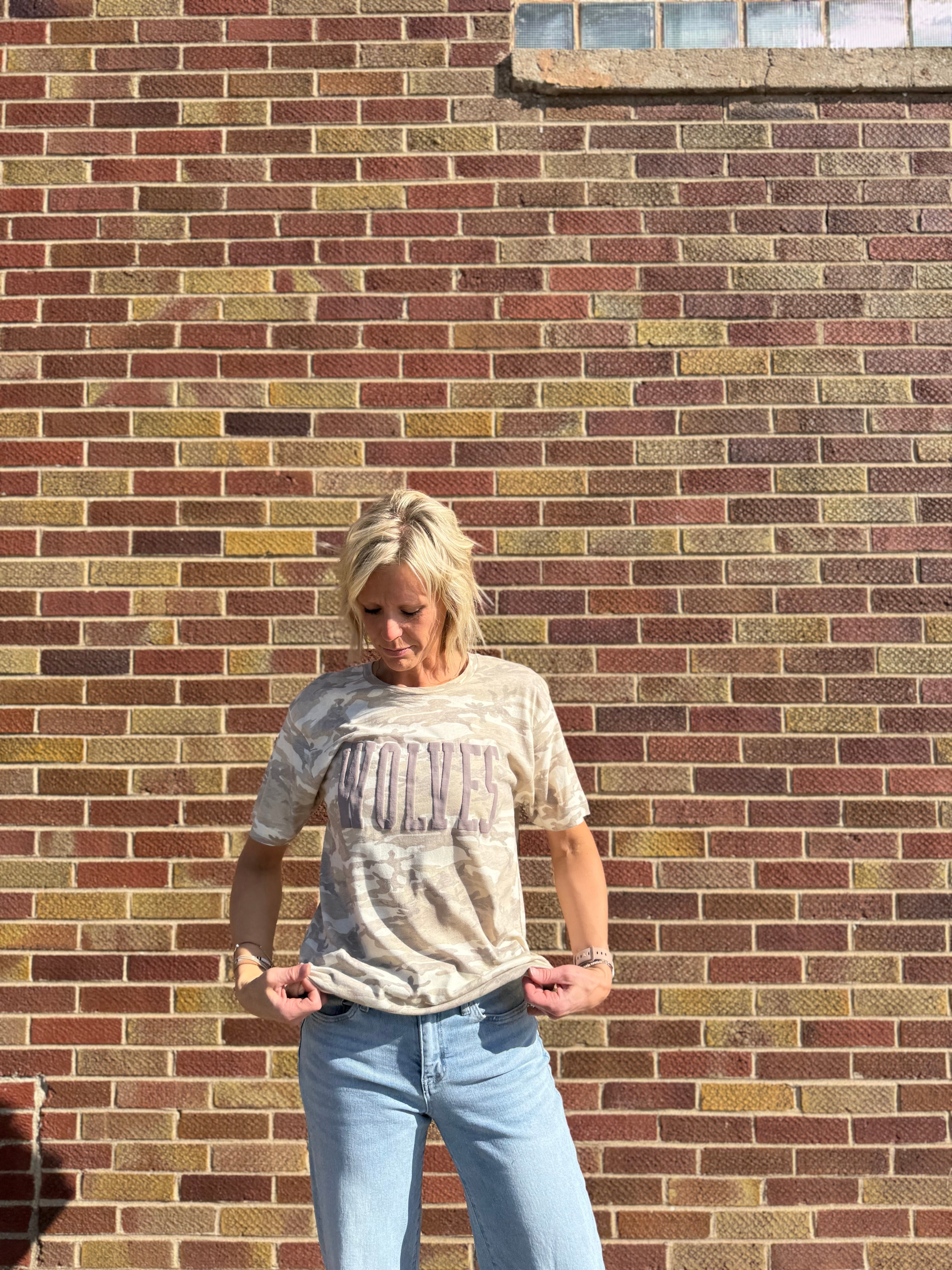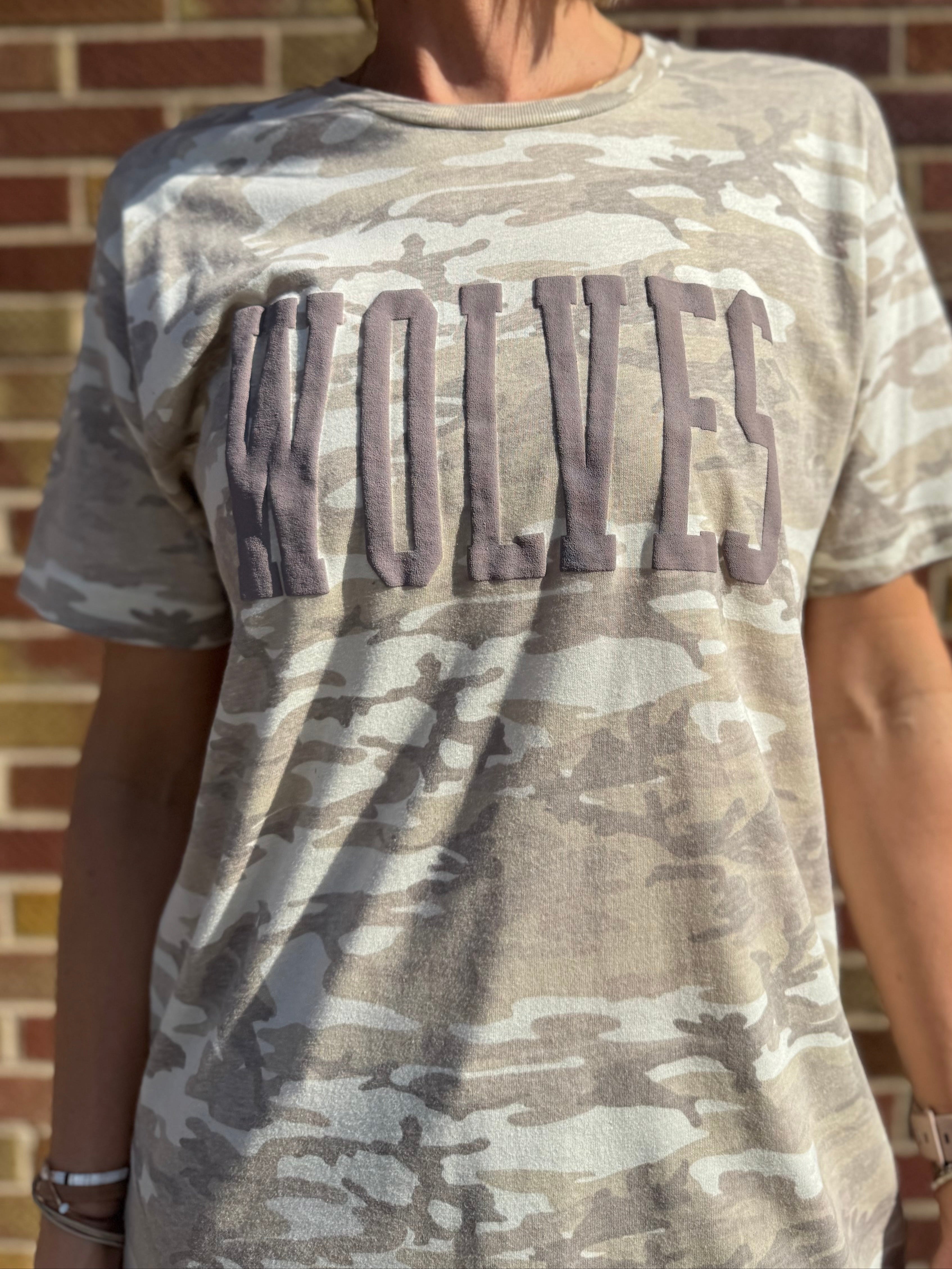 This neutral short-sleeve Wolves Natural Camo tee features a large, textured wolf print that adds a fun, tactile twist to classic camo. Soft and breathable, it’s perfect for showing off your wild side while staying comfy and cool wherever your adventures take you. 100% cotton. Machine wash cold with like colors. Tumble try low. Only non chlorine bleach.