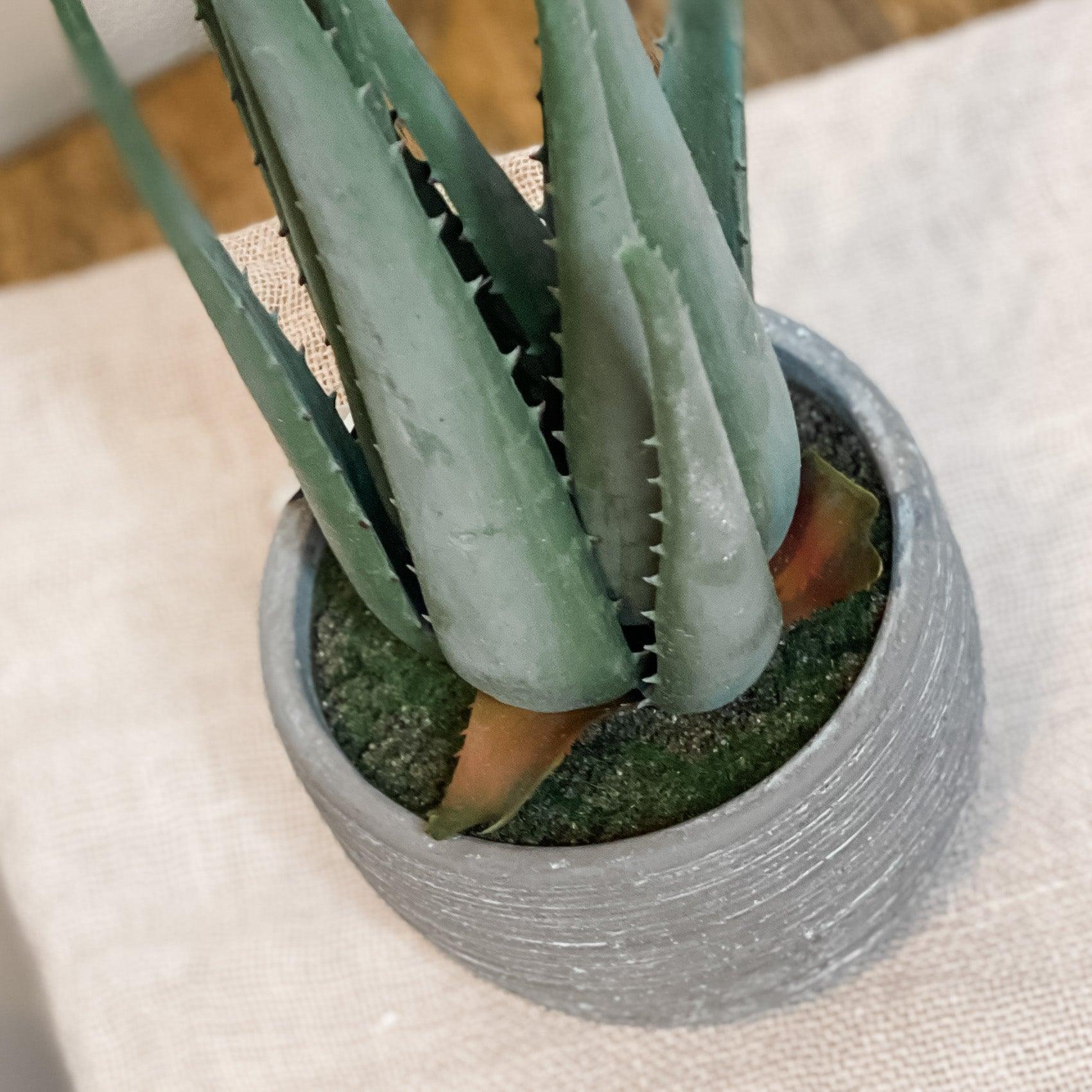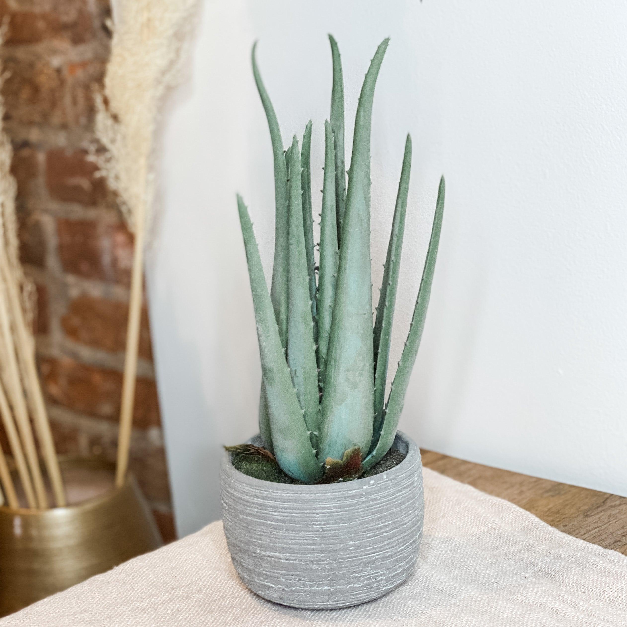 This 13-inch aloe plant comes potted in a modern grey textured cement pot, adding a touch of natural beauty to any space.