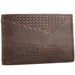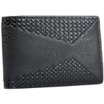 Billfold style wallet with textured exterior. Material: vegan leather. Slim profile makes it perfect for front or back pocket storage. Exterior hatch weave texture adds design interest. Functional interior including bill, credit card, and i.d. Holders.