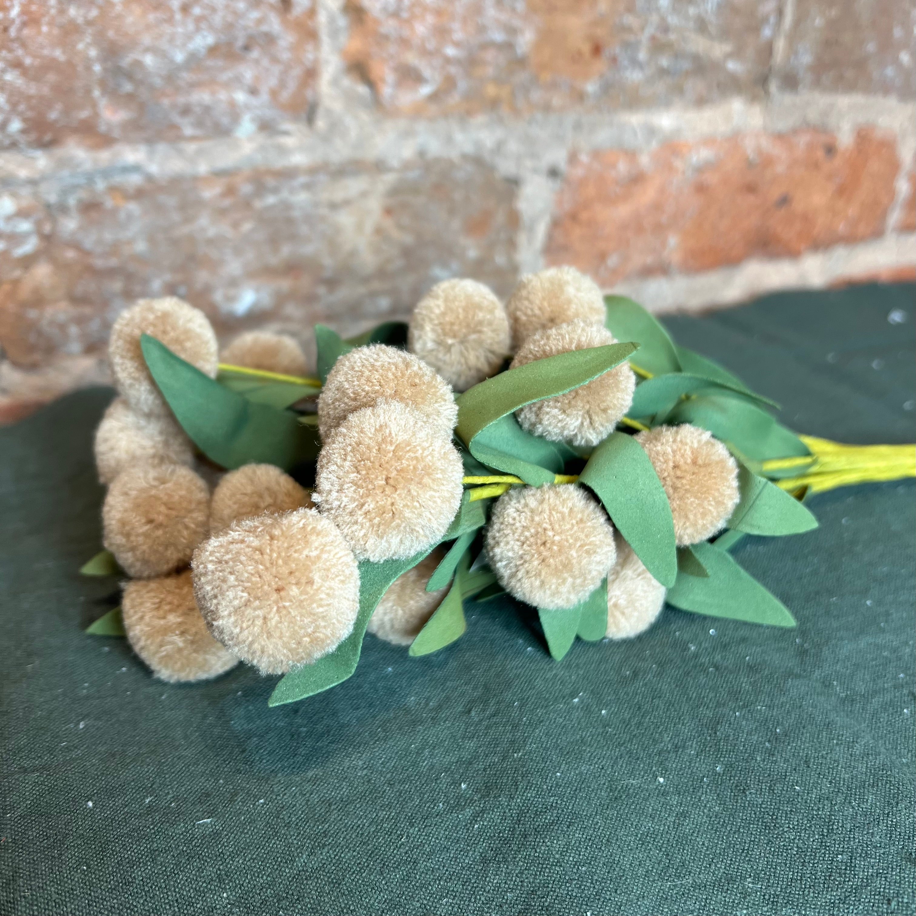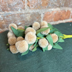 Enhance your floral arrangements with our Bundle of 6 Pompom Picks. Each stem features a perfect pom pom and lush green Eva leaves, adding a touch neutralness.