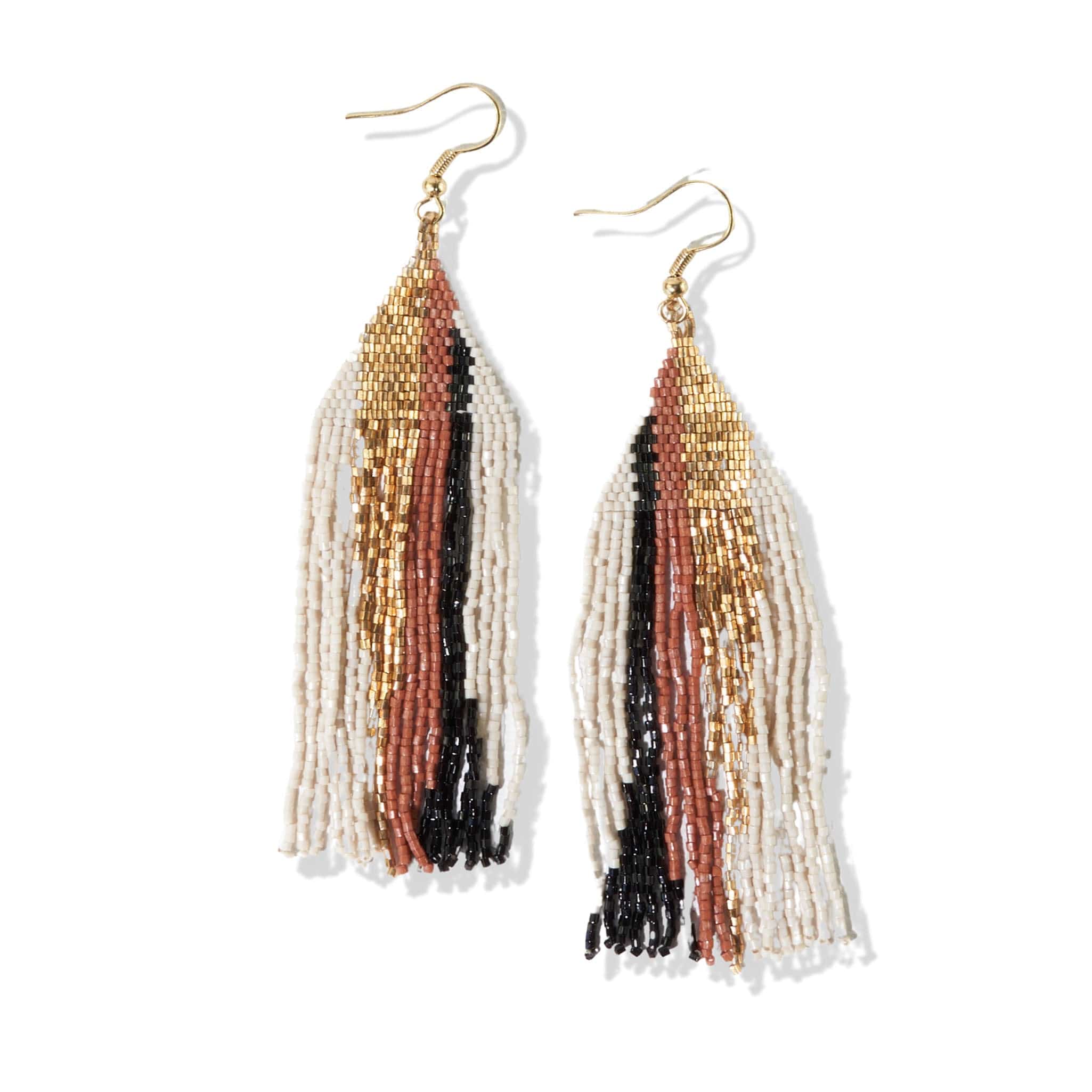 Camille Abstract Stripe Beaded Fringe Earrings Mixed Metallic
