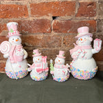 Bring festive fun to your holiday décor with this charming Candy Snowman available in two sizes. Featuring four playful poses, each snowman adds a unique and whimsical touch to your celebrations. Perfect for spreading joy and sweetness throughout your home!