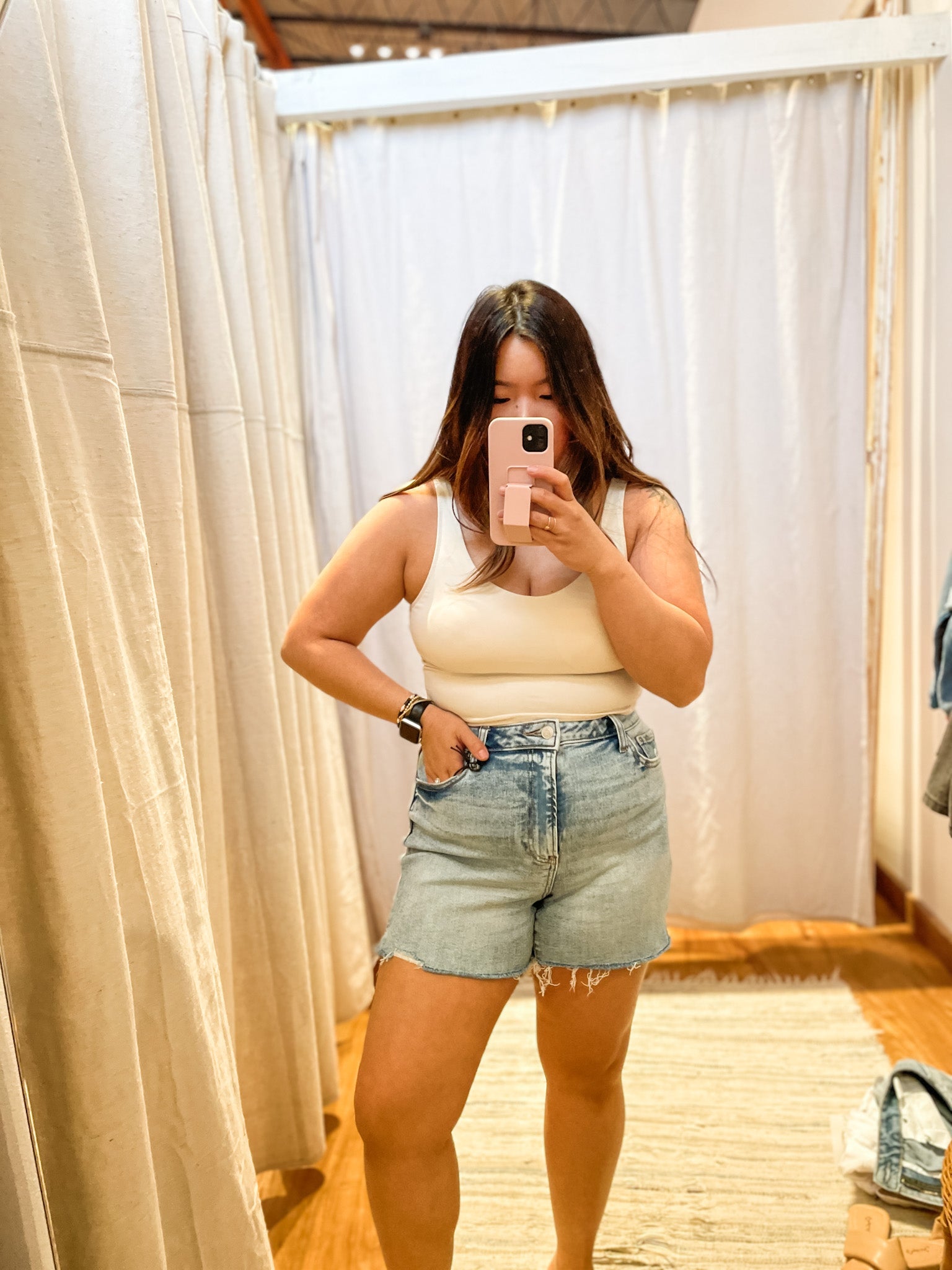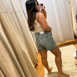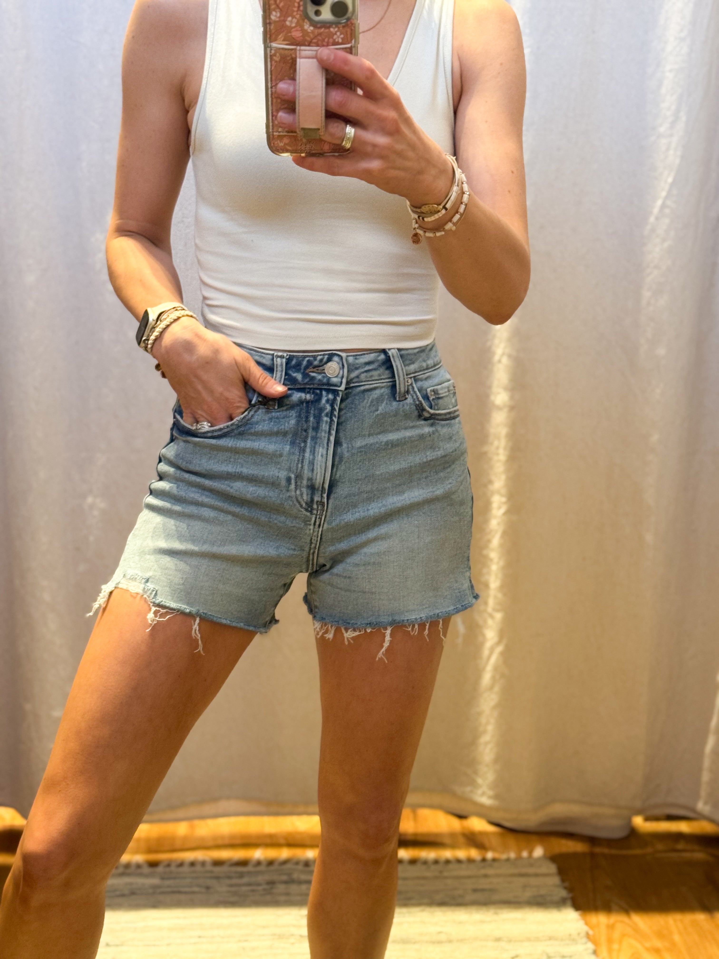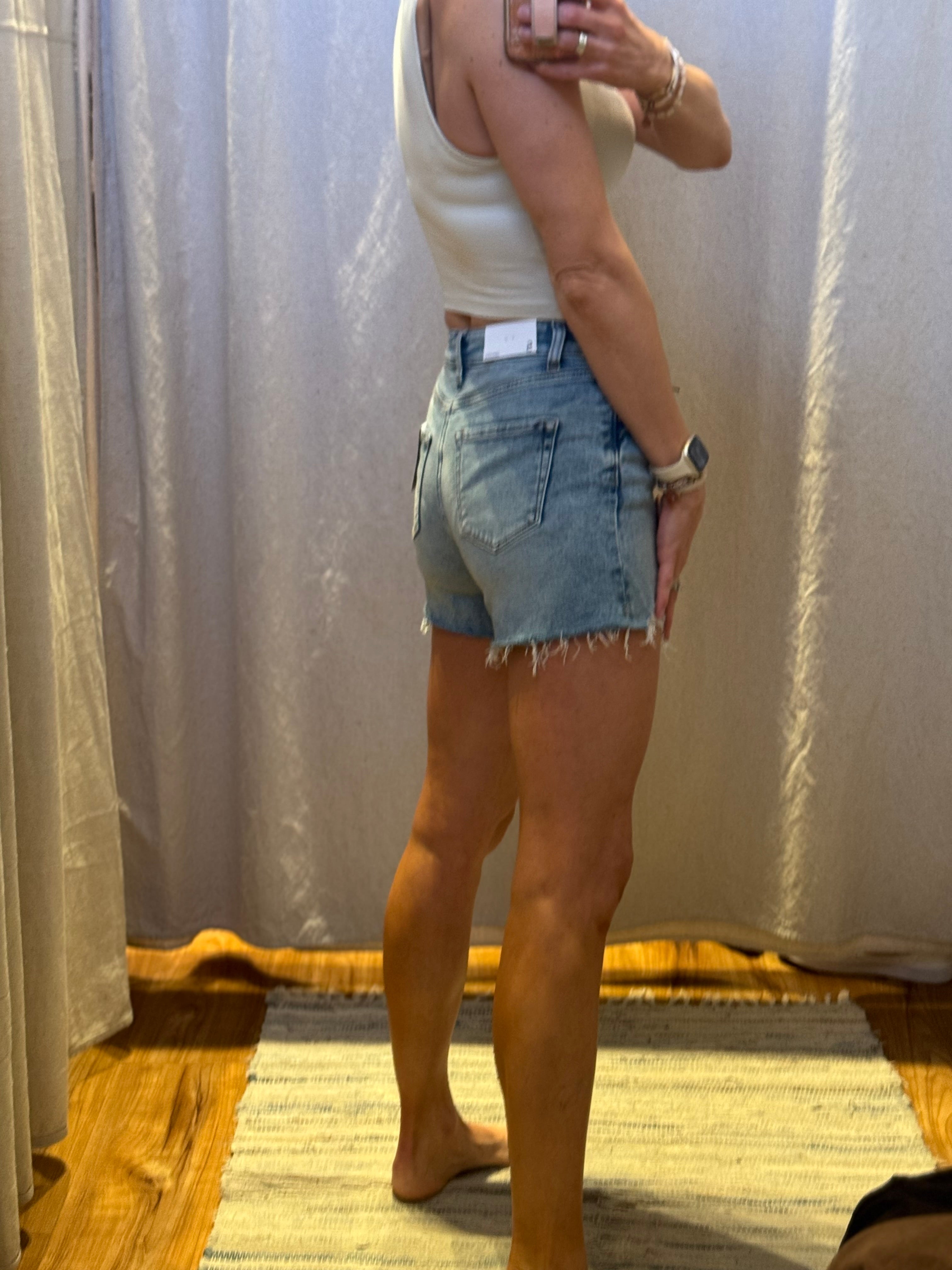 Expertly crafted with a 3.8” inseam, our Distressed Hem Denim Shorts offer the perfect blend of style and comfort. Made from high-quality denim, these shorts are designed to provide a flattering fit and are perfect for any casual occasion. Upgrade your summer wardrobe with this must-have piece.