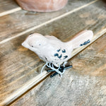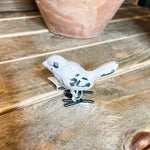 This unique distressed miniature bird sculpture is a delightful addition to any collection. Embossed with intricate and lifelike details, it perfectly captures the beauty of nature. Skilled craftsmanship ensures that it stands out and is a true conversation starter.