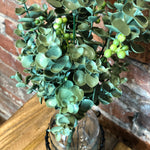 Elevate your decor with our Eucalyptus Bush with White Berries. The vibrant green foliage and delicate white berries provide a realistic touch, adding a lively and dainty element to any space. Made with the highest quality materials, this 18" bush will bring a touch of elegance to your home or office.
